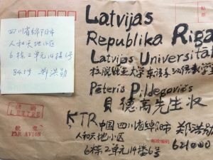 Professor Pēteris Pildegovičs, the director of Latvia side of Confucius Institute at the University of Latvia, received a distant letter in 2018. The sender was Mr. Zheng Hongxun, who was far away in Mianyang City, Sichuan Province, China. 80-year-old Mr. Zheng at the time, wrote sincerely in the letter, “Please teach me Latvian language” and told the story behind his learning of Latvian language. 84-year-oldProfessor Pēteris Pildegovičs at the time, was very moved after reading letter, then the friendship between these two old gentlemen started thousands of miles apart.