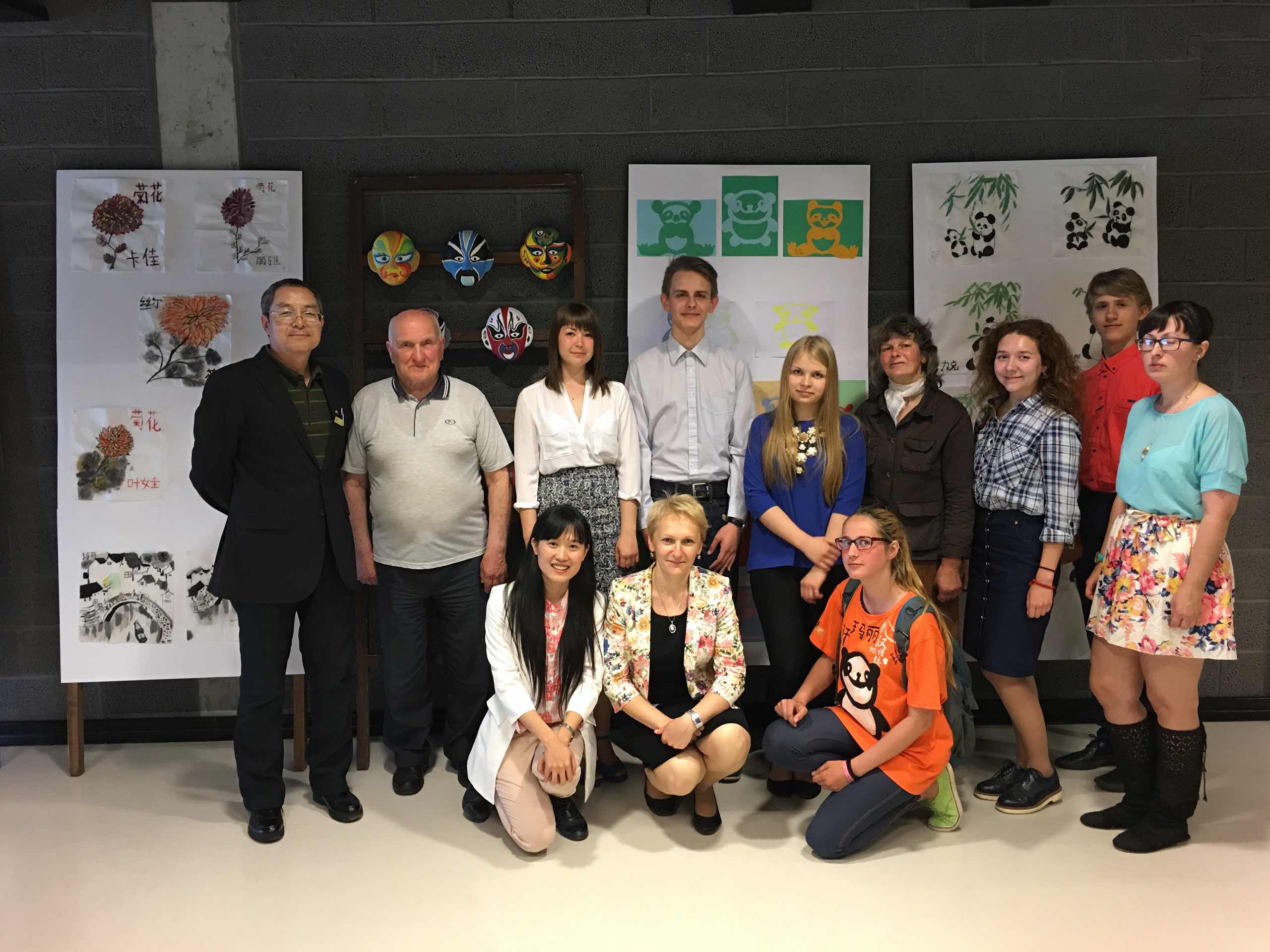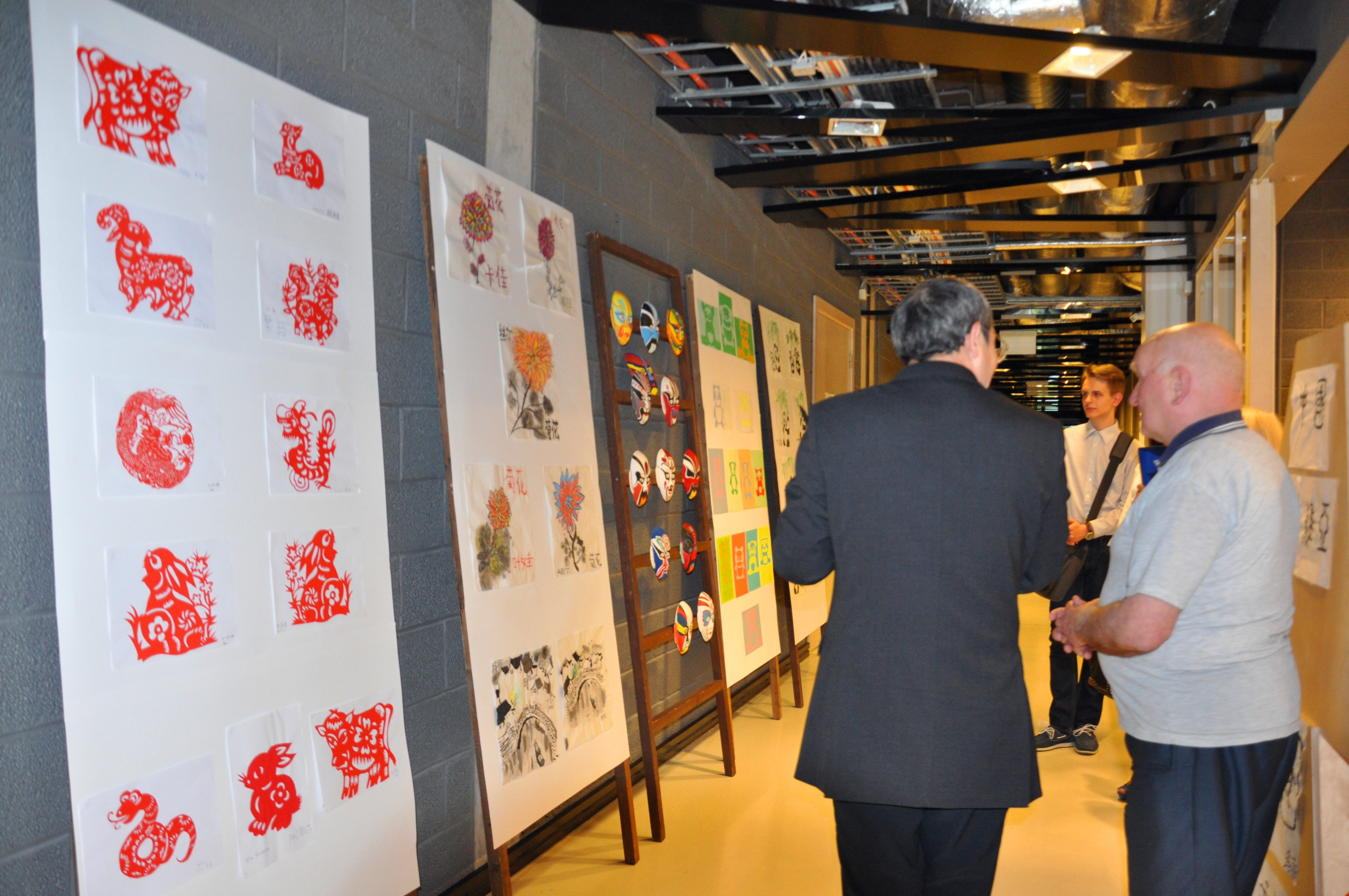 After the awarding ceremony, volunteer Chinese teacher led everyone to the school library and visited Chinese culture exhibition, she introduced the exhibition to the two directors, these works were all made by the Chinese learners from Confucius Classroom at Rezekne University. When learning Chinese,students can not only learn the Chinese language, but also learn a variety of traditional Chinese culture art works, shch as paper cutting, Chinese painting, calligraphy, Chinese knot and so on. Two directors gave the outcomes of Chinese learners endless praise.