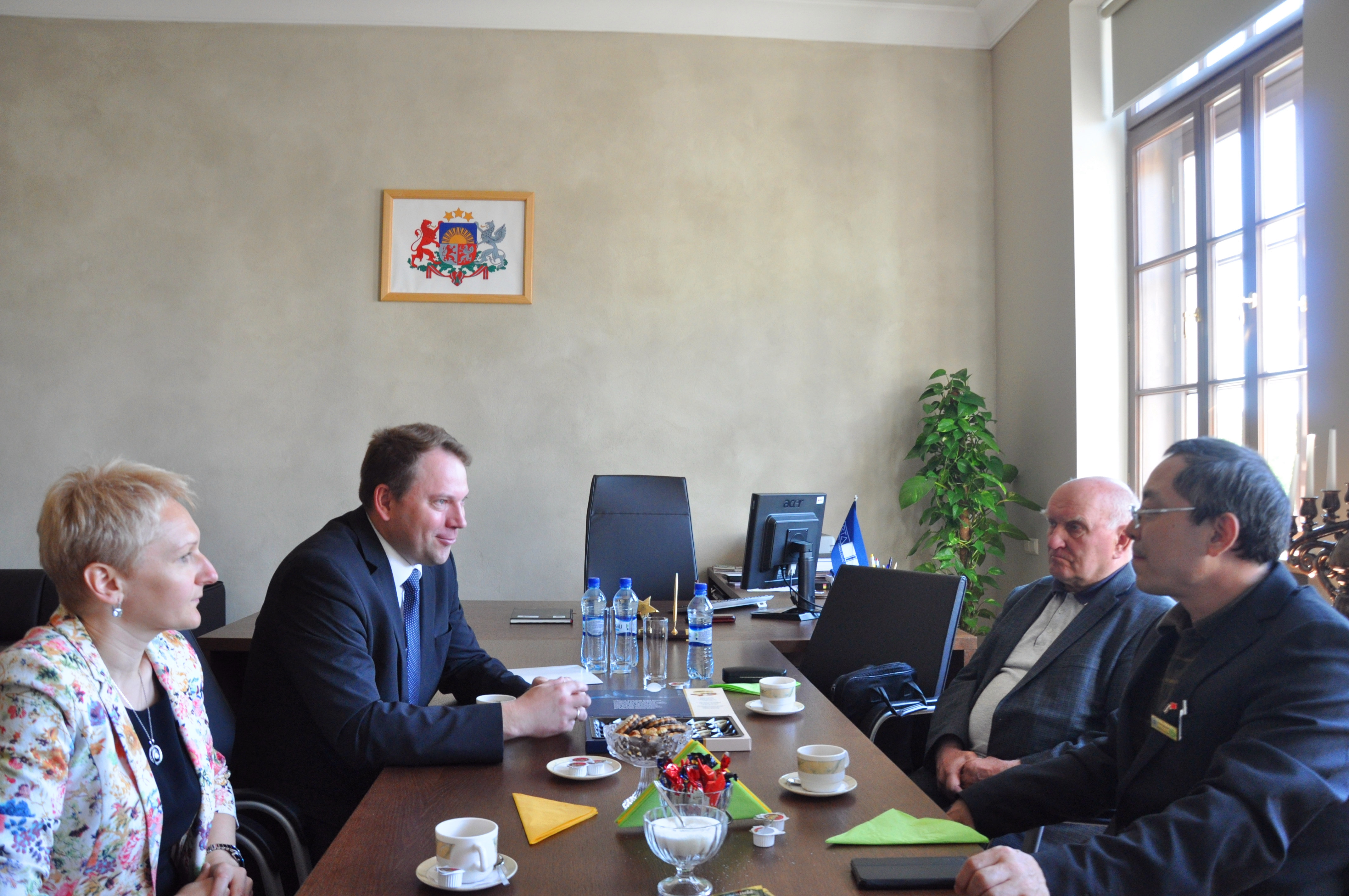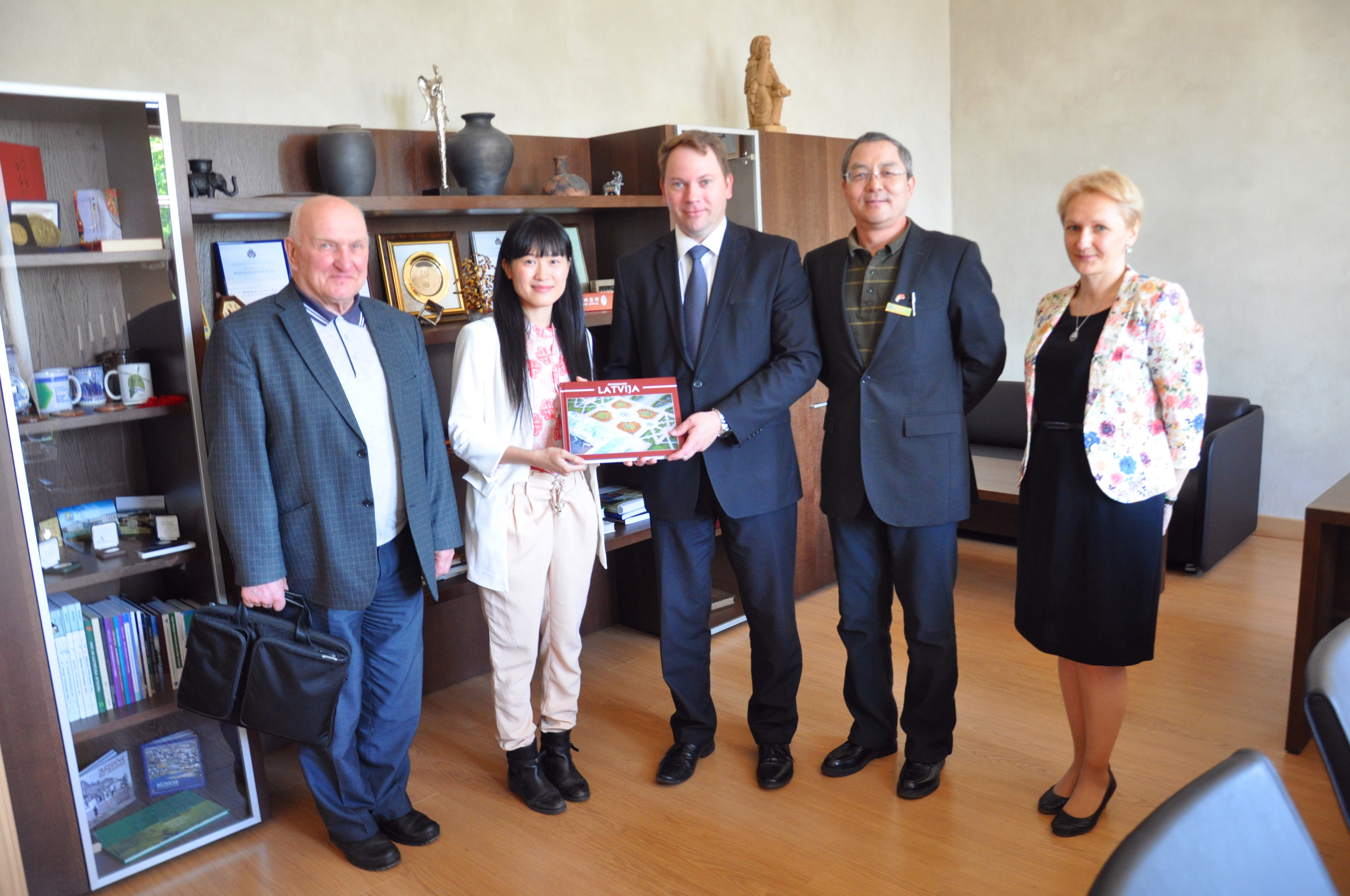 First, the two directors,the rector of Rezekne University Mr. Edmunds, teacher Ms. Antra and volunteer Chinese teacher Liang Mingxuan had a meeting. Mr. Edmunds thanked for the good cooperation between Confucius institute at Latvia University and Rezekne University during these years, Ms. Antra thanked for the hard work of volunteer Chinese teachers Liang Mingxuan. Then, the two directors and rector talked about and made a summary of Chinese language teaching situation and achievements ,and discussed some details of the opening ceremony of Confucius Classroom at Rezekne University in September 15 .Finally, everyone made a number of recommendations on the Chinese language teaching in the future , such as making the Chinese lessons included in credit courses, subscribing more suitable Chinese textbooks and opening Chinese culture interest courses ,in the hope that the Chinese teaching will be better. Subsequently, Chinese teacher Liang Mingxuan summarized her teaching in Rezekne University, she not only put forward her own deficiencies in teaching and some difficulties ,but also students’ achievements in Chinese,in the end she thanked for the school’s support and assistance work. After the meeting , Mr. Edmunds gratituded to the volunteer Chinese teacher and sent her a book.