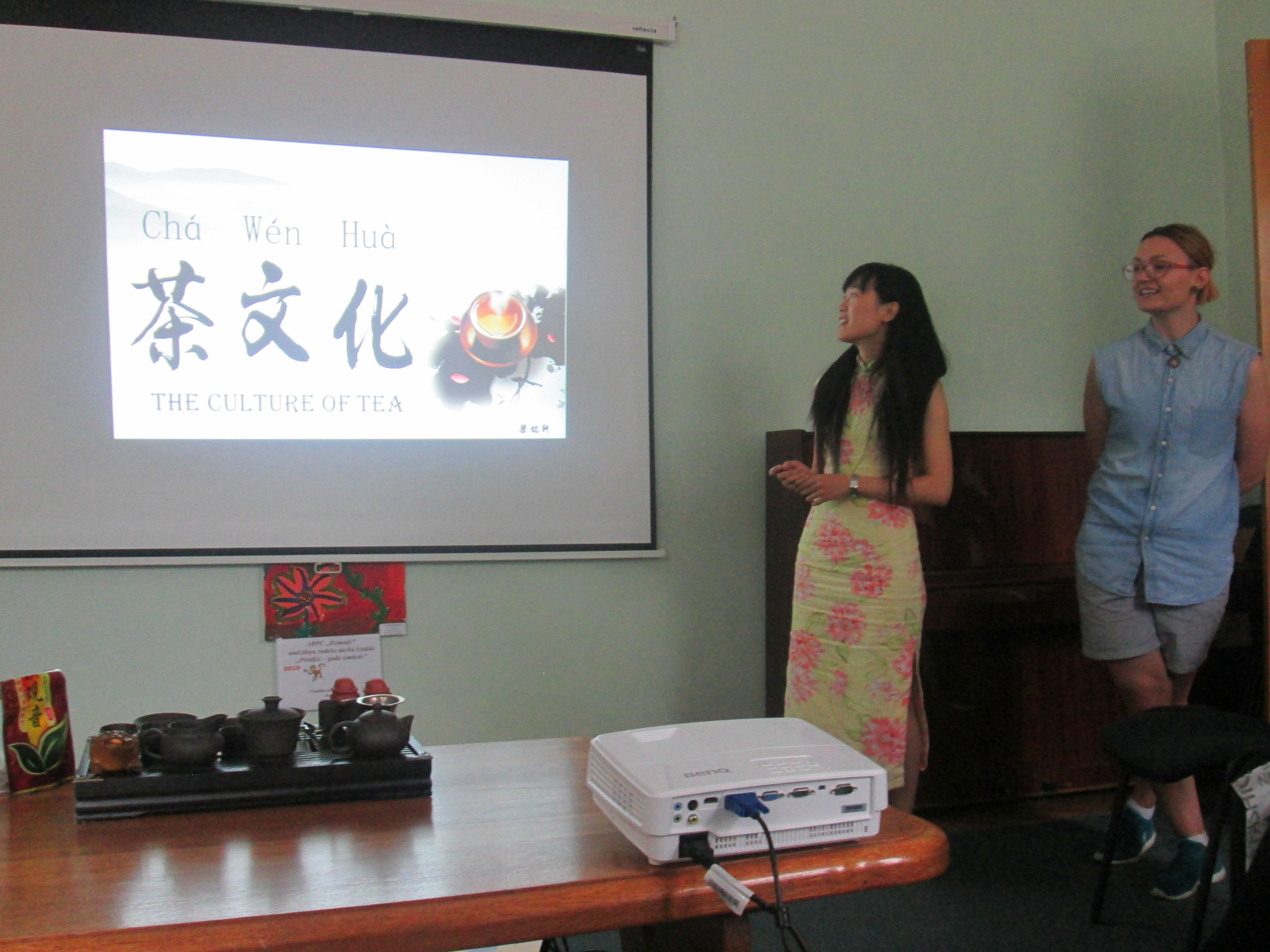 The lecture was divided into two parts, volunteer Chinese teacher Liang Mingxuan first gave a lecture about knowledge of tea culture, introducing the origin and development of tea,then the importance of tea in the hearts of Chinese people. Followed by is the China’s top ten tea and their categories. Finally, she told the audience the different customs and types of tea from Chinese and all over the world,so that everyone can have a better understanding of tea.