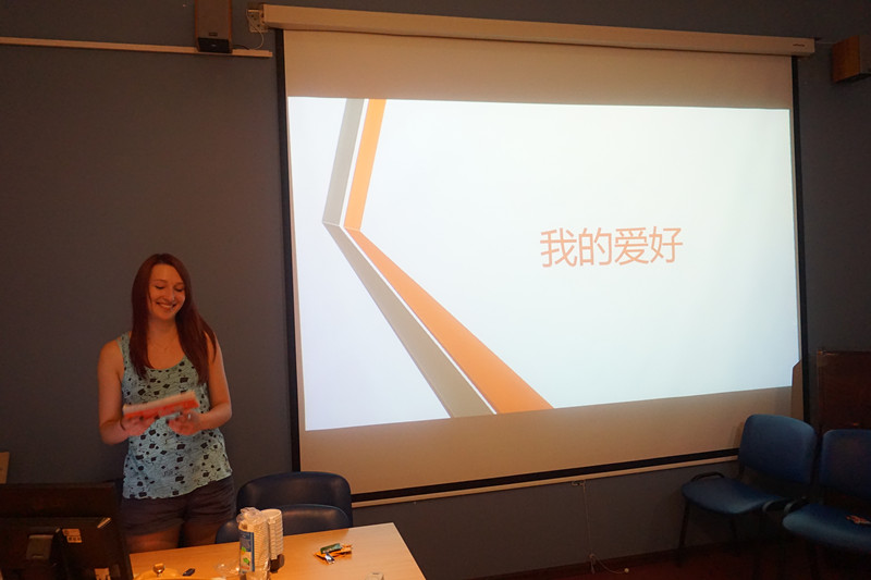 LatvianUniversity at 4:30 pm on 1st of June, 2016. It was again hosted by Dr. Agita Baltgalve, professor of Sinology at the Faculty. About twenty people took part in this activity. They included undergraduate and graduate students who specialized in Sinology, Chinese language teachers who taught at the Faculty and volunteer Chinese language teachers from Confucius Institute. The topic of Chinese corner this time was hobby. After everyone had made a short self-introduction, it was presentation period, in which some well-prepared students shared with audience their hobbies with PowerPoint illustration. A student showed how she loved cats, while another showed how she adored her dogs and in addition, how well she could dance and sing. Karina Jermaka, a local Chinese language instructor working at the Faculty, played some of her street dance videos that impressed everyone. It turned out that she was not only a Chinese language teacher but also a street dance teacher. Her explanations of characteristics of Hip-Hop and Locking held the audience’s attention; that her hobbies also included Chinese calligraphy and painting led everyone to marvel at her versatility. Another impressive talk was given by a volunteer Chinese language teacher whose hobby was jogging and who participated in marathon after some years of devotion to the hobby. In fact, interesting sharing of hobbies followed one after another. Some just enjoyed long hours of sleep; some liked cooking; some loved taking care of kids. Some found great pleasure in playing Ukulele, and some were keen on swimming and pin-pong game. In general, participants’ hobbies were about sports and artistic pursuits. The last phase was free talk. Because it was arranged that Sinology students and teachers sat next to each other so that each Sinology student was accompanied by a Chinese language teacher, they had plenty of opportunities to practice spoken Chinese. The meeting place just saw people engaged in in-depth talks on hobbies that interested them. The activity lasted approximately two hours with drinks and cookies served on the table. The “Chinese corner” activity this time furthered understanding between teachers and students, who learned some vivid expressions from the talks.