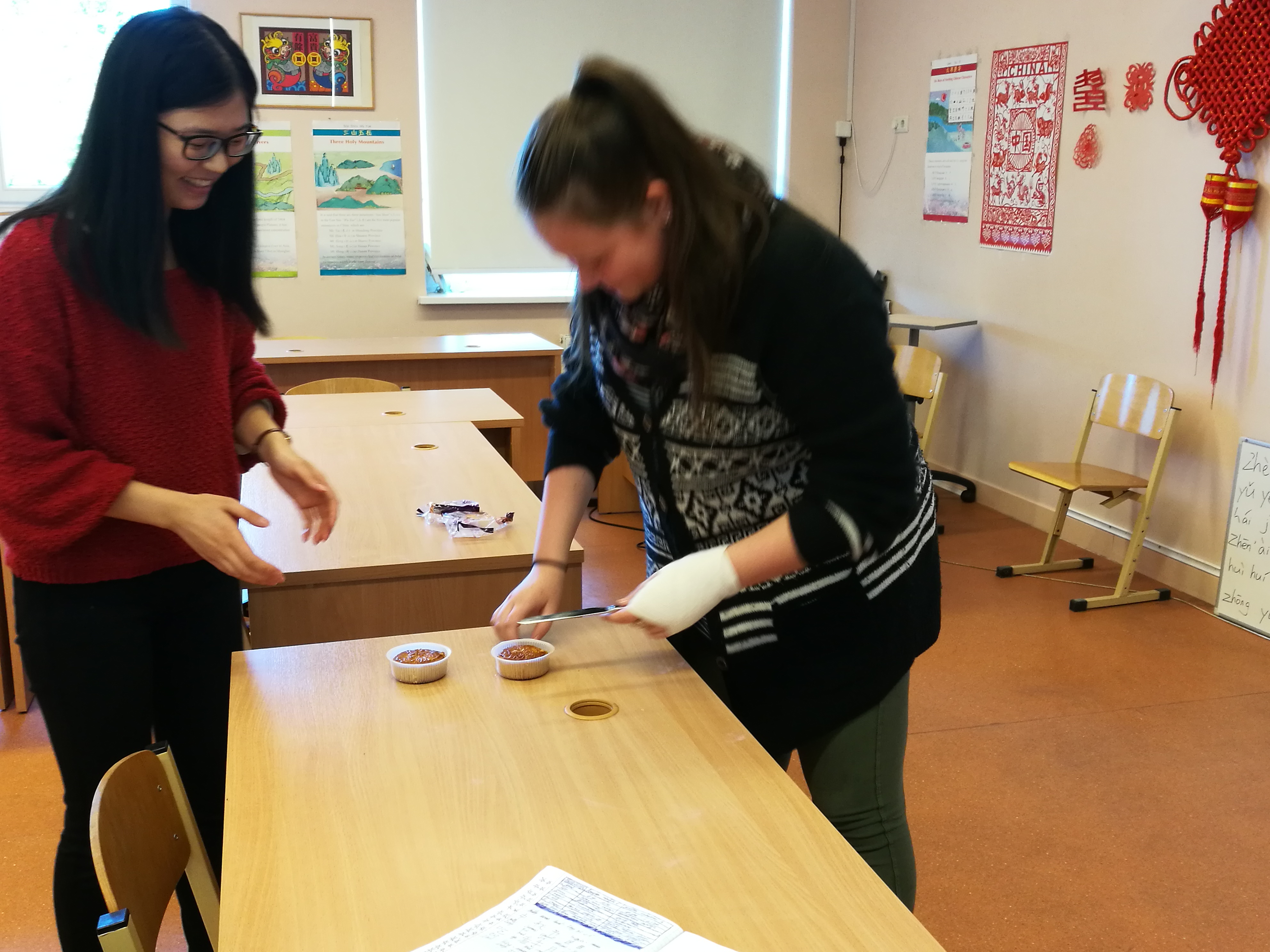 September 15th , 2016 is a Chinese traditional festival – the Mid Autumn festival. Students and their Chinese volunteer teacher from Confucius class in Riga Culture Secondary School affiliated to the University of Latvia celebrated the Mid-Autumn Festival together.