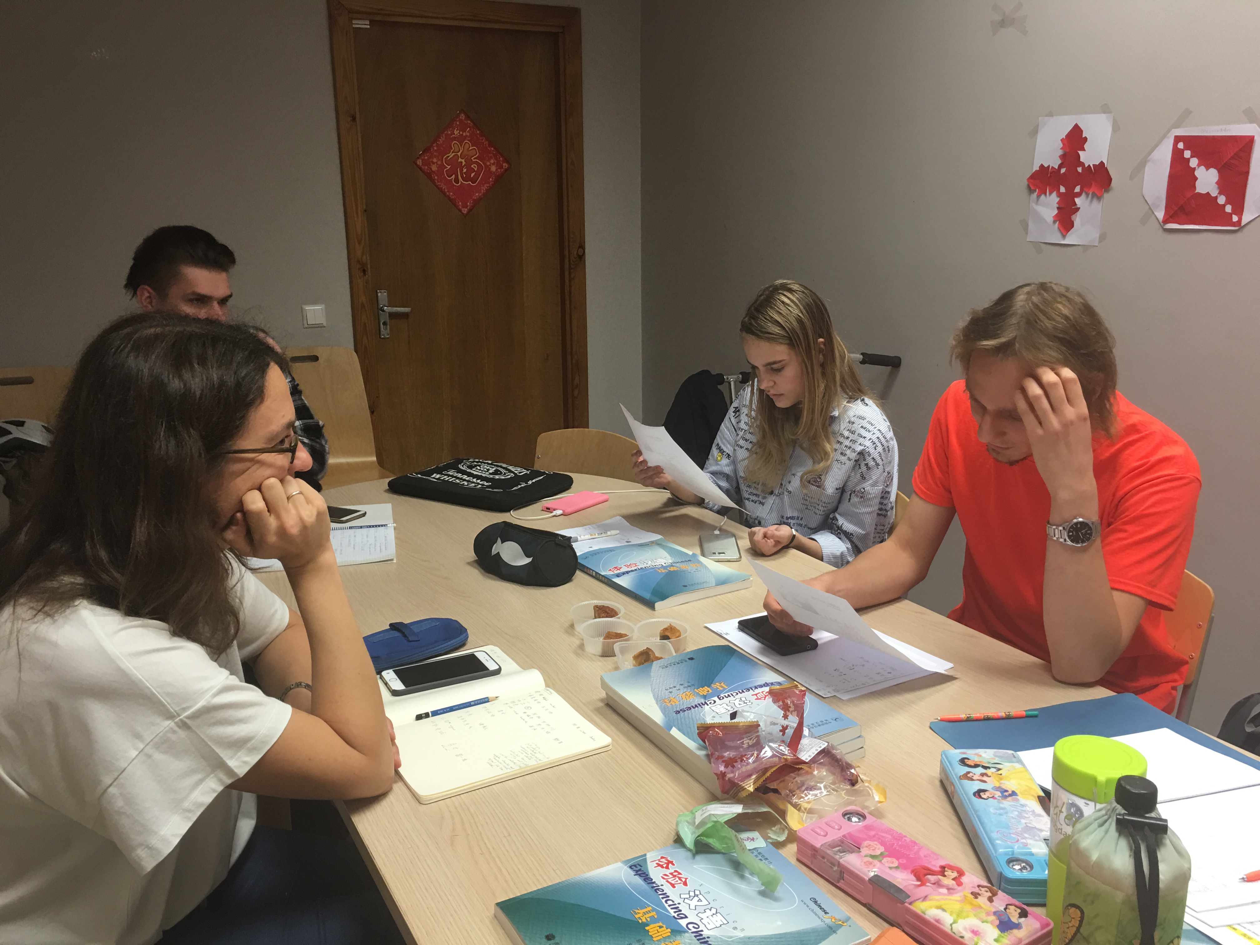 On the evening of September 14th, after the language lessons had finished in the Advanced Class, 2 pre-teenager sisters of advanced level were eager asking about their culture lesson. They were guessing if it is about the Mid-Autumn Festival. Class began and the answer revealed—Yes! The Chinese teacher began the class by introducing the tradition of Mid-Autumn Festival, following by the story of Hou Yi and Chang’ E. Students were fascinated by the mythical yet romantic story and answered the teacher’s question with great interest. After Q&A section, beautiful melody of “May we all be blessed with longevity” were played, and a singing match was held. Appreciating the mood cakes while singing Chinese songs, the classroom was filled with joy.