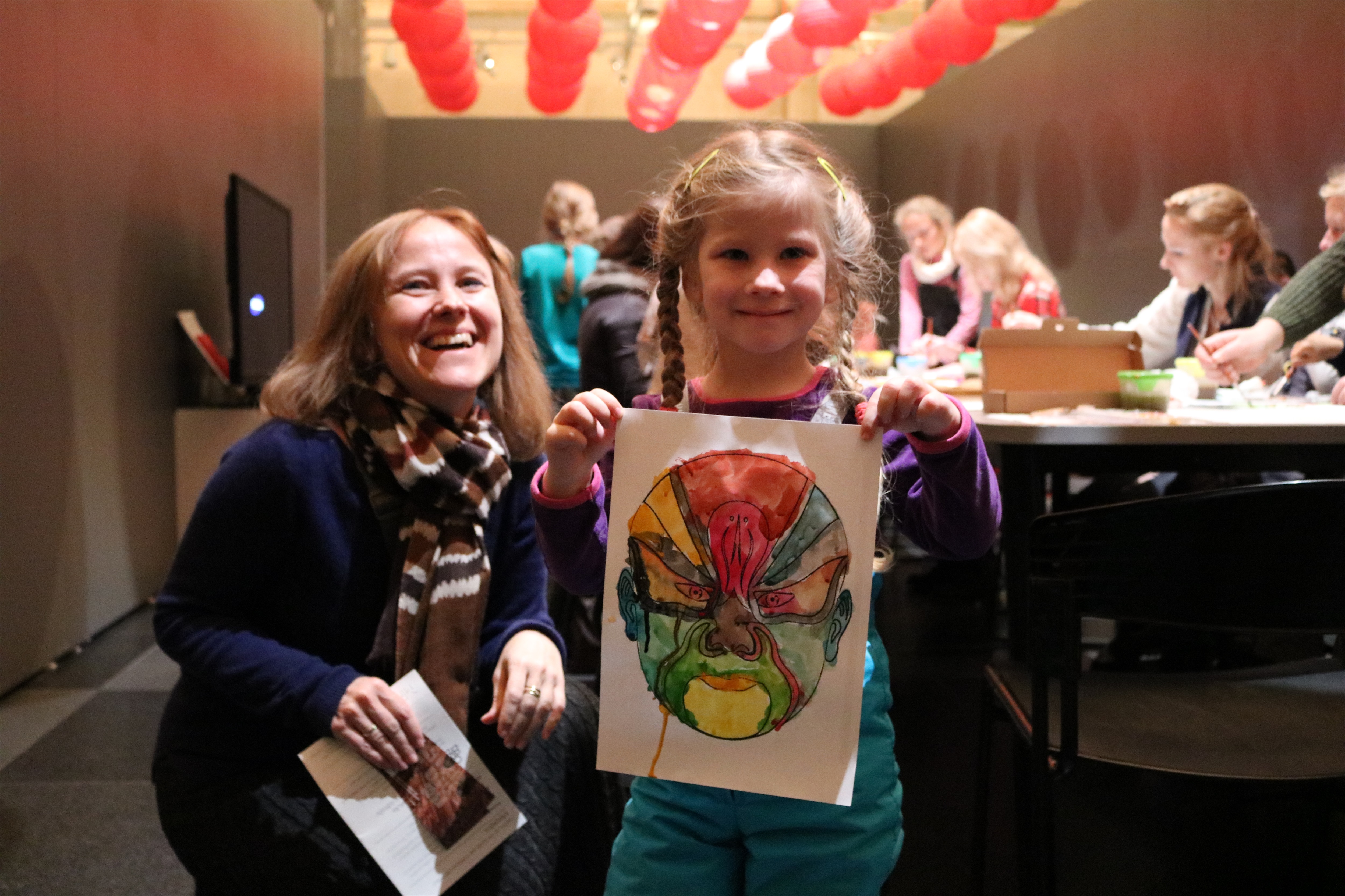 The workshop of experiencing Peking Opera mask painting was full of happiness and harmony. At the end of the activity, many participants took photos with their works.