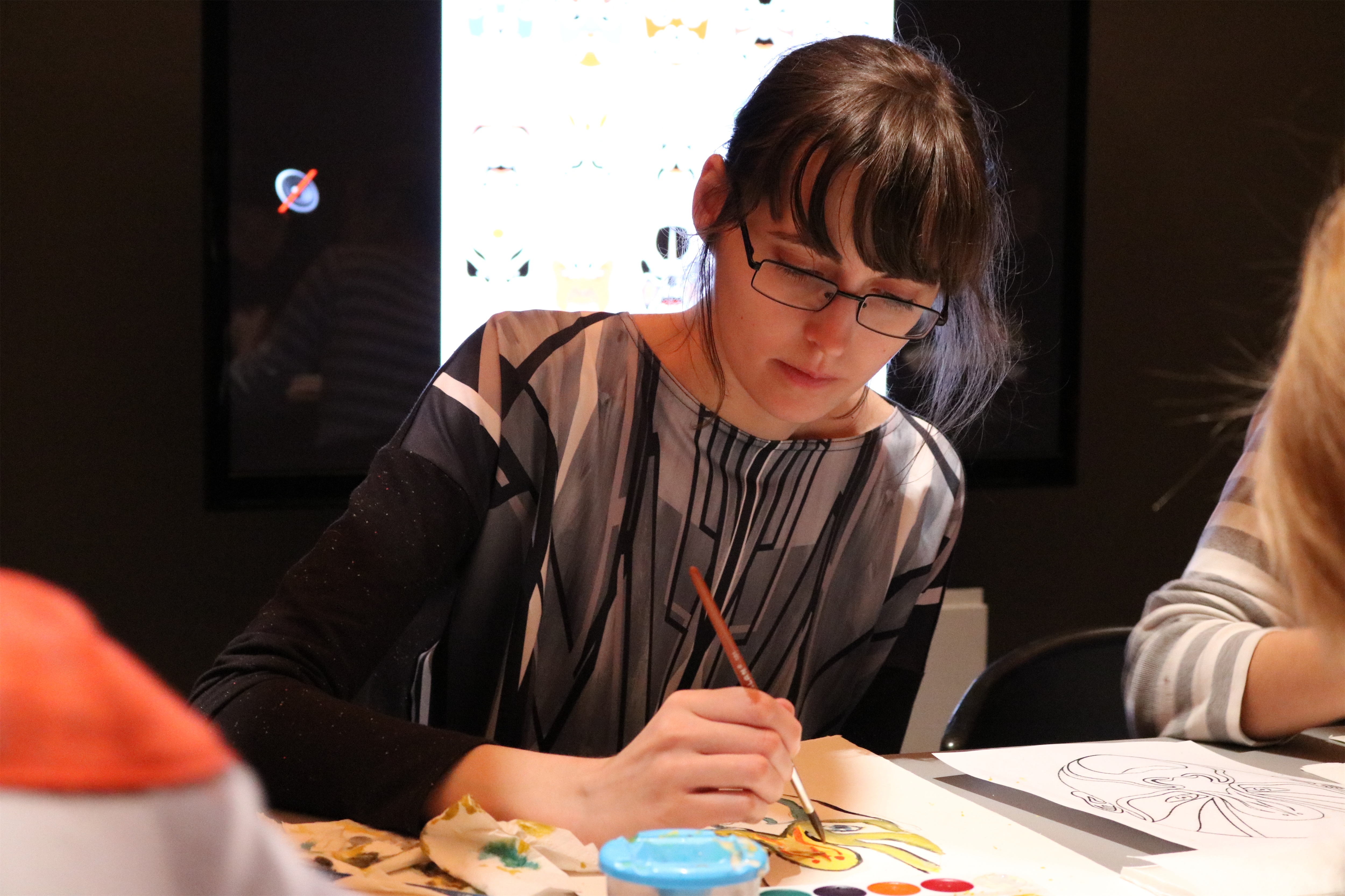 Local time November 14th at 1:00 pm, a wonderful workshop of experiencing Peking Opera mask painting was opened in the Art Museum Riga Bourse. The experience was jointly organized by the Confucius Institute at the University of Latvia and the Art Museum Riga Bourse. Two Chinese teachers Hu Yue and Lin Jie from the Confucius Institute hosted the event with the assistant of Kristine from the Art Museum and another two teachers from the Confucius Institute. The number of participants was more than forty.