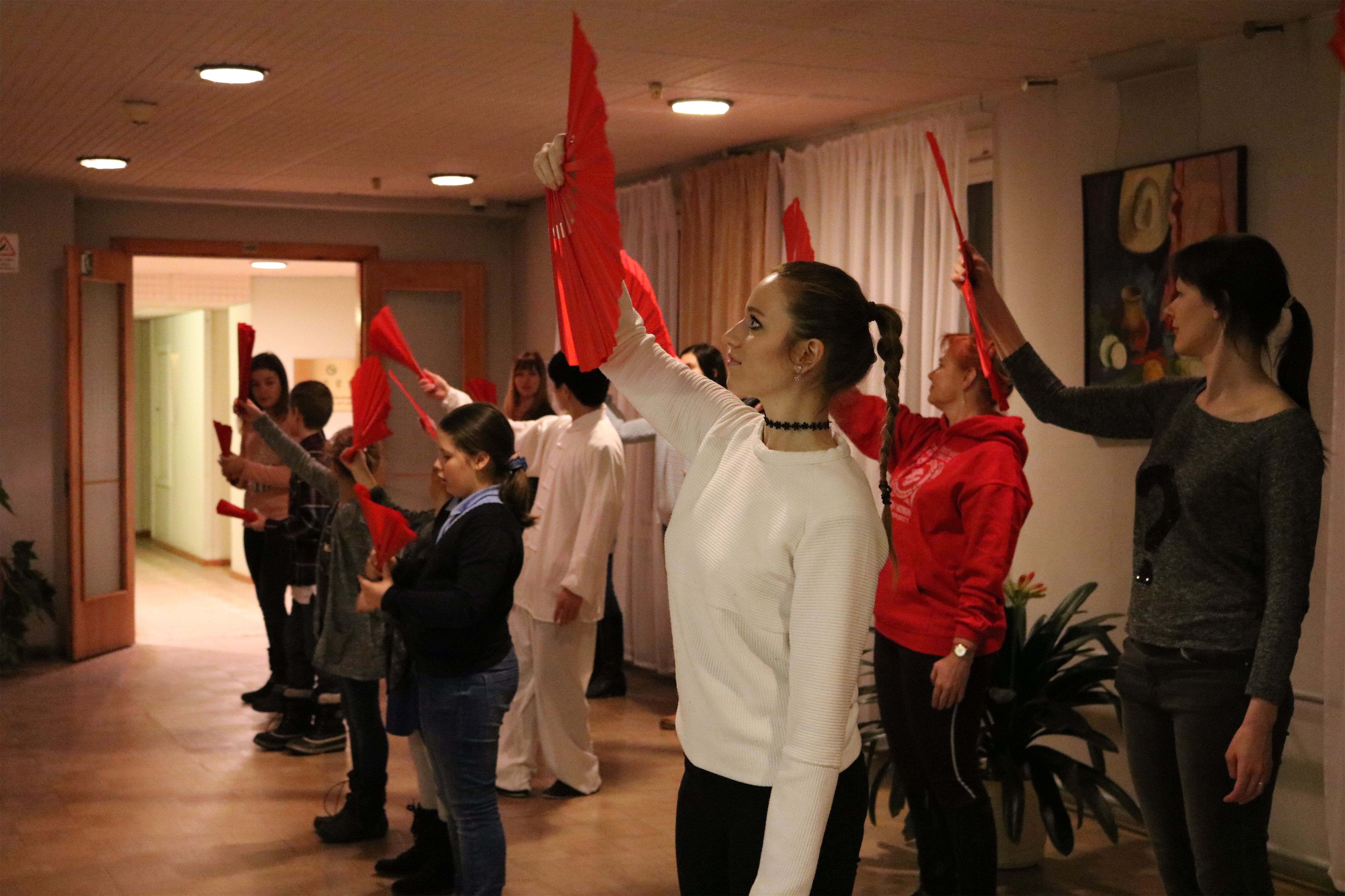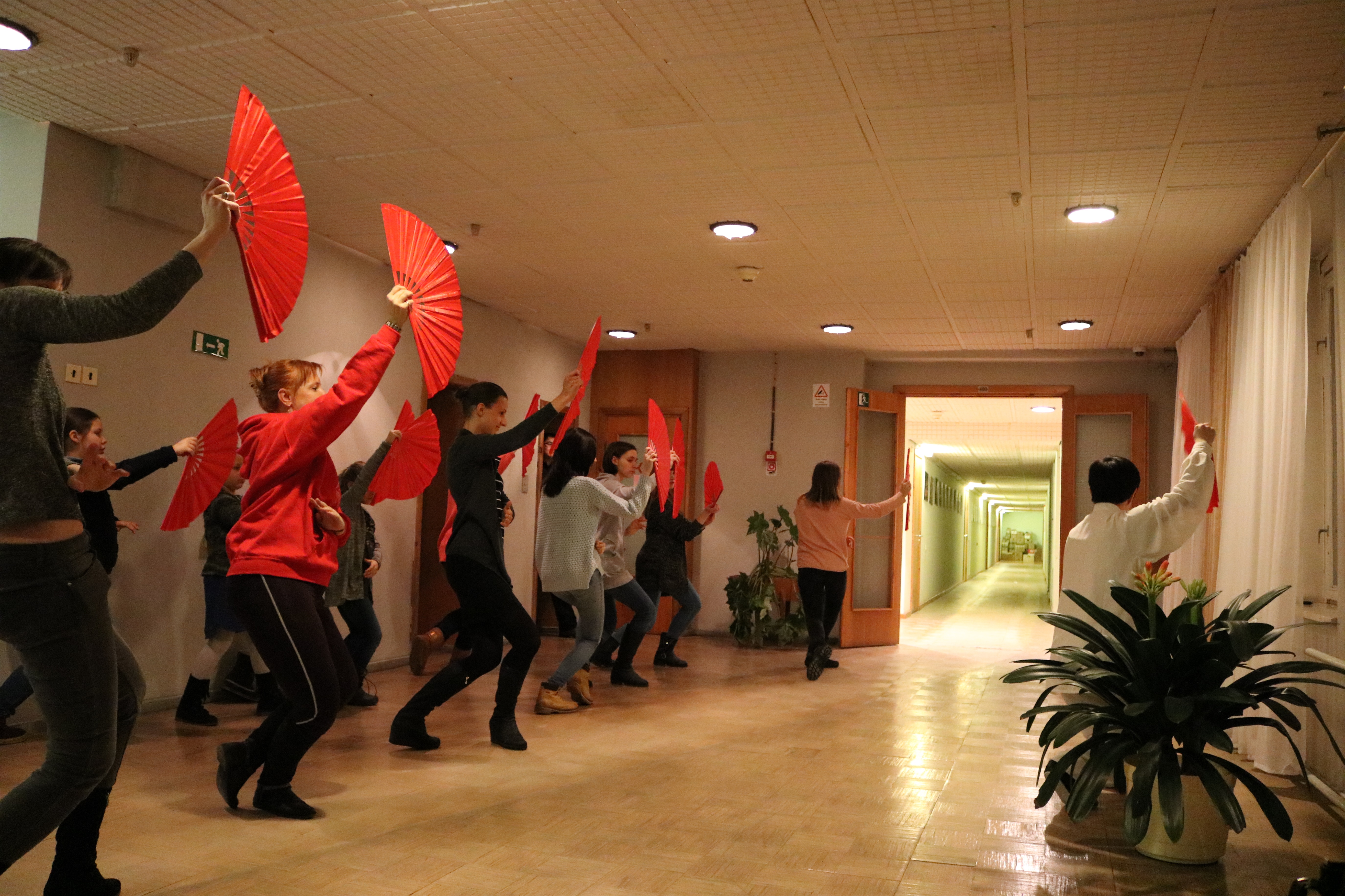 The 2nd period started with Taichi Quan study. Featuring the spirit of floating clouds and flowing water, Taichi Quan neutralized the opponent’s assault into counter reaction. Slow motion and relieved atmosphere of Taichi relaxed body and soul of every student. Straight after Taichi Quan, Taichi Fan study, the climax of the lesson came. Taichi Fan combines Taichi movements with fan dancing, forming a perfect integration of hardness and softness, strength and flexibility. Students made progress bit by bit. Under tutorial, they were eventually able to conduct actions smoothly and clearly.