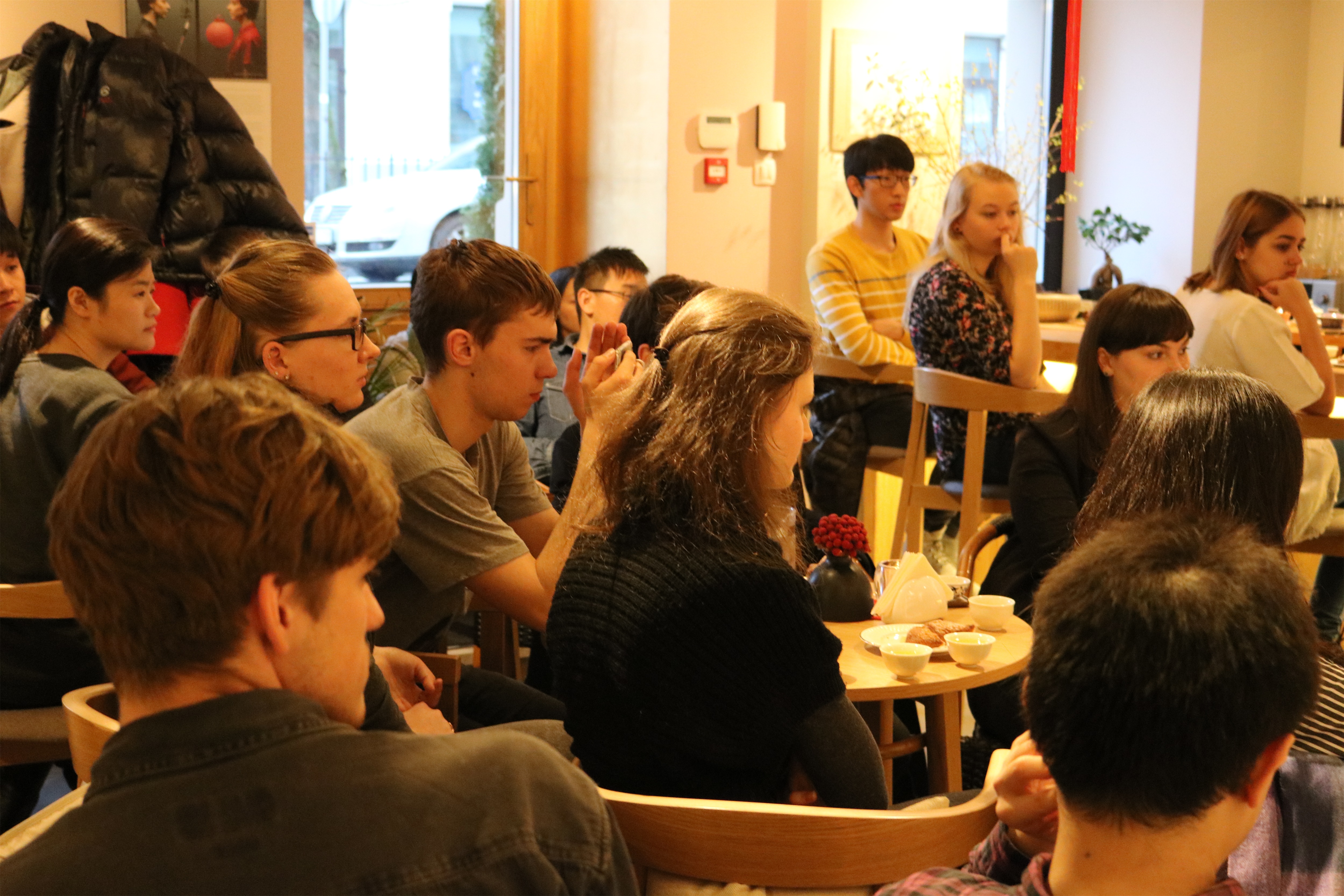 The first Chinese corner organized by Faculty of Humanities, Latvian University was held in Shan Tea, a local tea store at 6:30 pm on 1st of June, 2016, EET. It was again hosted by Dr. Agita Baltgalve, professor of Sinology at the Faculty. About thirty people took part in this activity. They included undergraduate and graduate students who specialized in Sinology, Chinese language teachers who taught at the Faculty, Chinese language teachers from Confucius Institute, some Chinese students studying in Latvia and Chinese immigrants living in Riga. This time they talked about tea while enjoying themselves with Chinese tea. Ms. Yang, owner of the store, performed tea ceremony as the initial activity which grabbed enough attention from the audience who photographed and videotaped the whole process. The first serious Chinese corner activity, however, was to introduce one’s friend who was present. Everyone felt entertained by the element of interaction which was absent in regular self-introduction. Mr. Li Tao, counselor of Chinese Embassy at Latvia, was invited to give a talk on Chinese tea culture and Peking opera. Many students thought they learned a lot from this talk. The highlight of this Chinese corner was group work, though. Every group had both Chinese teachers and Latvian students who were given a list of types of Chinese tea and Latvian tea. The Chinese teacher’s job was to introduce the types of Chinese tea to the Latvian students, who translated name of Chinese tea into Latvian after having understood the explanations. The Latvian students introduced Latvian tea to the Chinese teachers, particularly the appearance, the source and the drinking methods, in great details, so that they could come up with a Chinese name for the Latvian tea through much cross-questioning. As tea grows in the big picture of certain local plant ecology, equivalent expressions are hard to find. This fact results in plenty of explanation work and contributes to meaningful conversing and communication in Chinese. The activity resembled jigsaw puzzles because it worked on information asymmetry and facilitated conversation practice. As usual, Chinese corner ended with free talk.