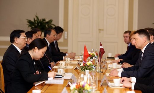 From April 12 to 14, His Excellency Zhang Dejiang, Chairman of the Standing Committee of the National People Congress of China visited Latvia, met with President Vējonis, Prime Minister Kučinskis, and Saeima (Parliament) Speaker Mūrniece. The delegation members include NPCSC Vice Chairman Wang Chen, NPC Foreign Affairs Committee Chairperson Fu Ying, MFA Executive Vice Minister Zhang Yesui, NPCSC Deputy Secretary-Generals Shen Chunyao and Chen Guomin.