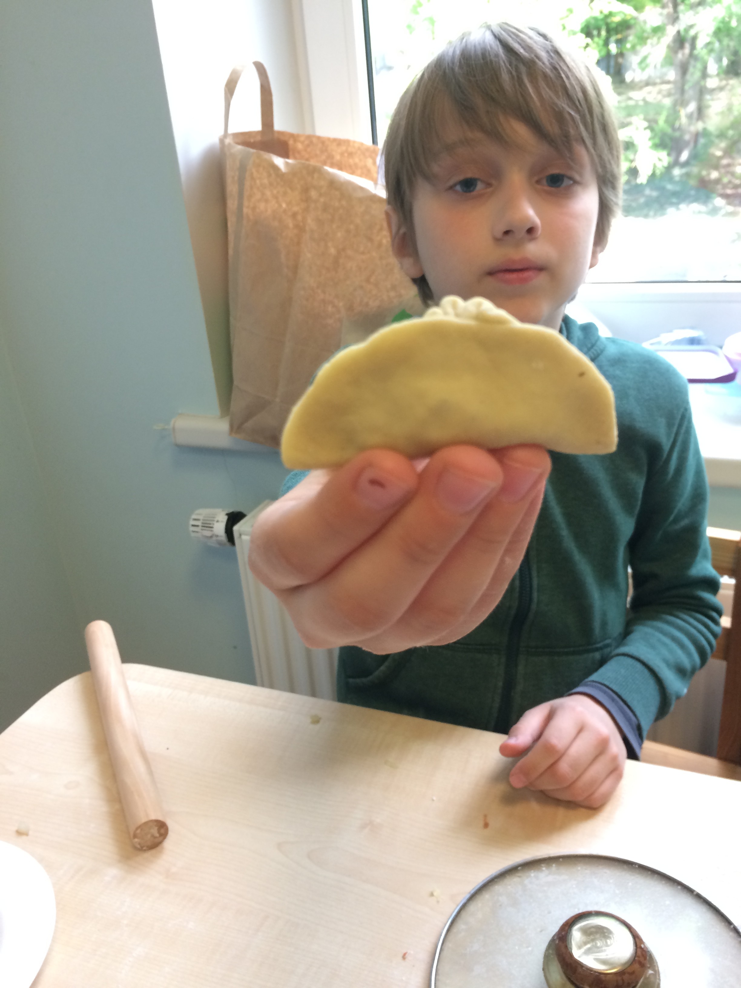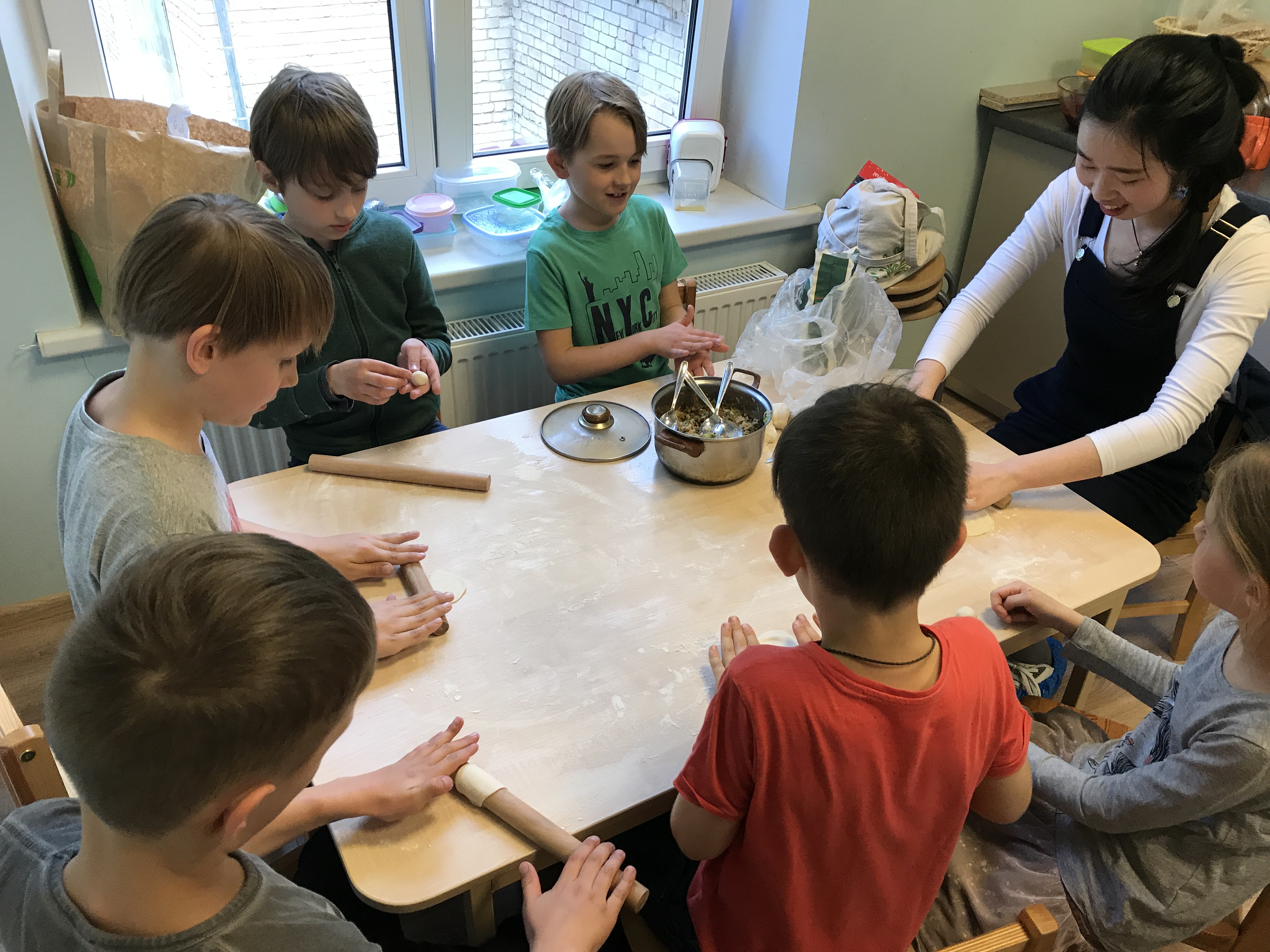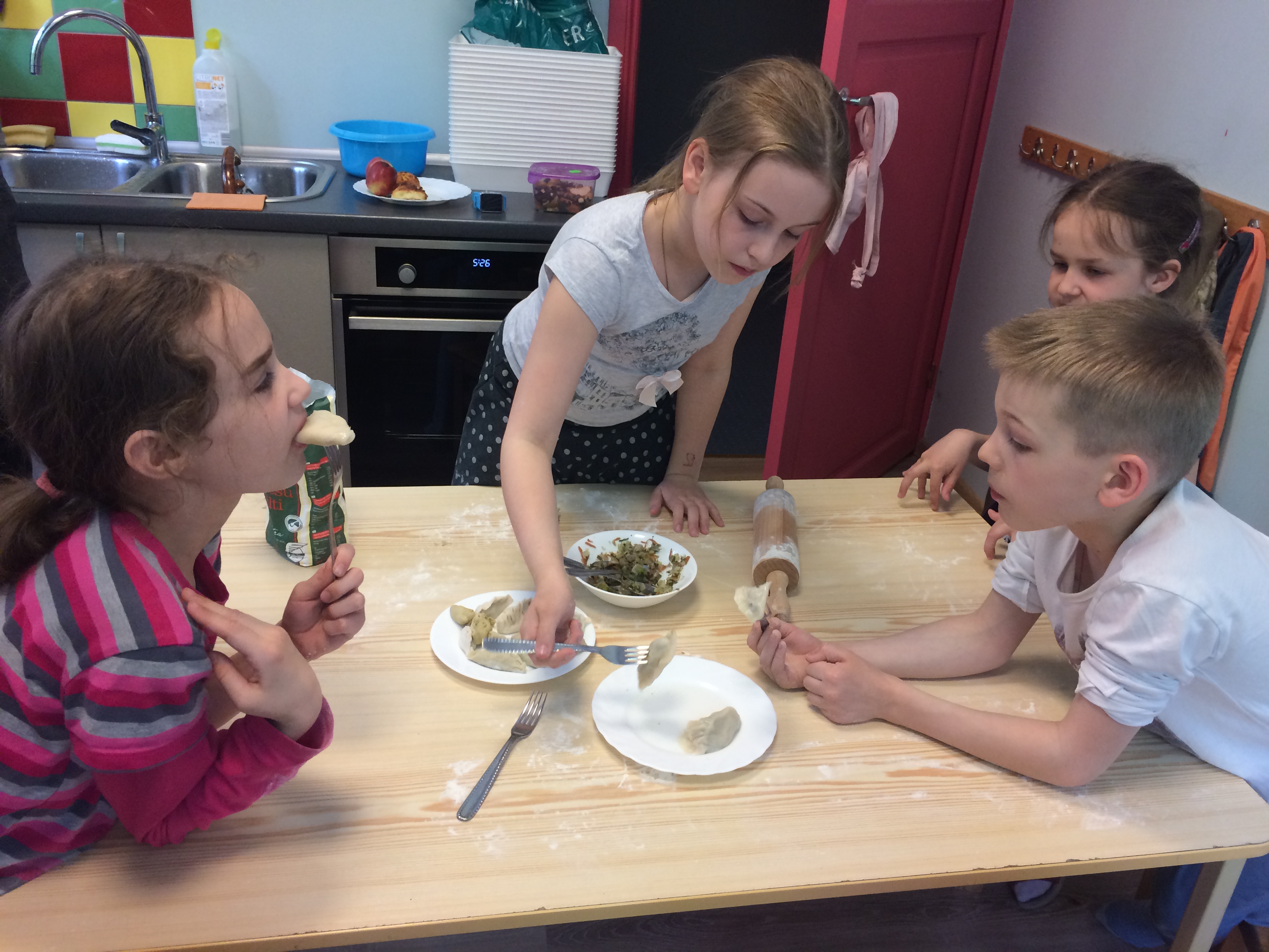 After a while, dumplings were done. The little foodies enjoyed the fruits of their labor with pleasure. After eating, they took some booty to parents.