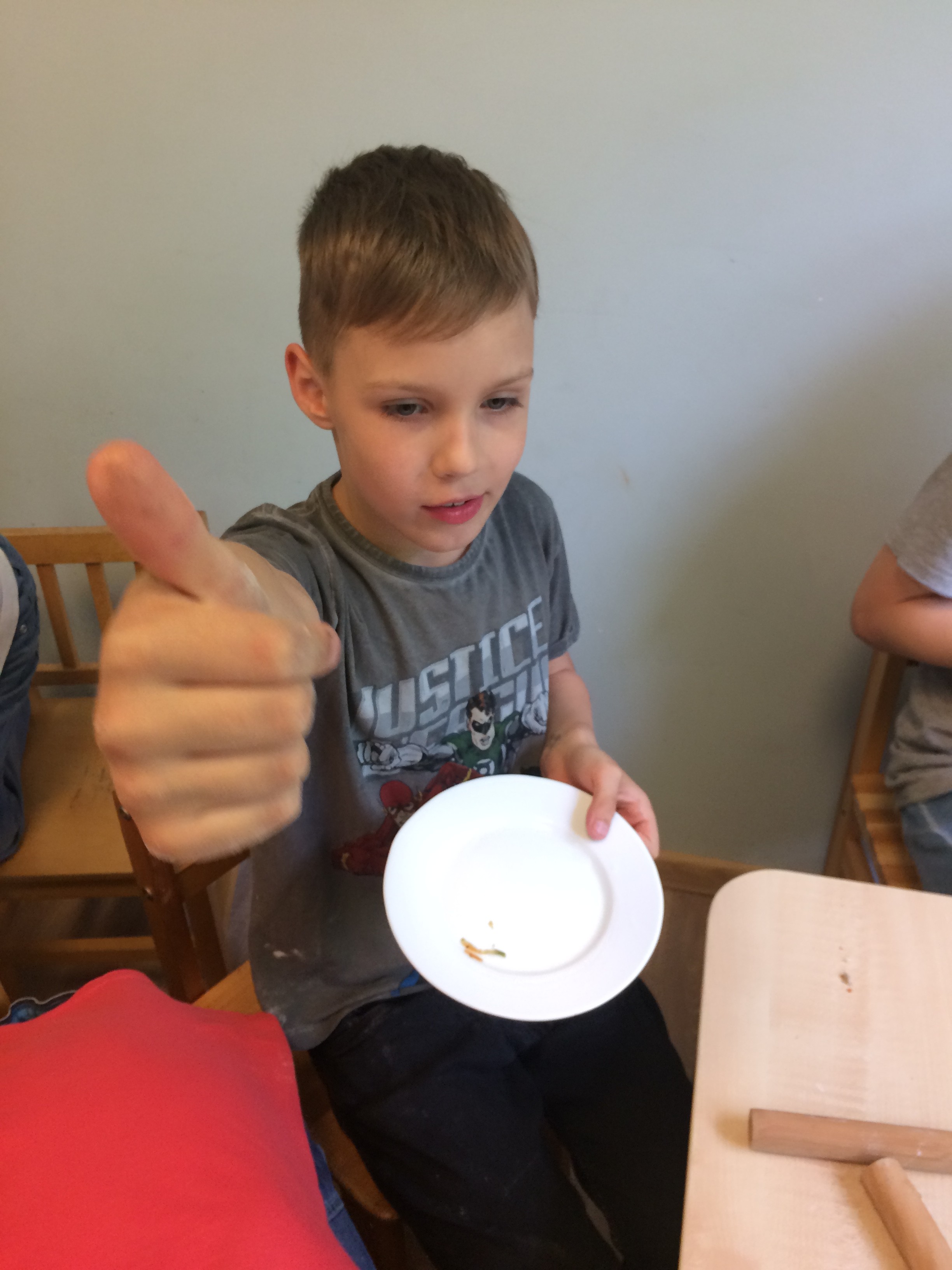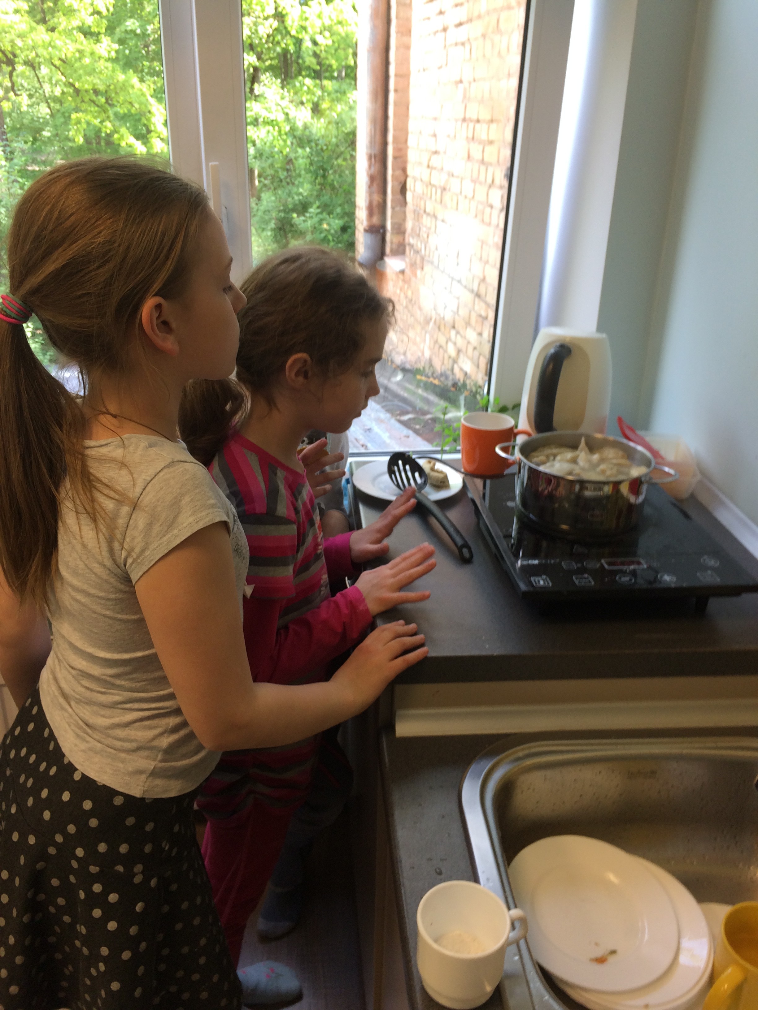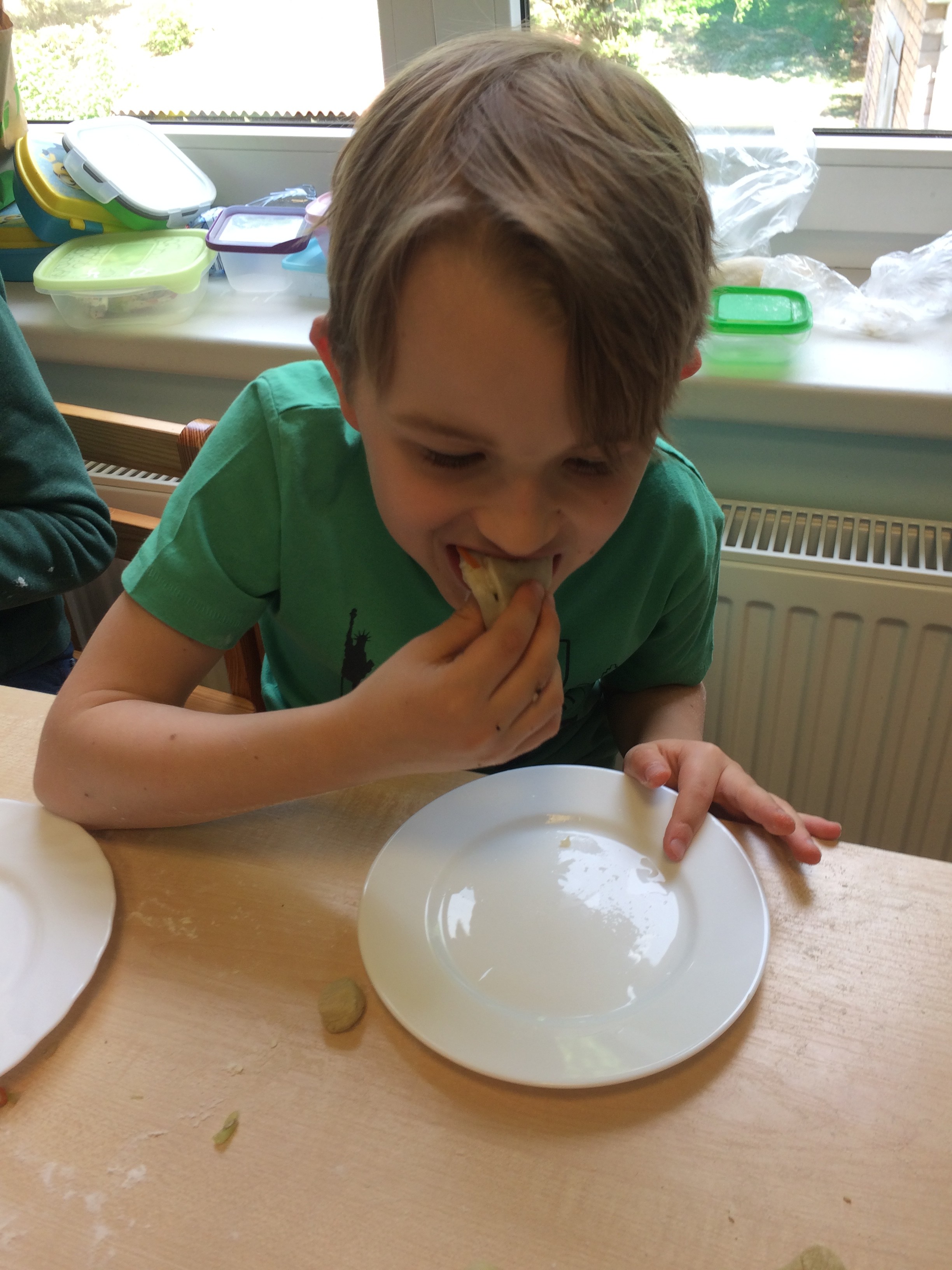 After a while, dumplings were done. The little foodies enjoyed the fruits of their labor with pleasure. After eating, they took some booty to parents.