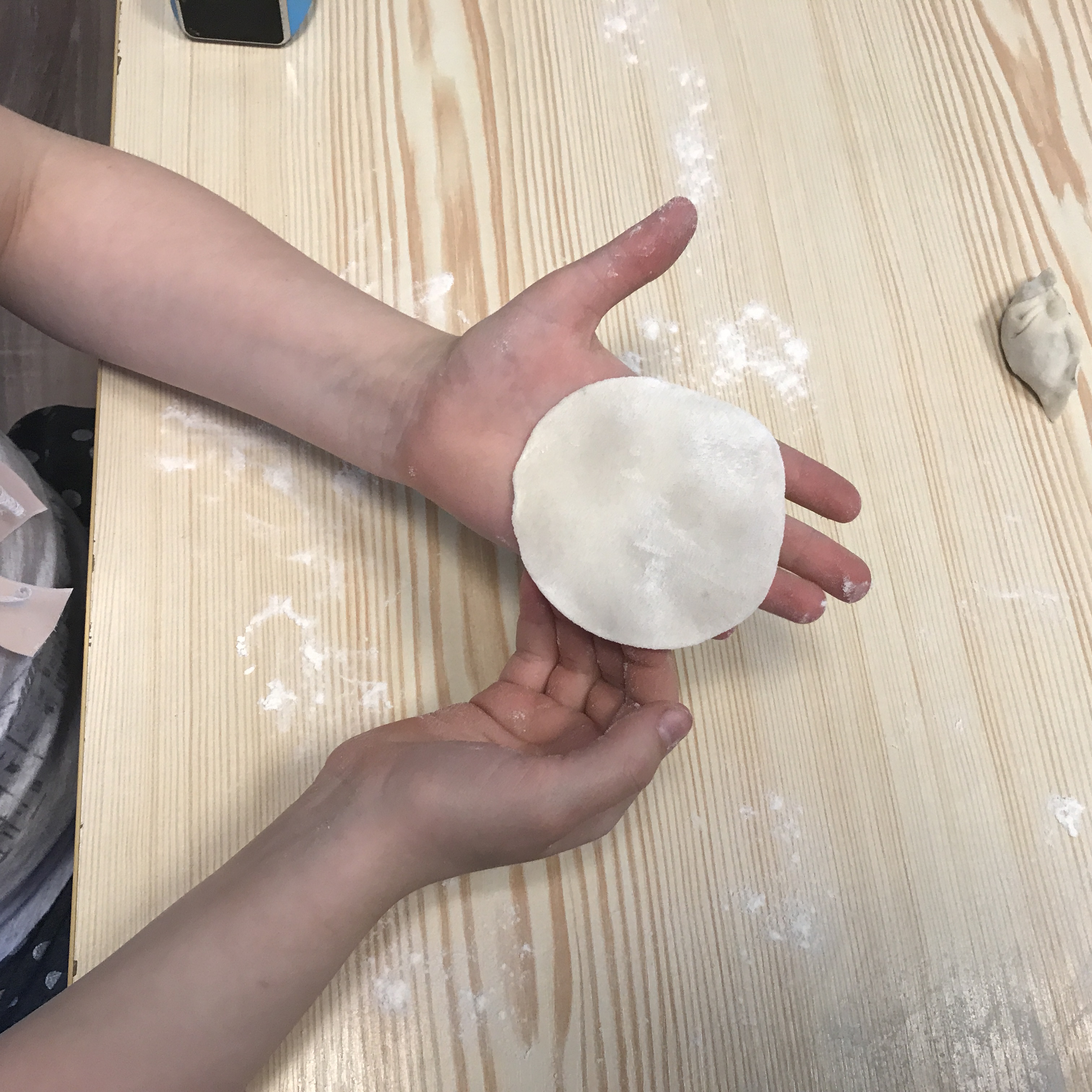 Before the formal experience, the Chinese teacher introduced the origin, meaning of dumplings and the time to eat dumplings to children. For them, to compare with teacher, the white dough and rolling pin were more attractive. After learning cultural knowledge of dumplings, the children couldn’t wait to pick up dough and rolling pin to create their own dumplings, there was a variety of styles like long strip, flat type, conical and so on.