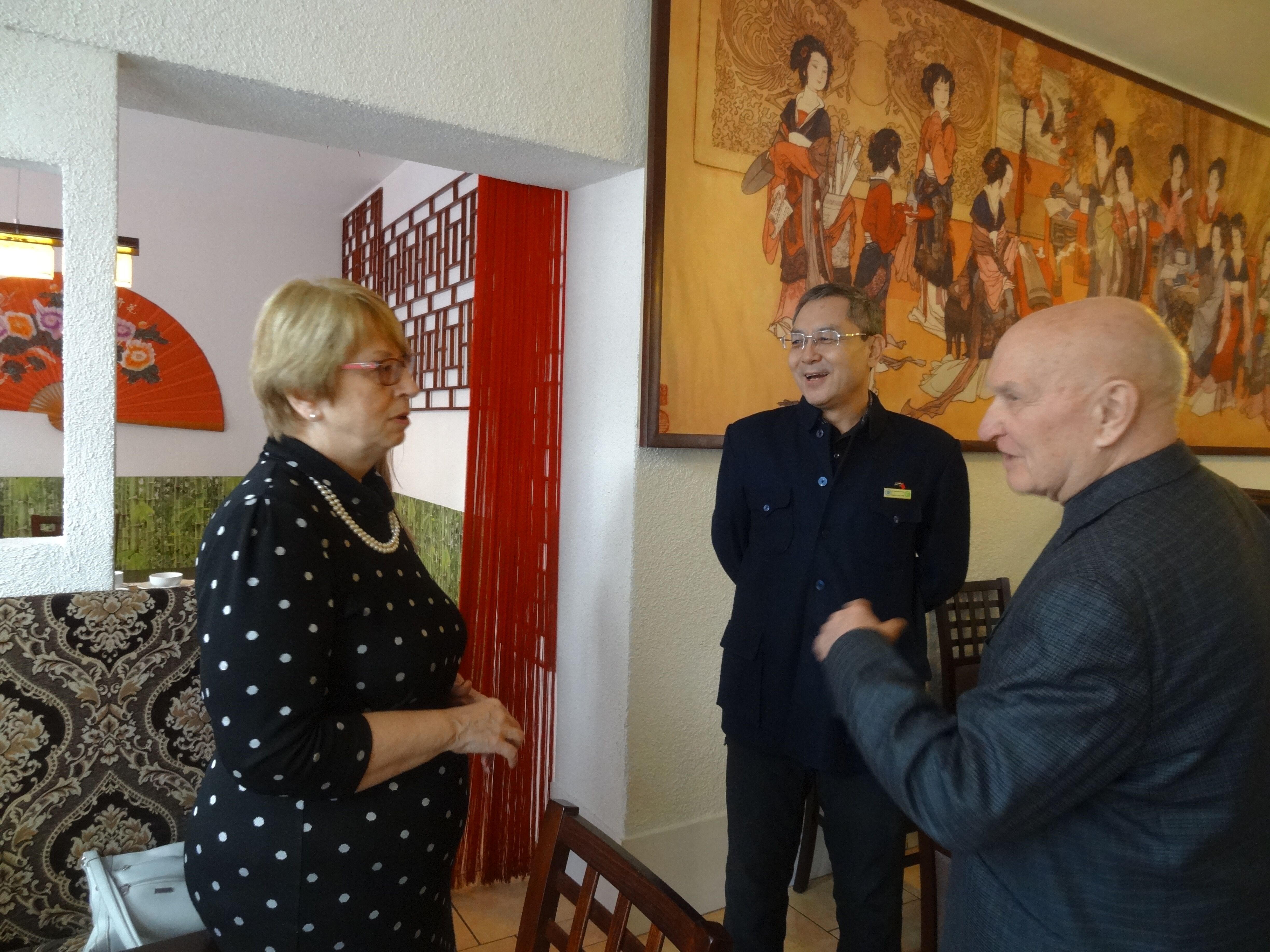 当地时间11月13号上午,拉脱维亚大学孔子学院中方院长尚劝余教授及外方院长贝德高教授抵达文茨皮尔斯大学,与文茨皮尔斯大学校长卡里斯先生一起在中餐馆共进午餐,共餐的有文茨皮尔斯大学翻译学院院长戴杰斯先生、语言项目主管维达女生、国际办公室秘书瑞莎女士和汉语教师志愿者潘玲。双方展开了和谐融洽的交流,对文茨皮尔斯大学汉语学习的发展态势充满信心。