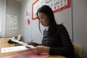 At 9:50 a.m., the beginner’s exam of HSKK began on time in the fourth examination room, there were four examinee to participate the HSKK test.  Then HSK1to HSK6 exam also began in another three examinations one after another. In order to ensure the smooth progress of this exam, Chinese teachers from Confucius Institute did everything they can to prepare for this examination. Ms. Dongfang, the Chinese teacher served as the chief invigilator. During the exam, the examinee were vigilant and their attitude was positive and serious.