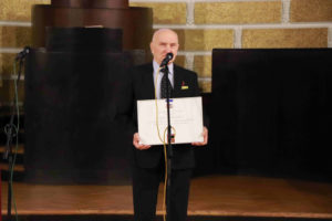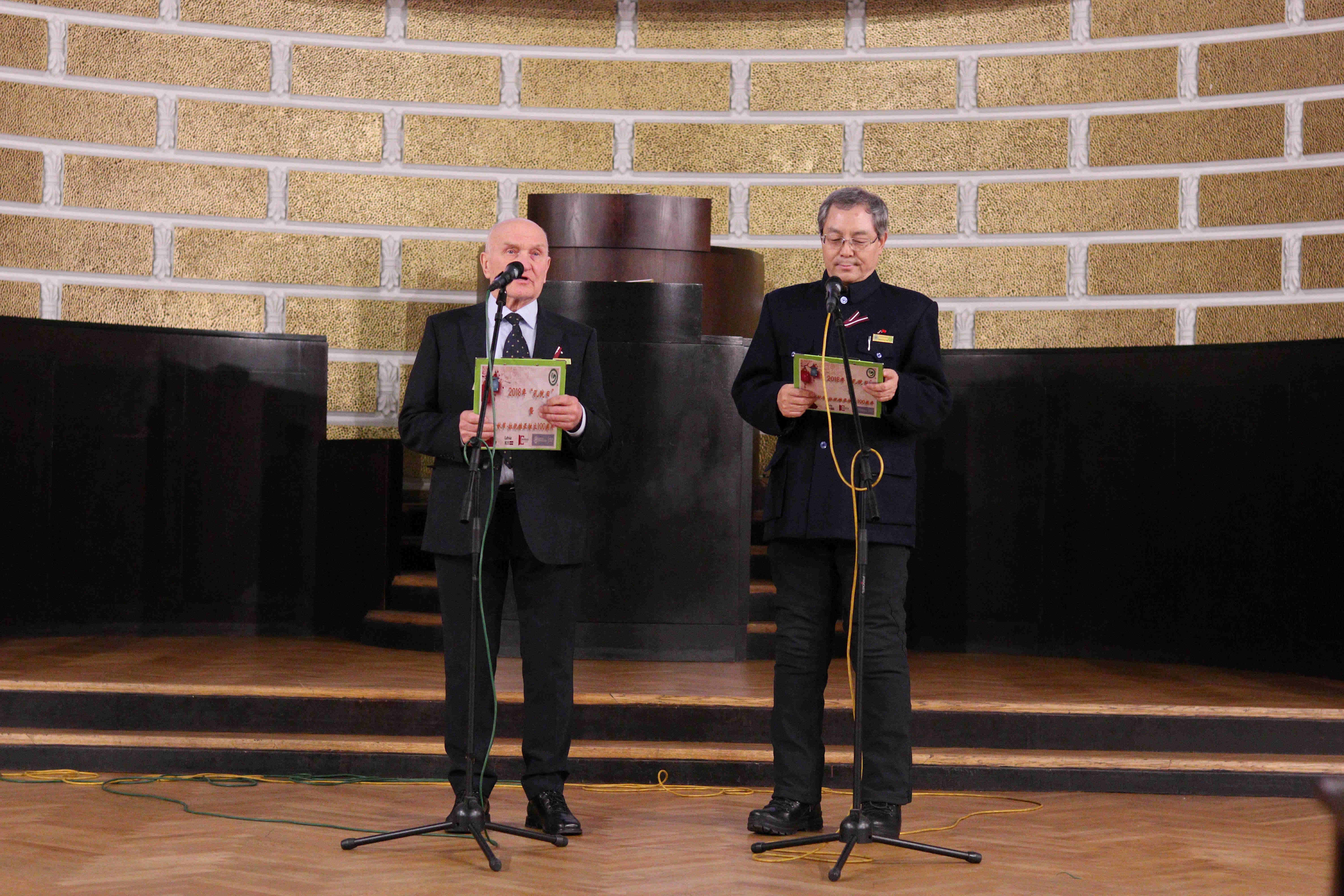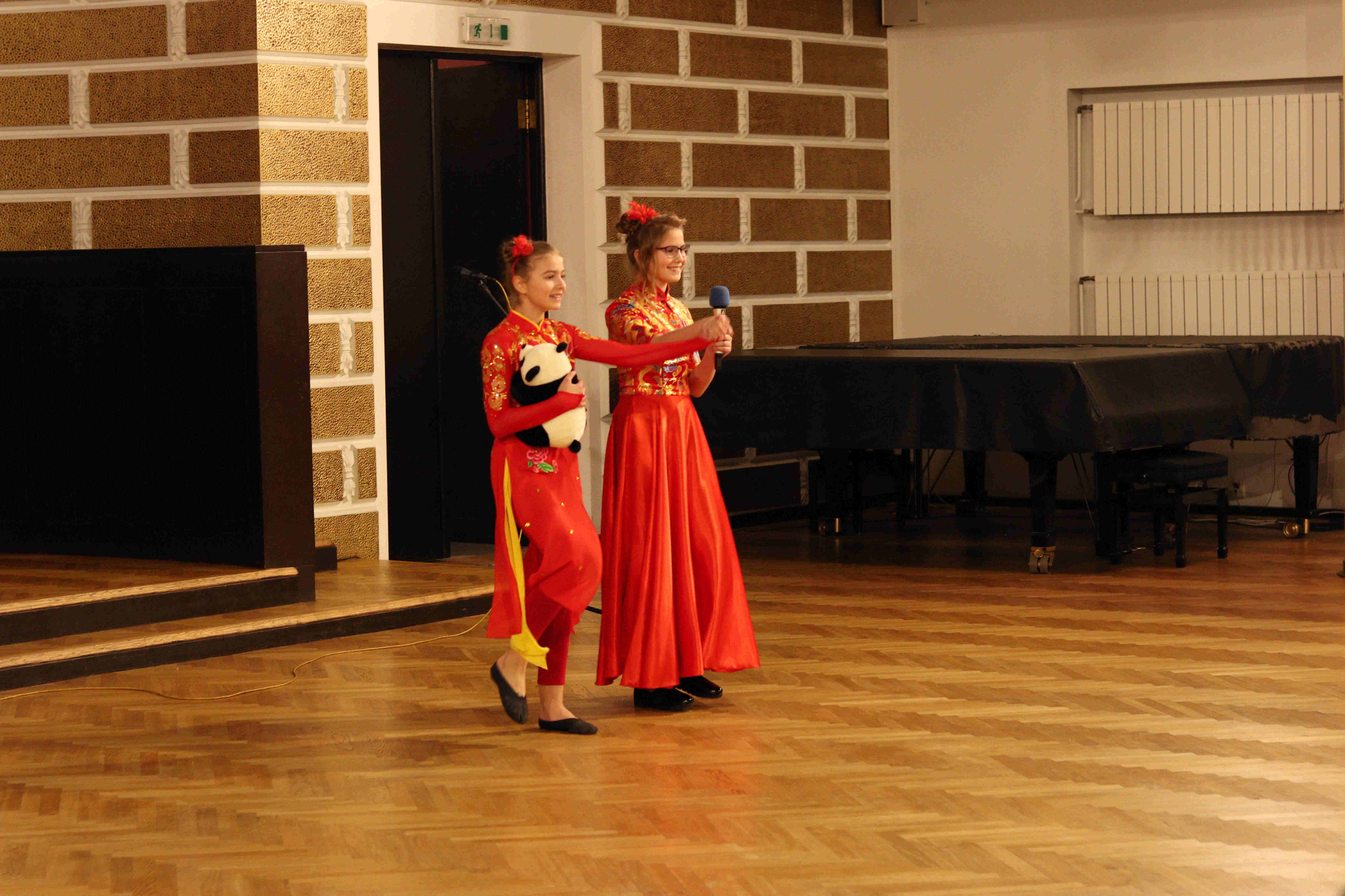 After the live demonstration, a gala show opened. Chinese volunteer teacher Yin Yan and her student Marija Skangale performed dance and Chinese painting; Middle school students Jelizaveta Markosjana and Anastasija Petrova soulfully sang the song “The Moon Represents My Heart”; Chinese fans Marija and Anna Nilovas performed song and dance “Friend”; Marija Svacka from Jelgava cheerfully performed “Youth Handbook” and made the scene full of youthful atmospheres. Anna Vodolagina and Jelizaveta Markosjana from the China Alumni Association of Latvia brought the interesting cup song “I Can Do It”; The Chinese volunteer teachers sang the joyful “Birthday Song” and the affecting song “A Big Tree” “, using their singing to express best wishes to Prof. Pēteris Pildegovičs. The performance was coming to an end but the surprise continued. The Chinese teachers presented flowers and Prof. Pēteris Pildegovičs’ students presented memorial notebook. Prof. Pēteris Pildegovičs gave his speech once again and expressed his joy and gratitude.
