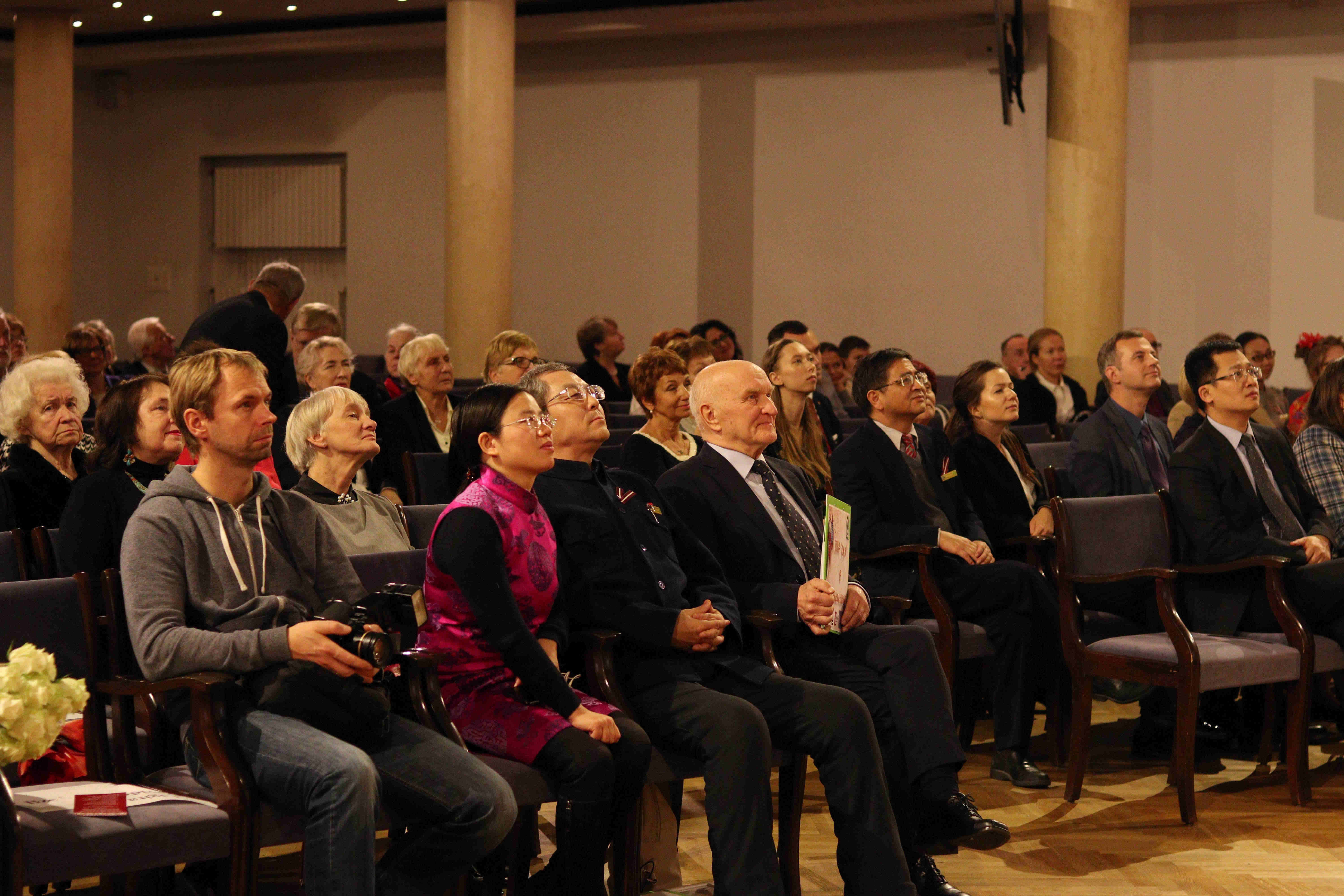 The celebration of Director of Confucius Institute at University of Latvia (professor Pēteris Pildegovičs)’s 80th birthday and the release of electronic version of Chinese-Latvian Dictionary / Latvian-Chinese & Chinese-Latvian Dictionary was held in the Grand Auditorium of University of Latvia. More than 160 people including guests and friends from Chinese Embassy, Foreign Ministry of Latvia, Education Ministry of Latvia, China Culture Center in Latvia, Xinhua News Agency, University of Latvia, Confucius Institute at University of Latvia, Confucius Institute at Tallinn University, South China Normal University, Faculty of Humanities of University of Latvia, Riga No. 34 Secondary School, Confucius Class at Daugavpils University, Ventspils University of Applied Sciences, Riga Technical University, Jelgava Spidola State Gymnasium, Kraslava State Gymnasium, Transport and Telecommunication Institute, Jaunmarupe Primary School, China Alumni Association of Latvia attended the event. In addition, Confucius Institute Headquarters/Hanban, Commercial Press, South China Normal University, and Confucius Institute at Tallinn University also sent congratulatory letters.
