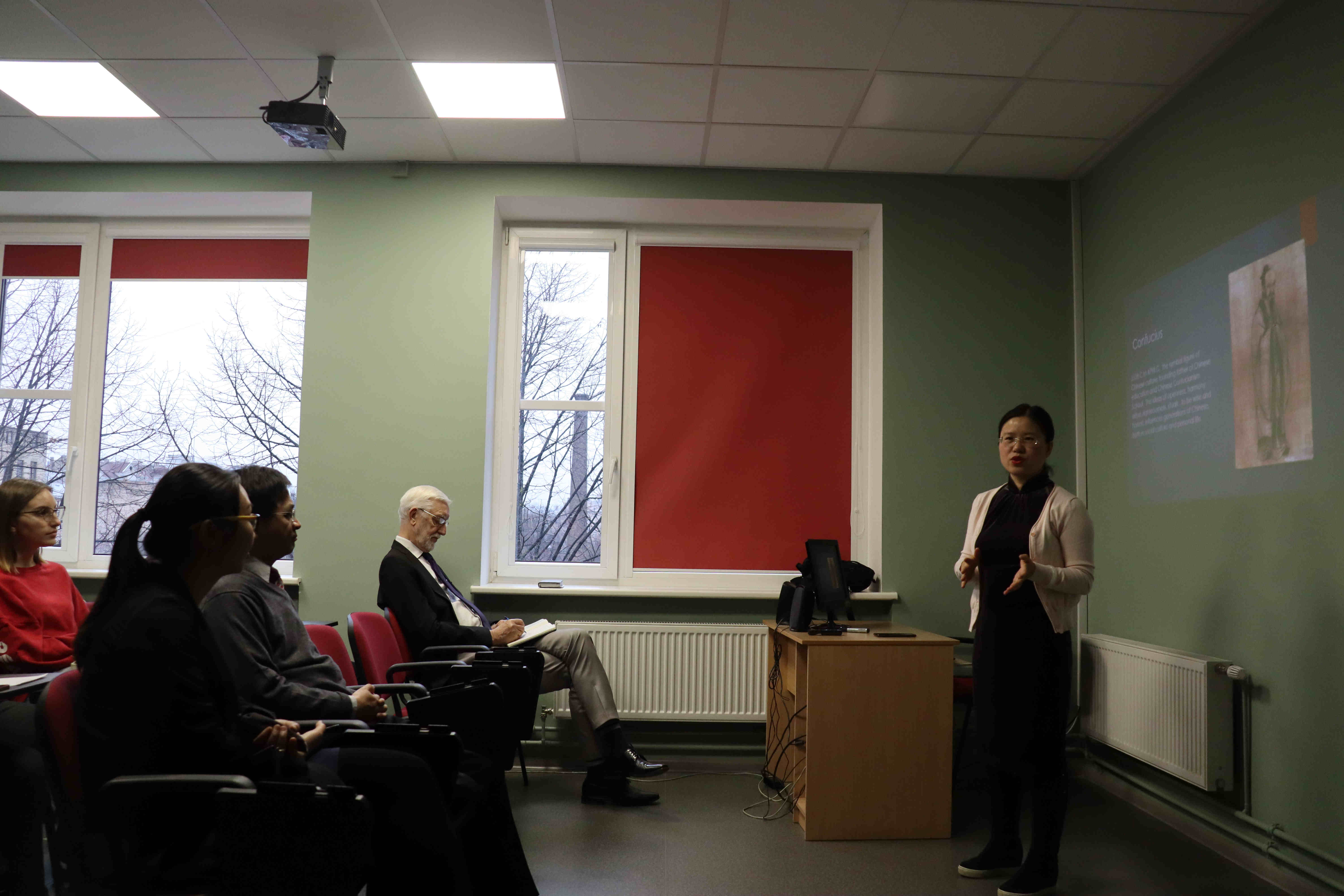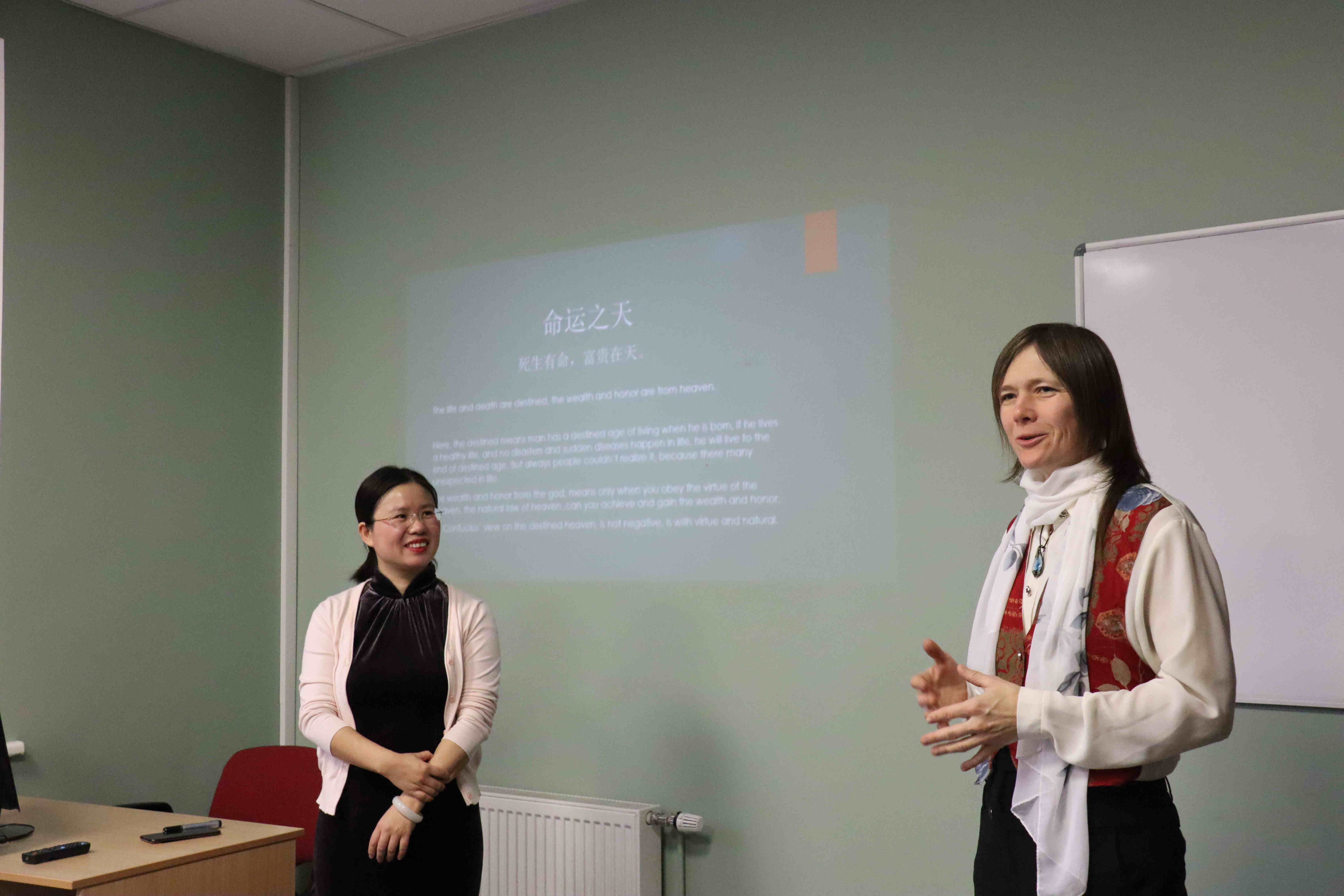 当地时间11月23日,塔林大学孔子学院中方院长朱璐博士到访拉脱维亚大学孔子学院,以“孔子如何看待神”为题展开讲座。参加本次讲座的人员还有拉脱维亚大学人文学院亚洲系中文专业教师鲍葛薇副教授、拉脱维亚大学人文学院Leons Taivans教授,华南师范大学国际文化学院王葆华教授,汉语教师王琼子以及汉语教师志愿者、中文专业学生等。