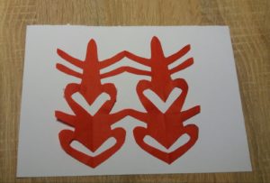 待大家对剪纸有了全面的认识后,教师便开始教大家如何剪纸,从简单的囍字到团花剪纸四折再到团花剪纸六折,学生们学得非常认真,最后都小心翼翼地把自己剪好的作品贴到了白纸上。