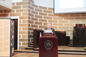 The first part of the conference was entitled “The Historical Characteristics of the Epoch”, five speakers gave their speeches. The first speaker was Dr.Māris Baltiņš, director of the state language centre. who explained Prof.Šmits’s contribution to the development of the university of Latvia. Then, Dr. Ēriks Jēkabsons, professor of the department of history and philosophy of the university of Latvia, and Dr. Uldis Krēsliņš, researcher of the institute of latvian history at the university of Latvia, introduced Prof.Šmits and the social political efforts of latvians in siberia and the far east during 1918-1920. Dr. Tālis Pumpuriņš, historian of Cēsis history and art museum, and Dr.Kaspars Kļaviņš, leading researcher of the faculty of humanities of the university of Latvia, promoted the contribution of Pēteris Šmits in popularizing latvian patriotism during World War I and the method of analogy by Pēteris Šmits in the interpretation of culture and its topicality in contemporary intercultural relations.