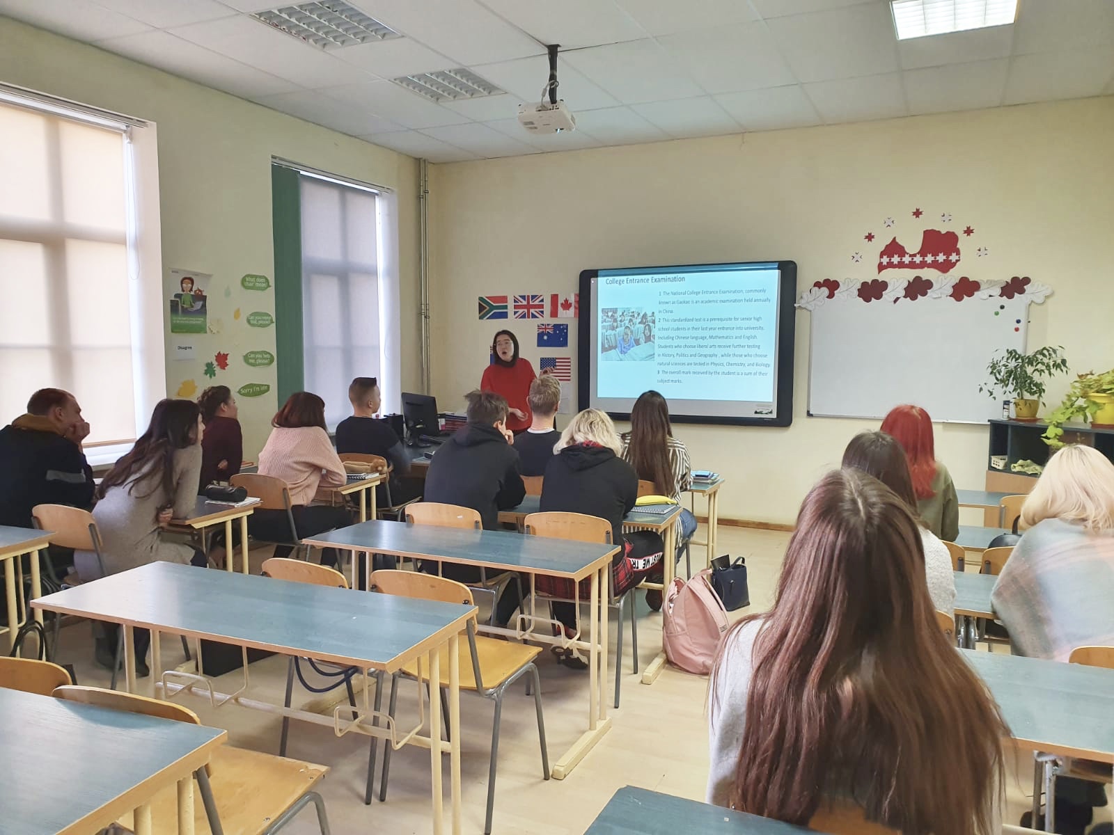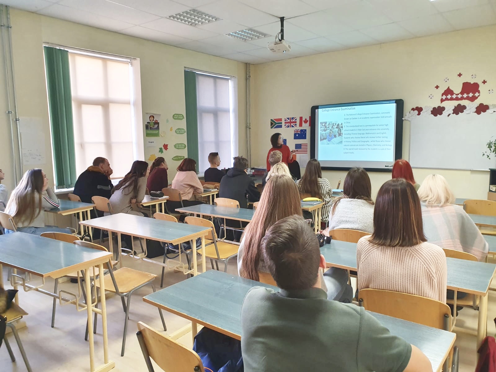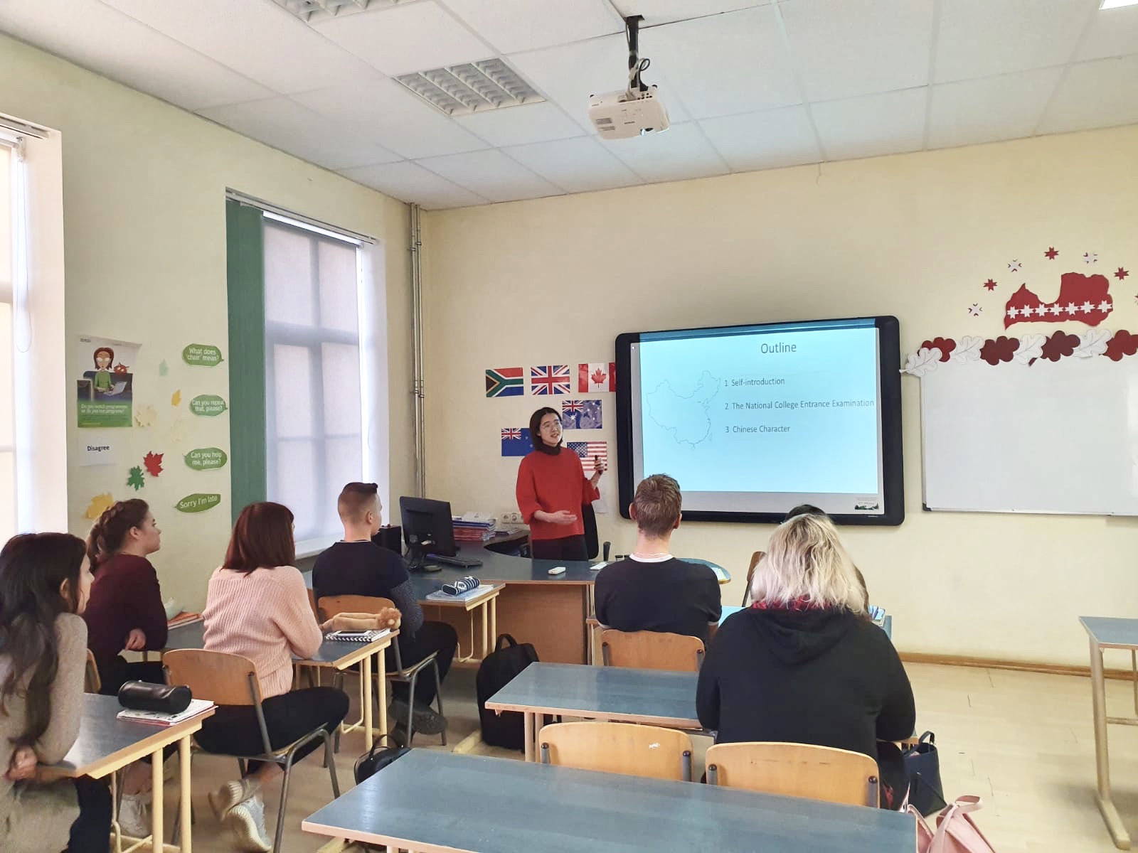当地时间11月22日上午9点40分,道加瓦皮尔斯大学孔子课堂汉语教师王璐来到道加瓦皮尔斯第三中学开展了主题为“中国高考现状”的公开课。