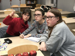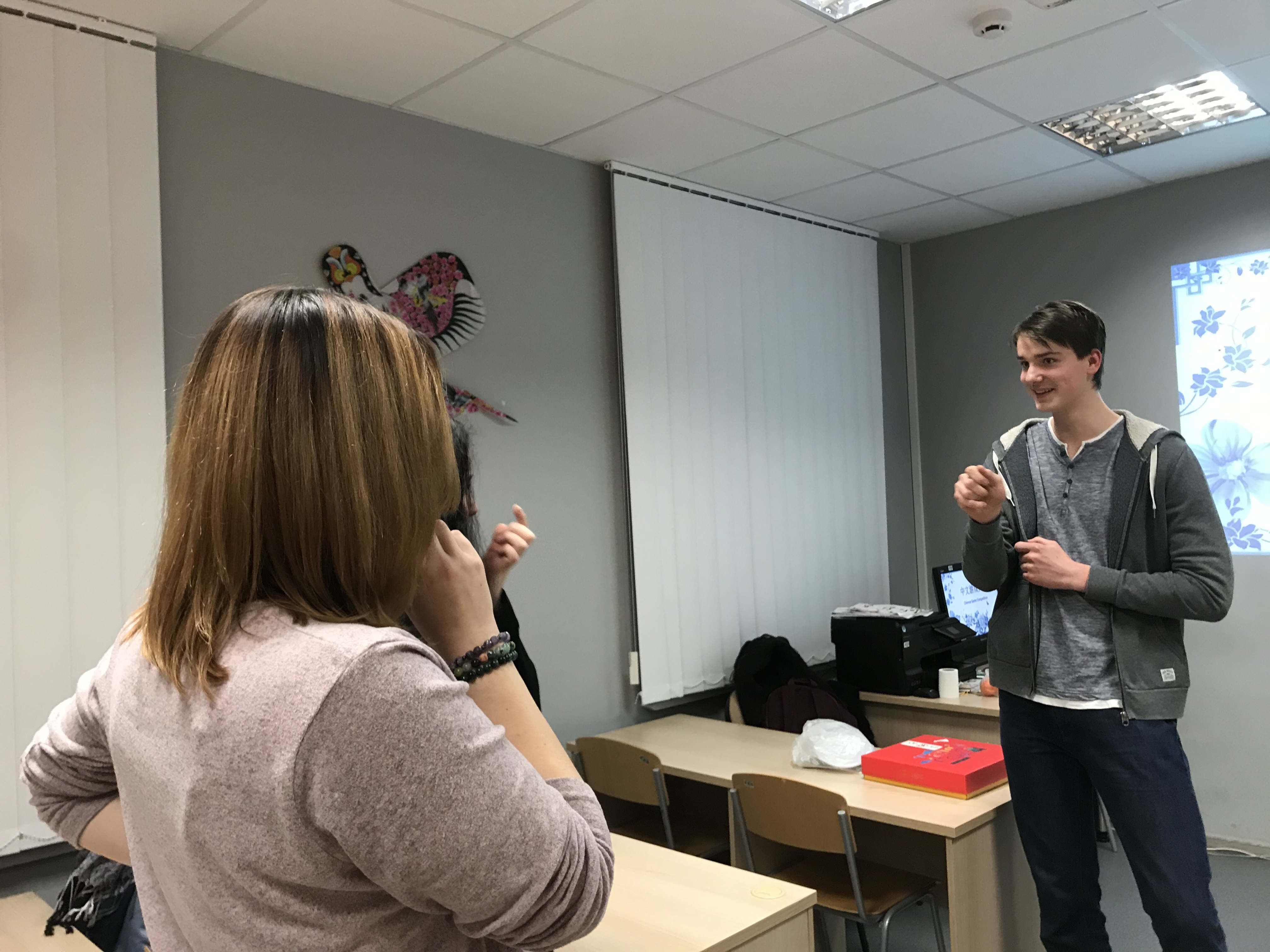 汉语教师志愿者邹亚平将此次中文游戏大赛设计成两大板块,第一大板块是“动脑游戏”,第二大板块是“动手游戏”。在比赛正式开始之前,学生们通过击鼓传花的方式选出组长并决定了分组,紧接着,比赛正式开始了。“动脑游戏”共分为“汉语快乐传递”、“汉字对对碰”、“中华文化知多少”及“你比划我猜”四个环节,通过传递汉语词句、拼写汉字、竞答中华文化知识题、表演猜词等有趣的方式,让学生们在轻松欢乐的氛围中复习学过的汉语知识、学习新的汉语知识。第二大板块“动手游戏”则是通过一系列经典的趣味游戏让学生们体验中国人“儿时的记忆”——“夹豆子”、“颠乒乓球”、“踢毽子”、“叠报纸”,各小组组员们通力合作,玩的不亦乐乎。最后,获胜的队伍获得了漂亮的中国剪纸作为奖品。恰逢圣诞节将至,在课堂的最后,老师为每位学生送上了拥有“平安”和“吉利”美好寓意的苹果和橘子,并献上了圣诞祝福,学生们非常开心,并表示十分期待未来的汉语课程。