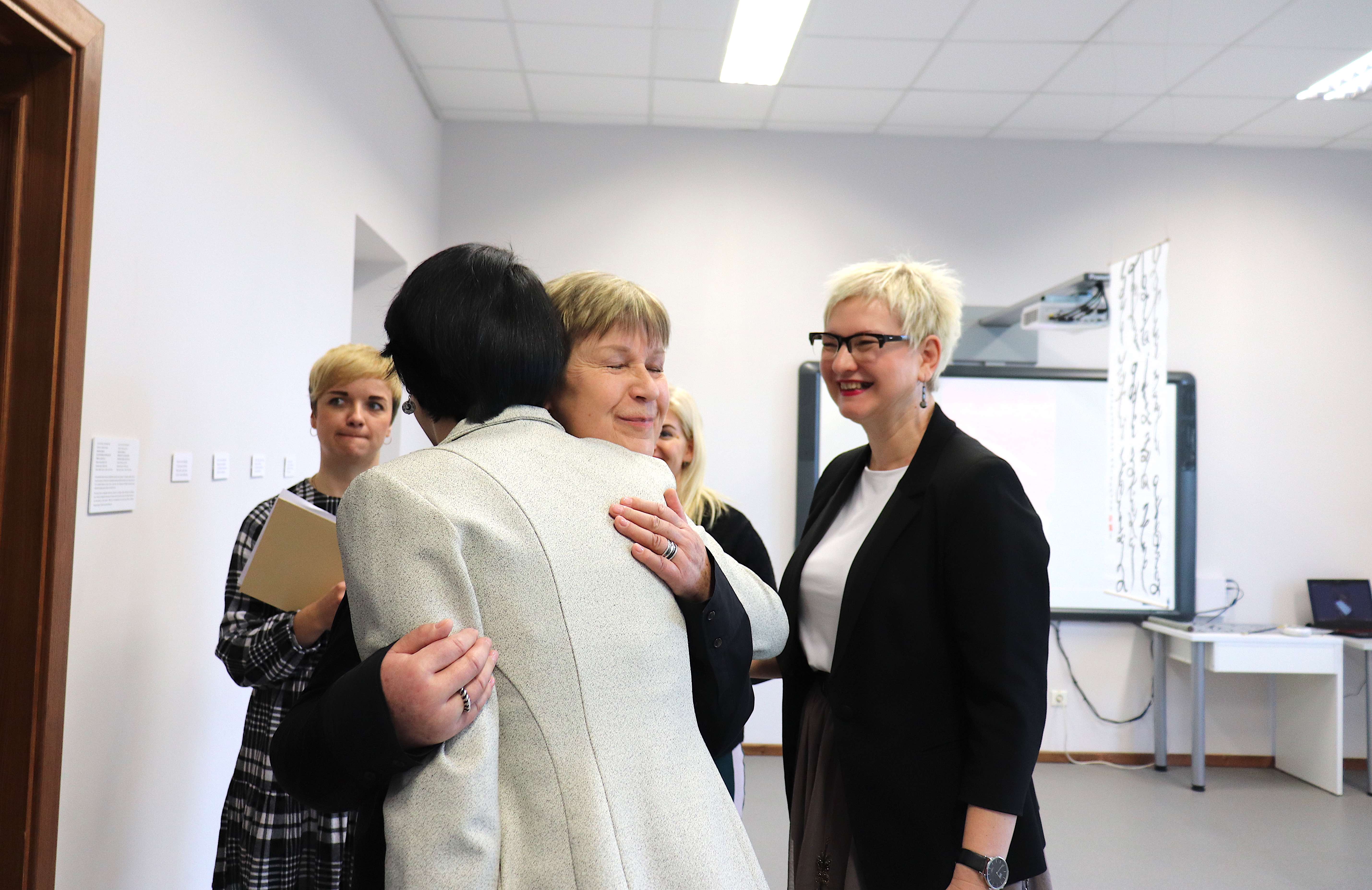 当地时间1月17日上午11时,白凯夏(Jekaterina Belajeva)“道加瓦河的抽象书法”毕业展在道加瓦皮尔斯大学举行。来自道加瓦皮尔斯大学音乐艺术学院的院长及部分师生和两位汉语教师参加了本次展览。