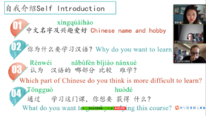Before starting the class officially, teachers and students asked questions to know each other. After that, the Chinese teacher used games and other methods to make a simple review of the students’ knowledge, which includes vocabulary, grammar, phonetics, and Chinese characters. It is worth mentioning that the teacher has adopted the method of summarizing to review and expand the vocabulary of students. This method was approbated by students, and they thought it was interesting and useful.