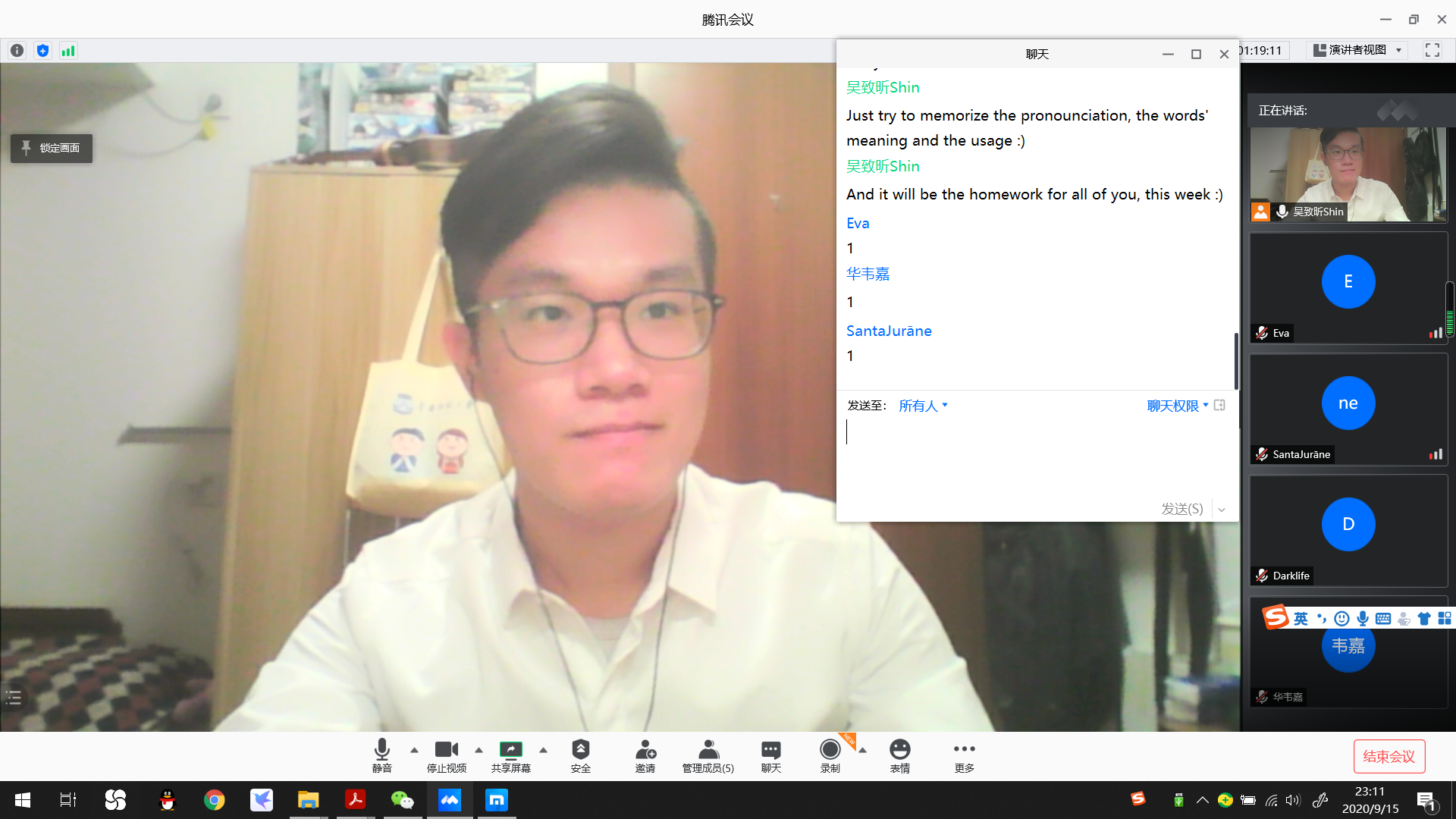 克拉斯拉瓦中学的汉语网课课程,采用腾讯会议平台进行授课。身处国内的汉语教师,只需在预定会议后,将会议ID发送给在海外使用VOOV Meeting(腾讯会议国际版)的学生们,即可开展网上教学。