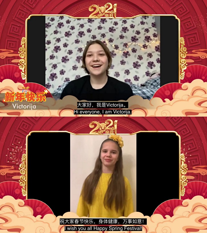 除此之外,里加64中学的学生还特别积极学习新年祝福语,录制拉脱维亚线上春晚祝福视频,在一声声祝福中,我们迎来了美好的新年。