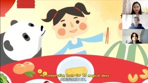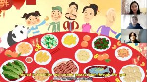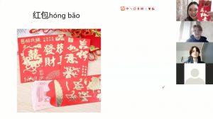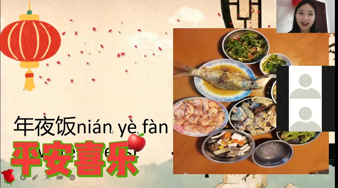 受疫情影响,此次“春节”主题的文化课采用的是线上教学的方式。尽管远隔万里,但是得益于各种远程教学资源,屏幕前的师生依然能够感受到浓浓的“年味”。