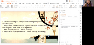 最后,同学们一起观看了老师制作的视频,共同回顾了汉语课堂上的精彩片段。同学们纷纷表示,这是一段很特别也很难忘的学习时光,感谢老师的教导和付出,自己将来会坚持学习汉语,提升汉语水平,更深入地了解中国文化。