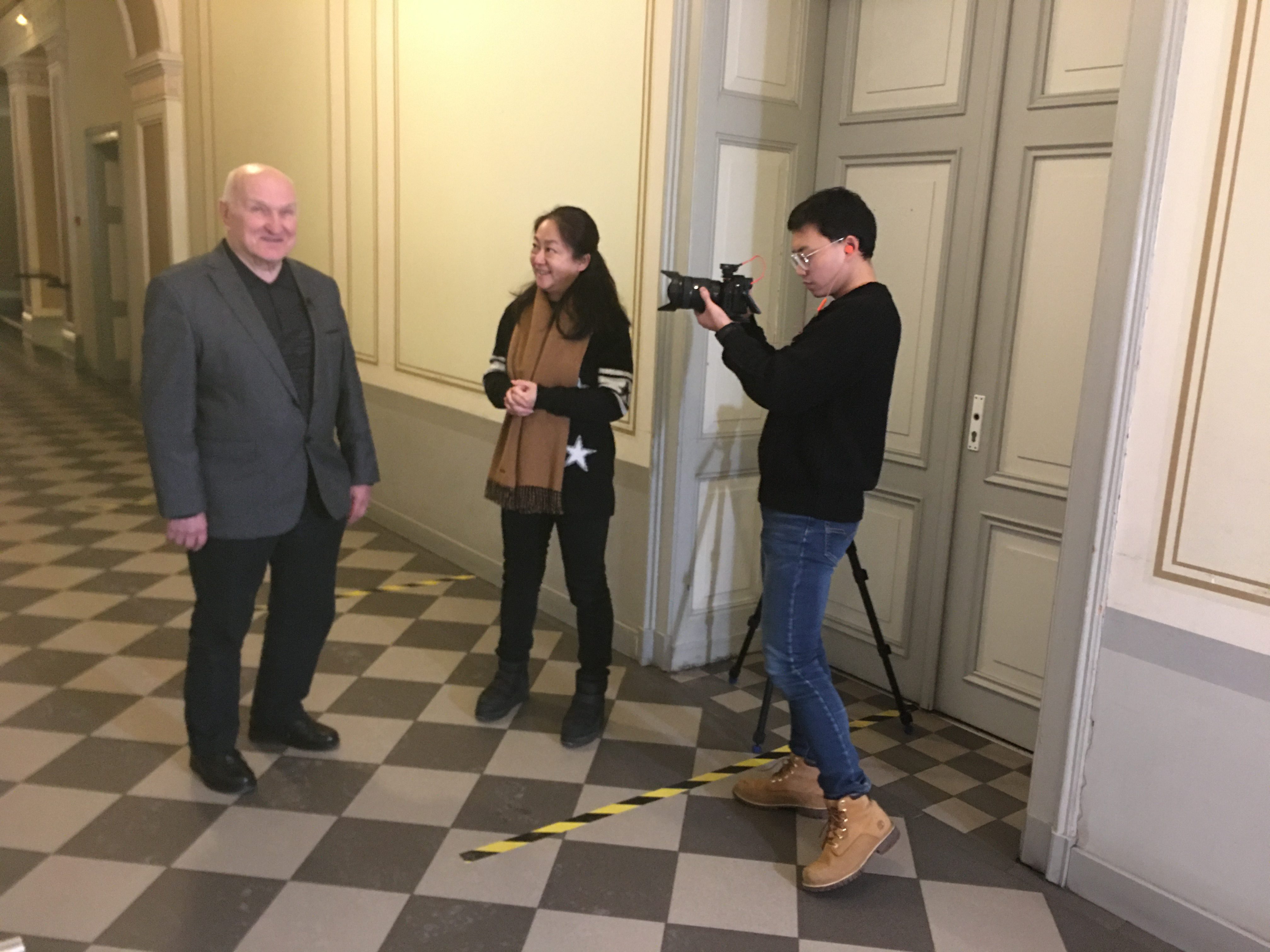 On December 10, 2021, the CCTV video camera crew visited Confucius Institute at University of Latvia and gave an exclusive interview with Professor Pildegovics. Professor Pildegovics talked about the original meaning of the word “Nian”, “Sweeping Dust”, the structure and connotation of the traditional Chinese word “Ritual”, custom of sacrifice to the Kitchen God, ringing out the Old Year and ringing in the New Year, the relationship between the beginning of spring and the Spring Festival, the social functions of worshiping gods and ancestors during the Spring Festival, traditions of eating fish at New Year’s Eve dinners in various places, Spring Festival travel rush, overseas Chinese looking for their roots,etc. Besides, with his own personal experience of spending the Spring Festival five times in China, he interpreted the taste of the Chinese New Year.