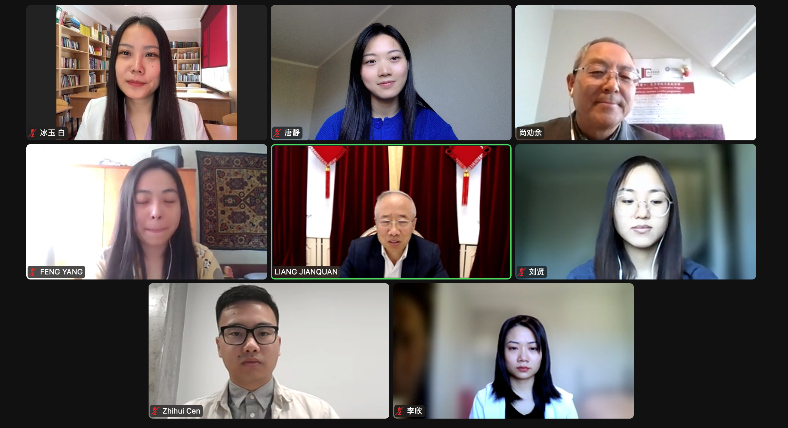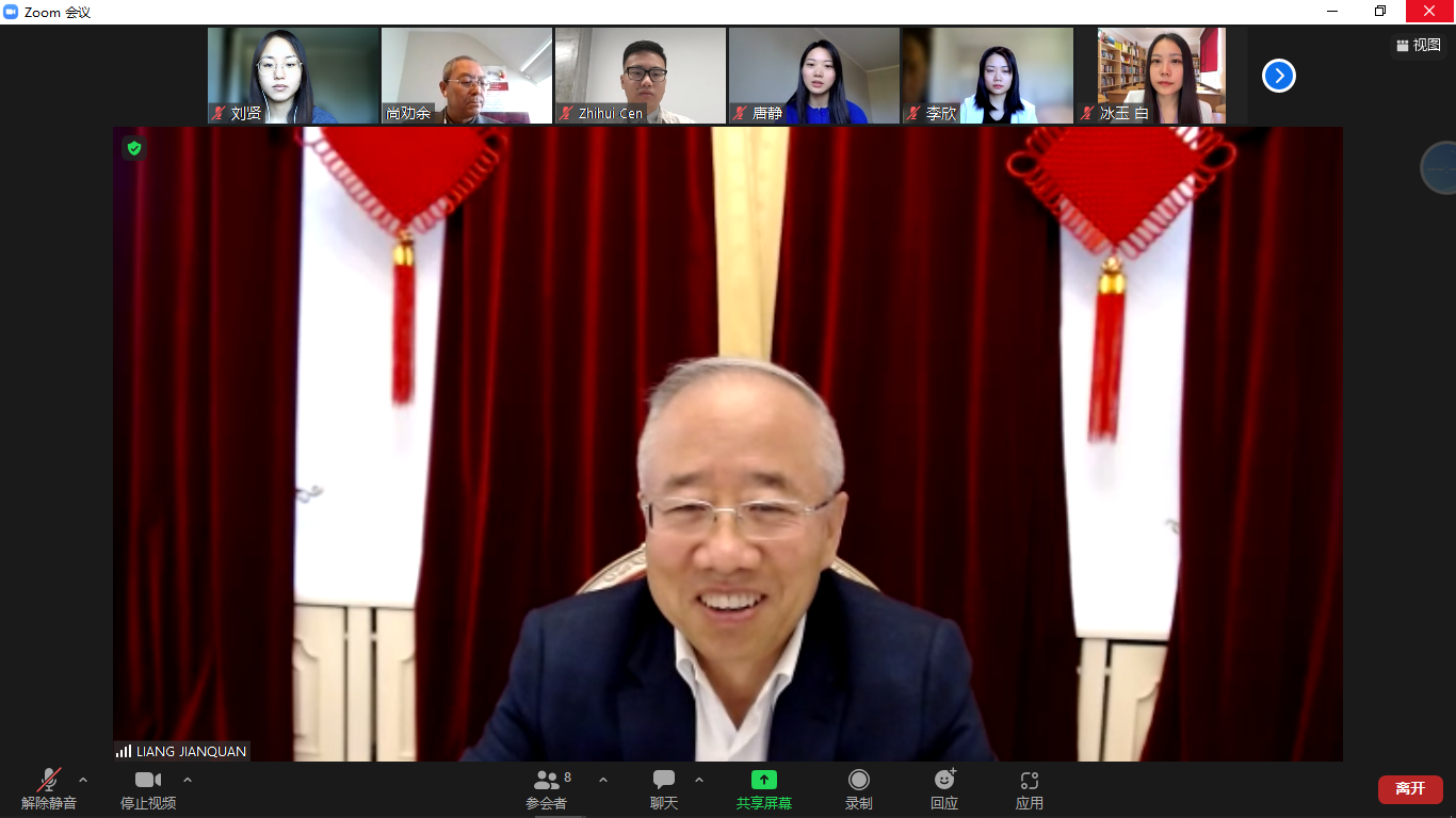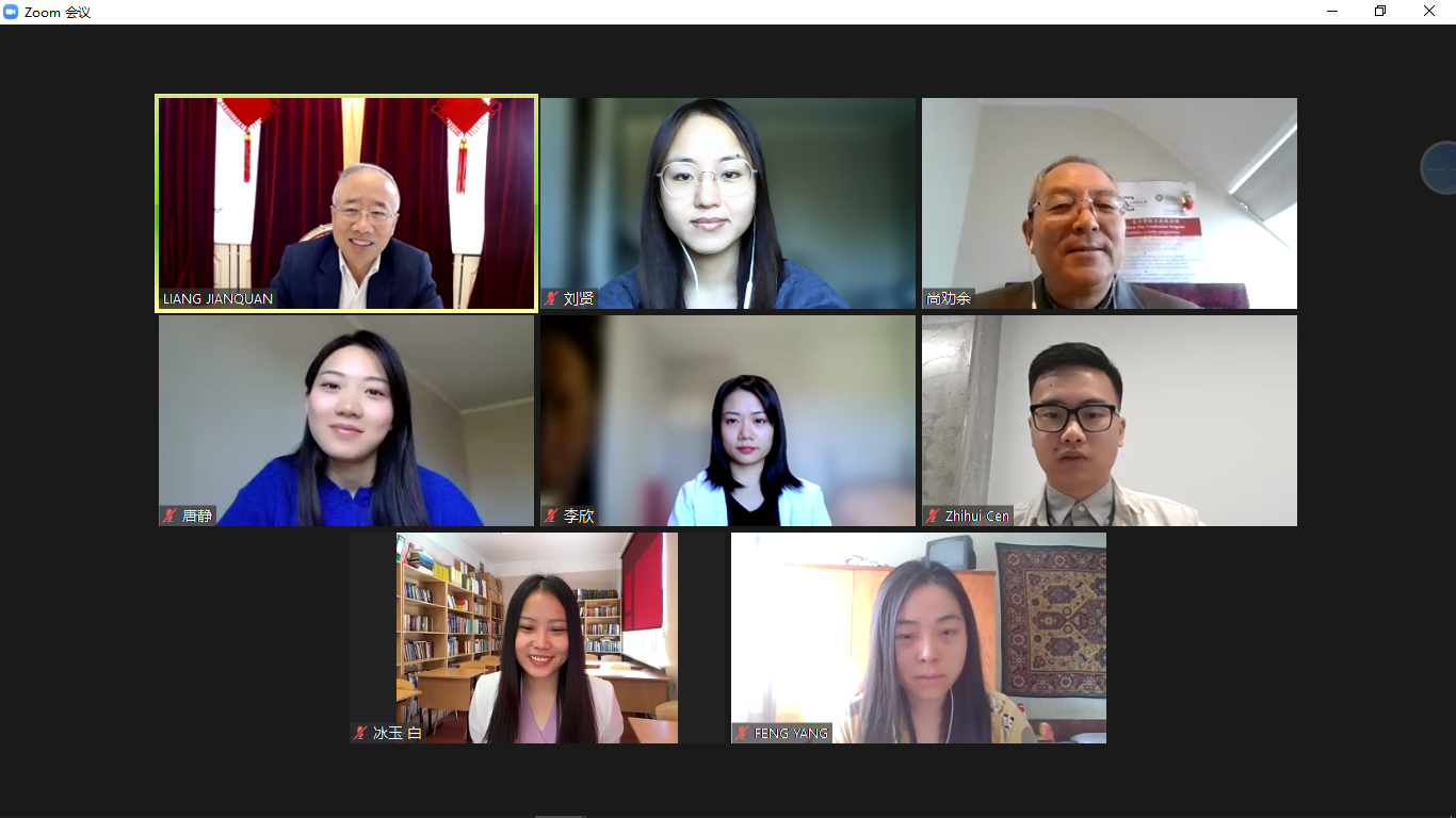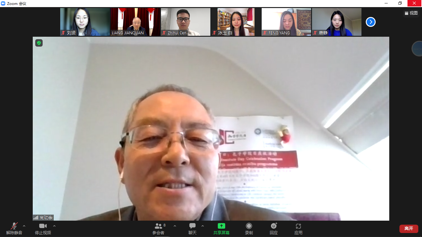 拉脱维亚时间2022年9月8日10:00-11:00,拉脱维亚中秋节-教师节座谈会在Zoom云端顺利召开,与会人员有中国驻拉脱维亚大使馆梁建全大使,孔子学院院长尚劝余,公派教师白冰玉,汉语志愿者教师李欣、唐静、刘贤,留学生代表杨凤、岑智辉等。