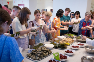 随后的互动环节中,参与者有机会亲自体验包粽子、品茶艺、学习中国结和中国画。大家积极参与,相互交流与学习,深入了解了中国传统手工艺和文化技艺的精髓。