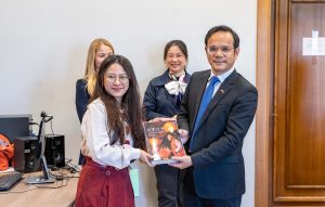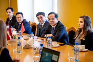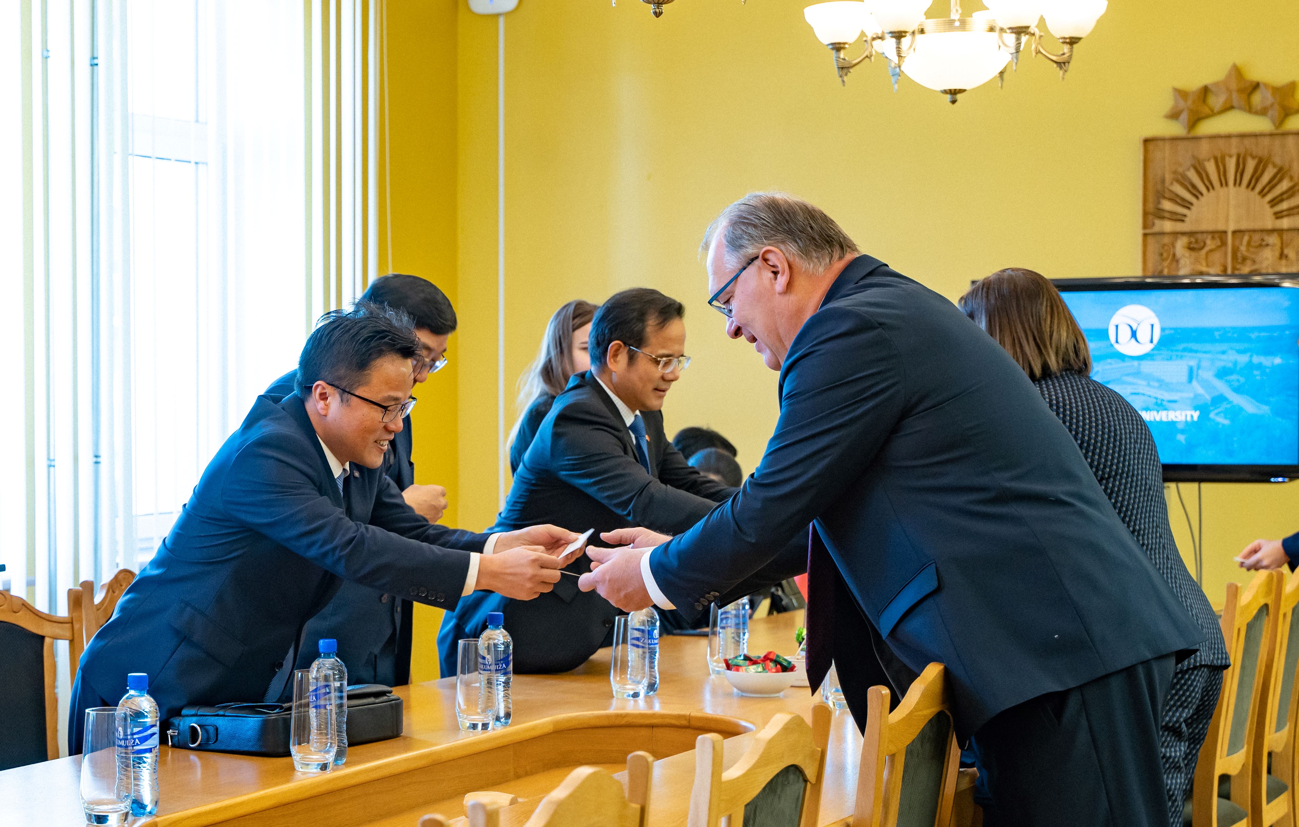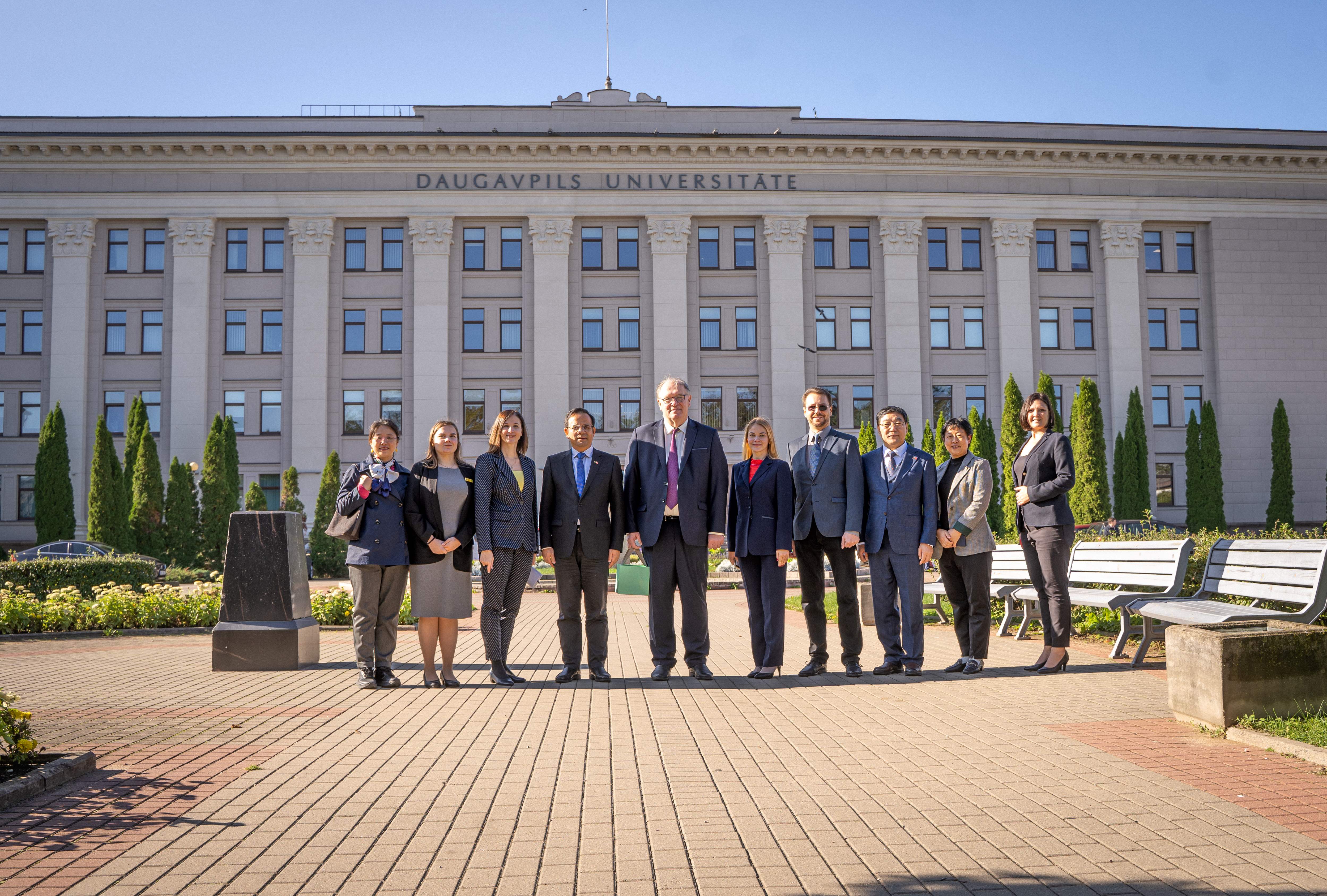 At 10:00 am on October 6, 2023, Ambassador Tang Songgen of the Chinese Embassy in Latvia, together with his wife Ms. Wang Qian, Mr. Wang Yuejin, Director of the Economic and Commercial Office of the Chinese Embassy, Mr. Hou Tete, Secretary, and Mr. He Dong, Director of the Confucius Institute at the University of Latvia and Mrs. Tao Liping, the Director’s wife, and Secretary Anna visited Daugavapils University together.