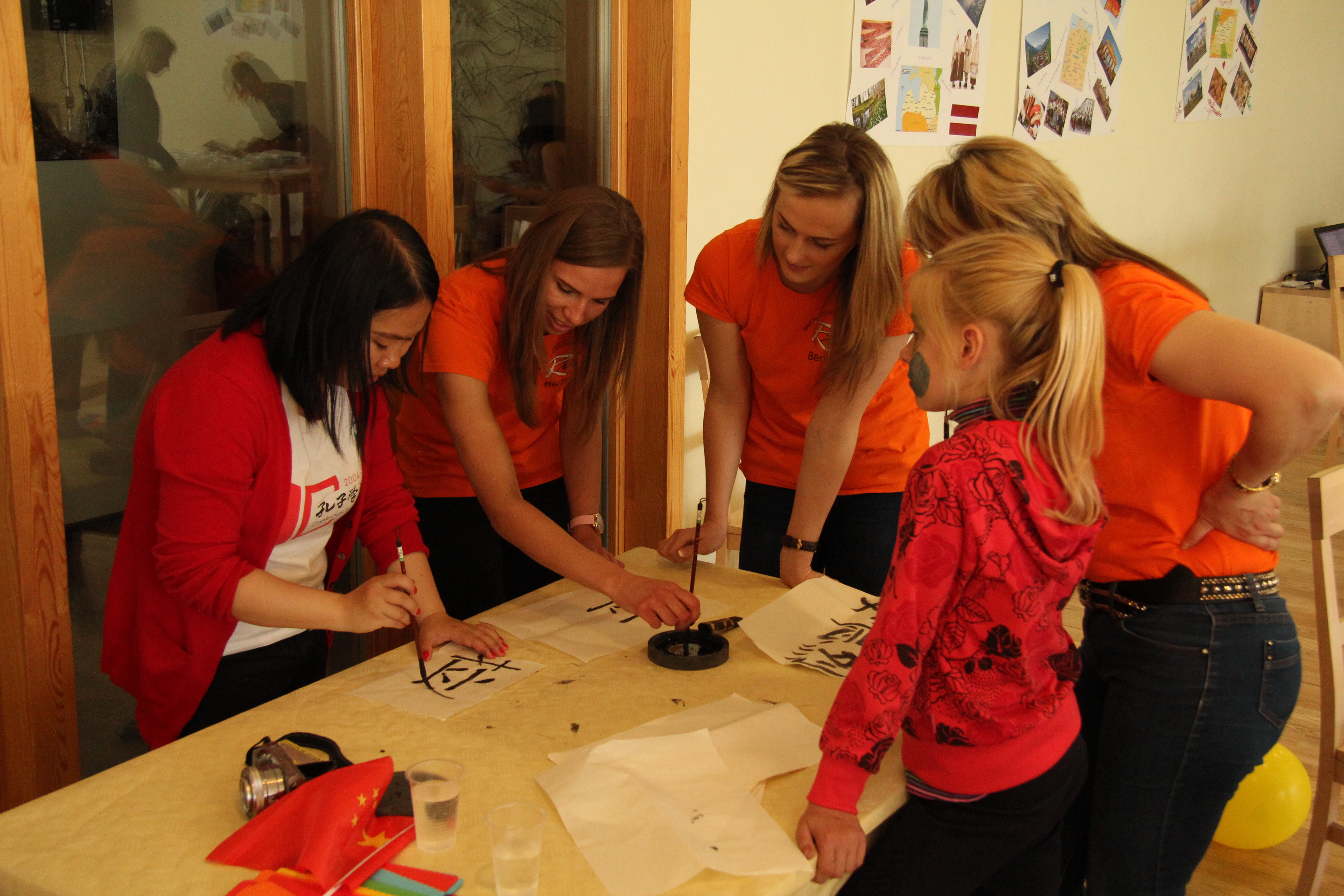 May 24, 2015, 13:00 o’clock, Tukums International Cultural Day was held in Tukuma Ledus Halle conference hall. This event was organized by Pozitiva Doma Brivpratigie and funded by Erasmus program. Chinese teacher of Confucius Institute at the University of Latvia was invited to participate, and preside over one of the activities—Chinese calligraphy experience corner. This is the first Chinese cultural activity in the city, which represents the widening and deepening of promotion of Chinese culture in different cities in Latvia, so that five thousand years of Chinese civilization are known by more and more people in this country. Local media also carried a report on this event.