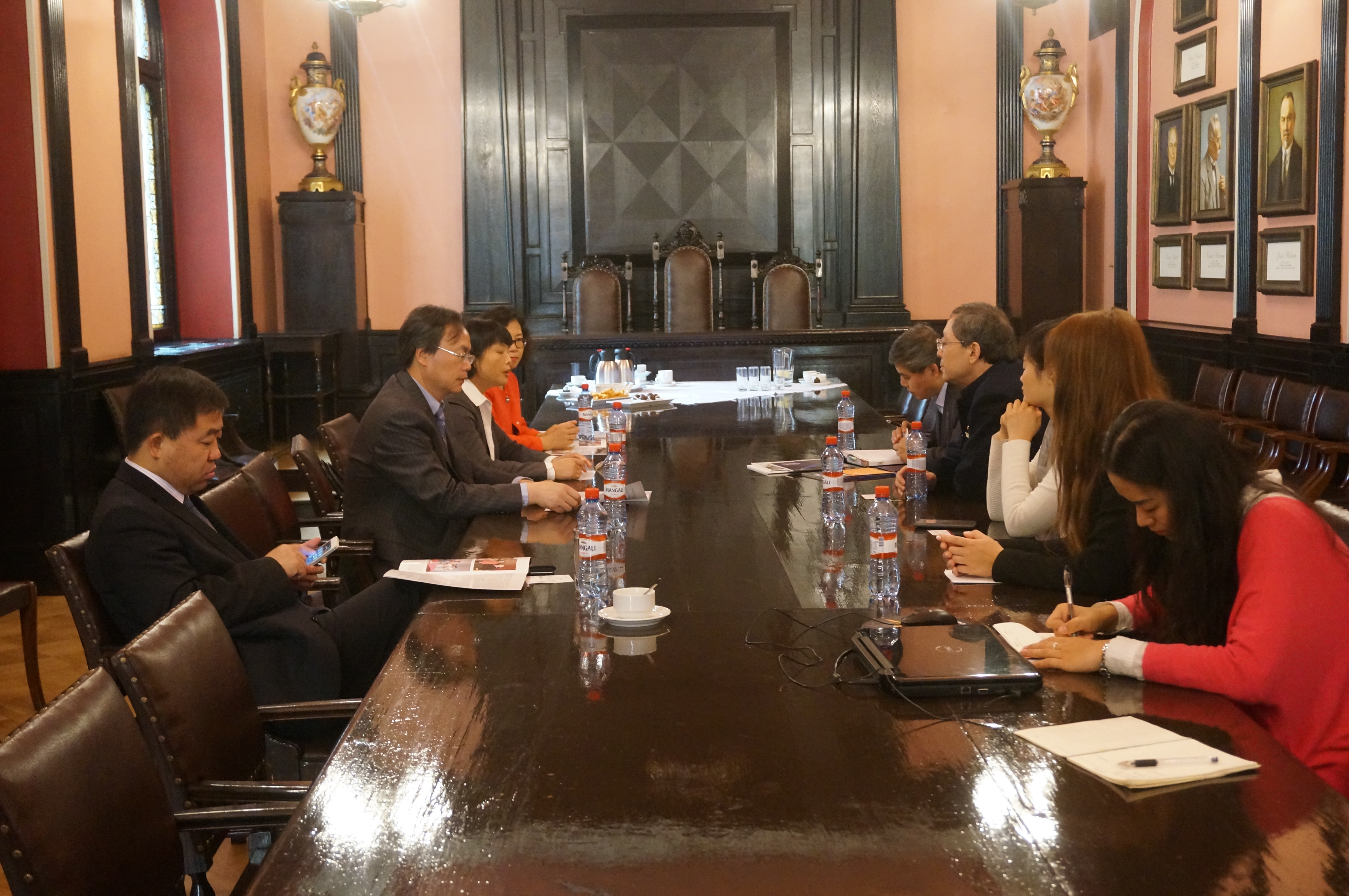 During the meeting, Mrs.Yao first introduced the Chinese programs and subject advantages in Shanghai University of Finance and Economics, also she sincerely invited students in Latvia to visit and study in their university. Then, Professor Shang Quanyu made a brief introduction of Confucius Institute at Latvia University. Later, the two parties had a discussion on several topics, such as how to better cooperate with local university and embassy, how to get maximum support from Hanban, and so on. In the discussion, Mr. Zeng Fuhua analyzed the reasons of success of Chinese teaching in Latvia from embassy angle. And all the teachers have shared their opinions in the view of institute, students, teacher selection and teaching management. Although the meeting was only two hours, they reached some common senses that in order to develop Chinese program, it’s very possible to cultivate more local Chinese teachers. Meanwhile, the great function of Hanban and embassy