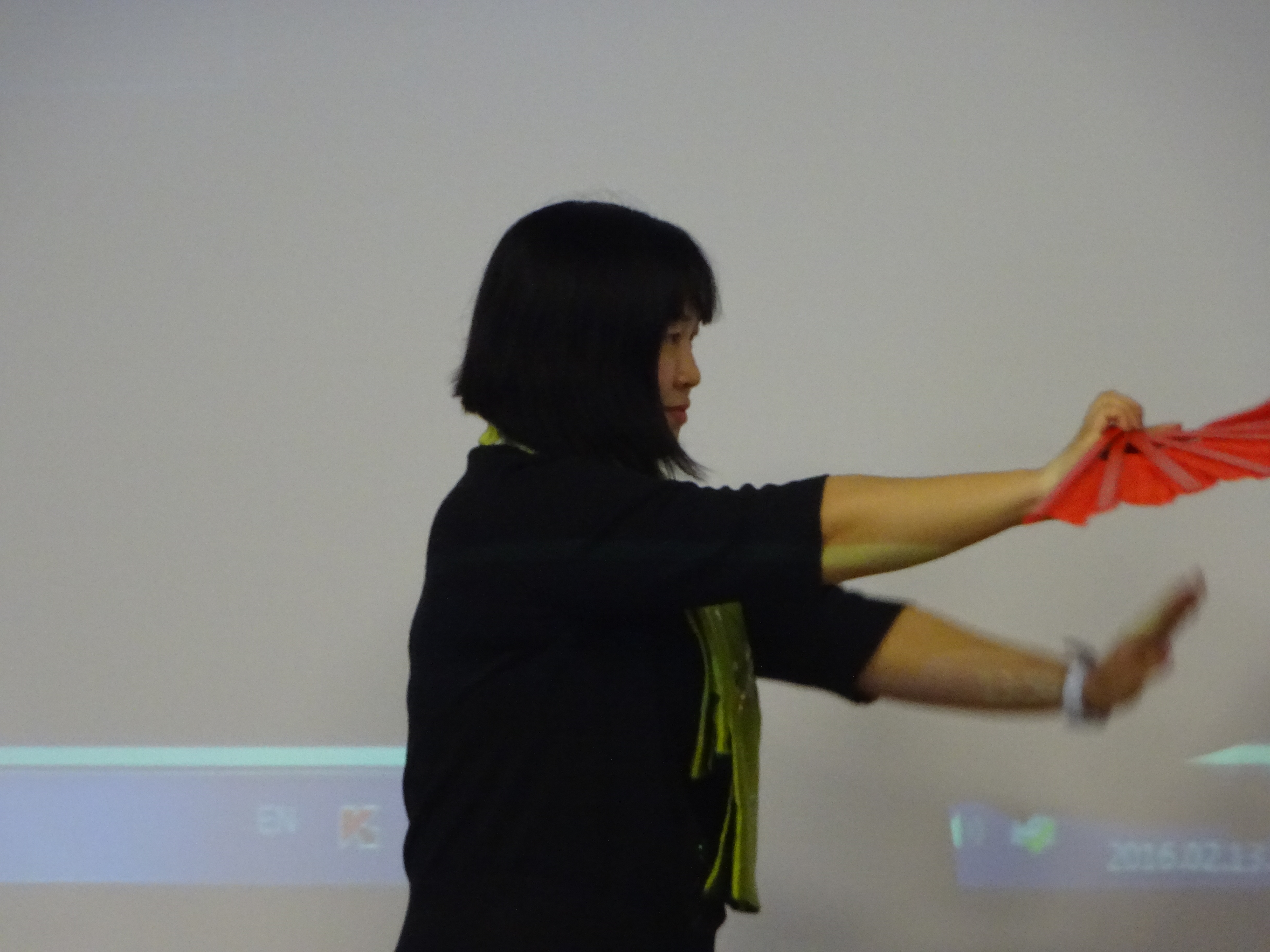 随后汉语教师倪艺榕现场为同学们展示了一段太极扇,并介绍了孔子学院的相关情况。