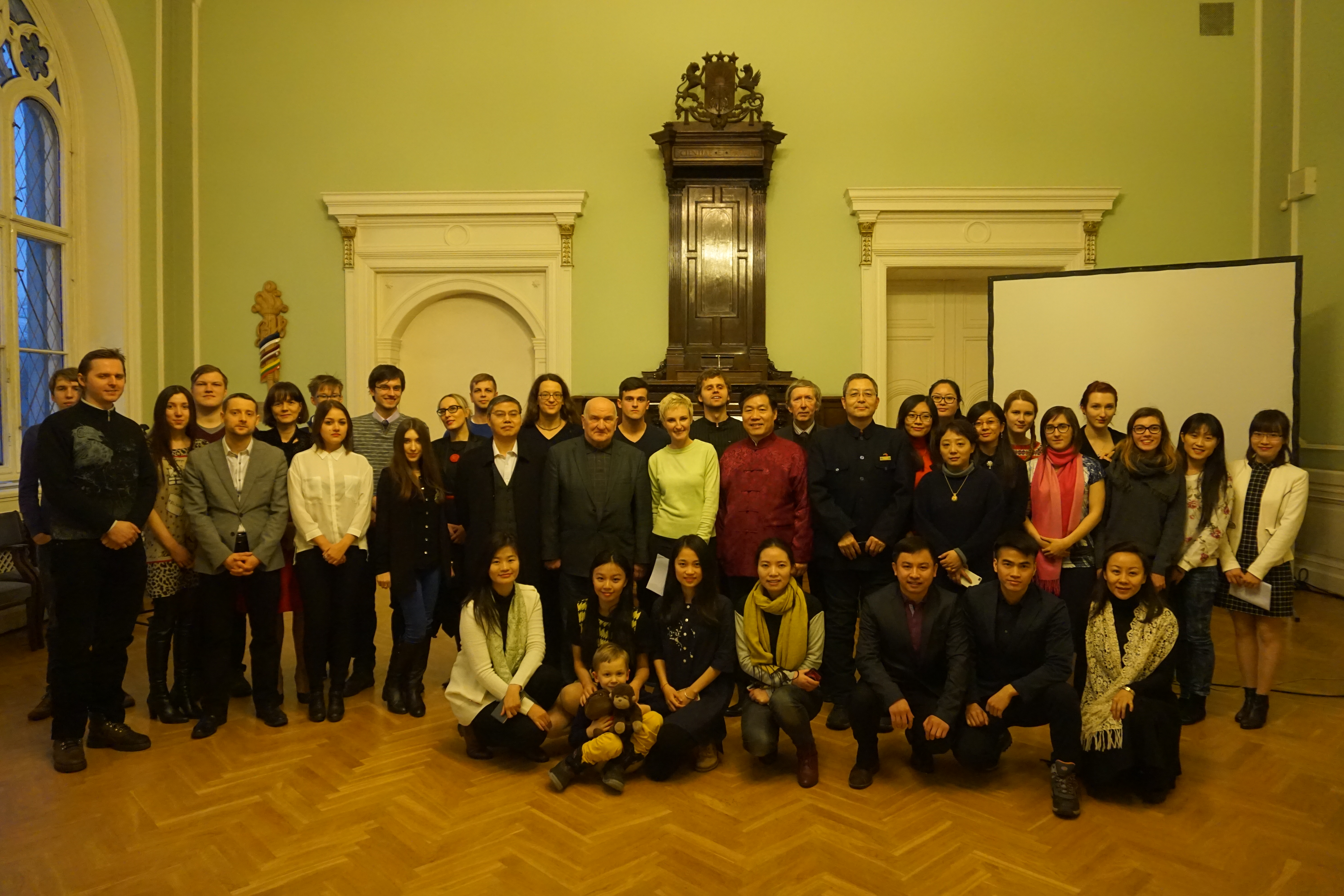 中国驻拉脱维亚大使馆李涛参赞、中国大使馆曾伏华领事、拉大孔院外方院长贝德高教授、拉大孔院中方院长尚劝余教授、拉脱维亚代表LEON先生以及拉脱维亚大学孔子学院各教学点师生代表出席了本次讲座。