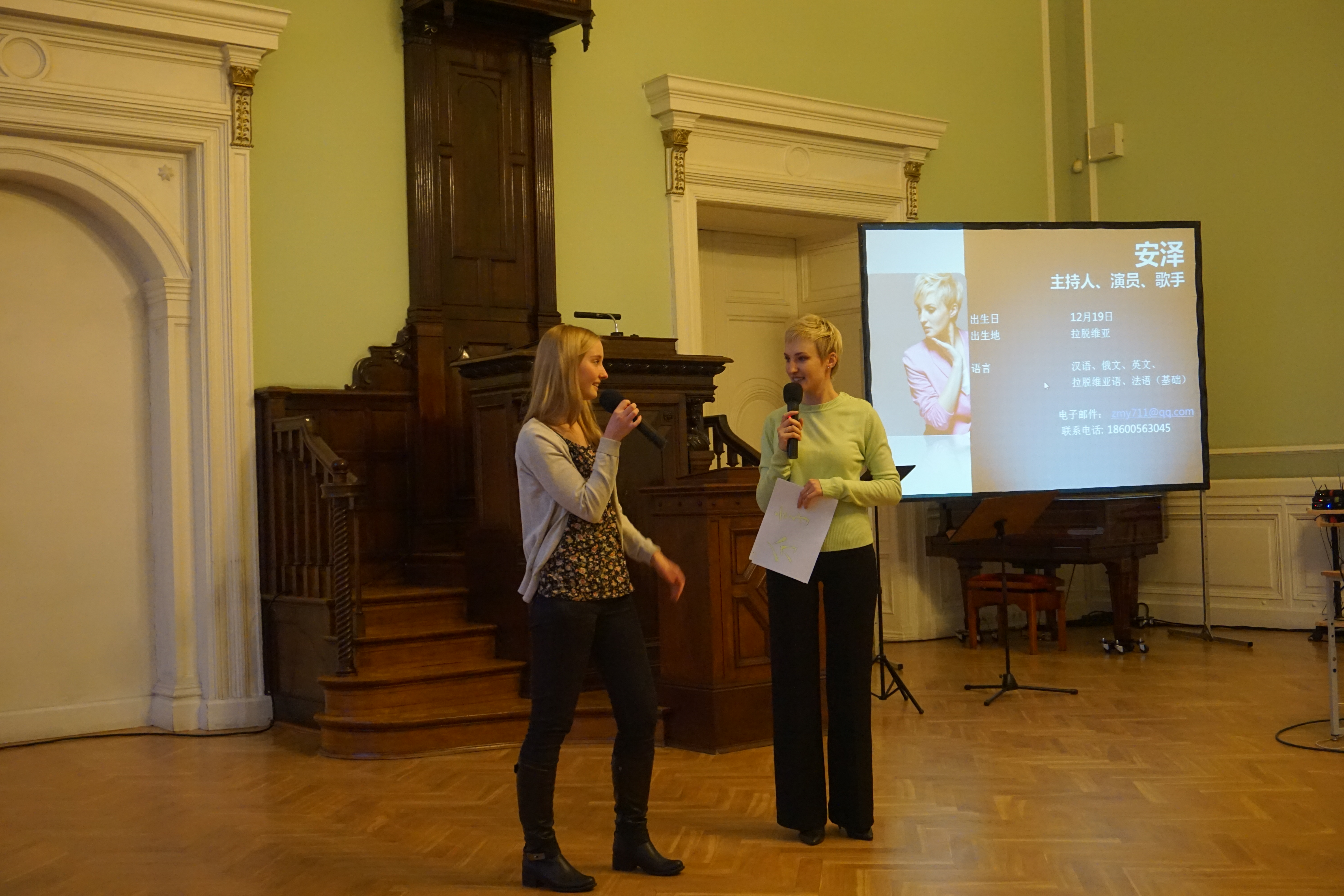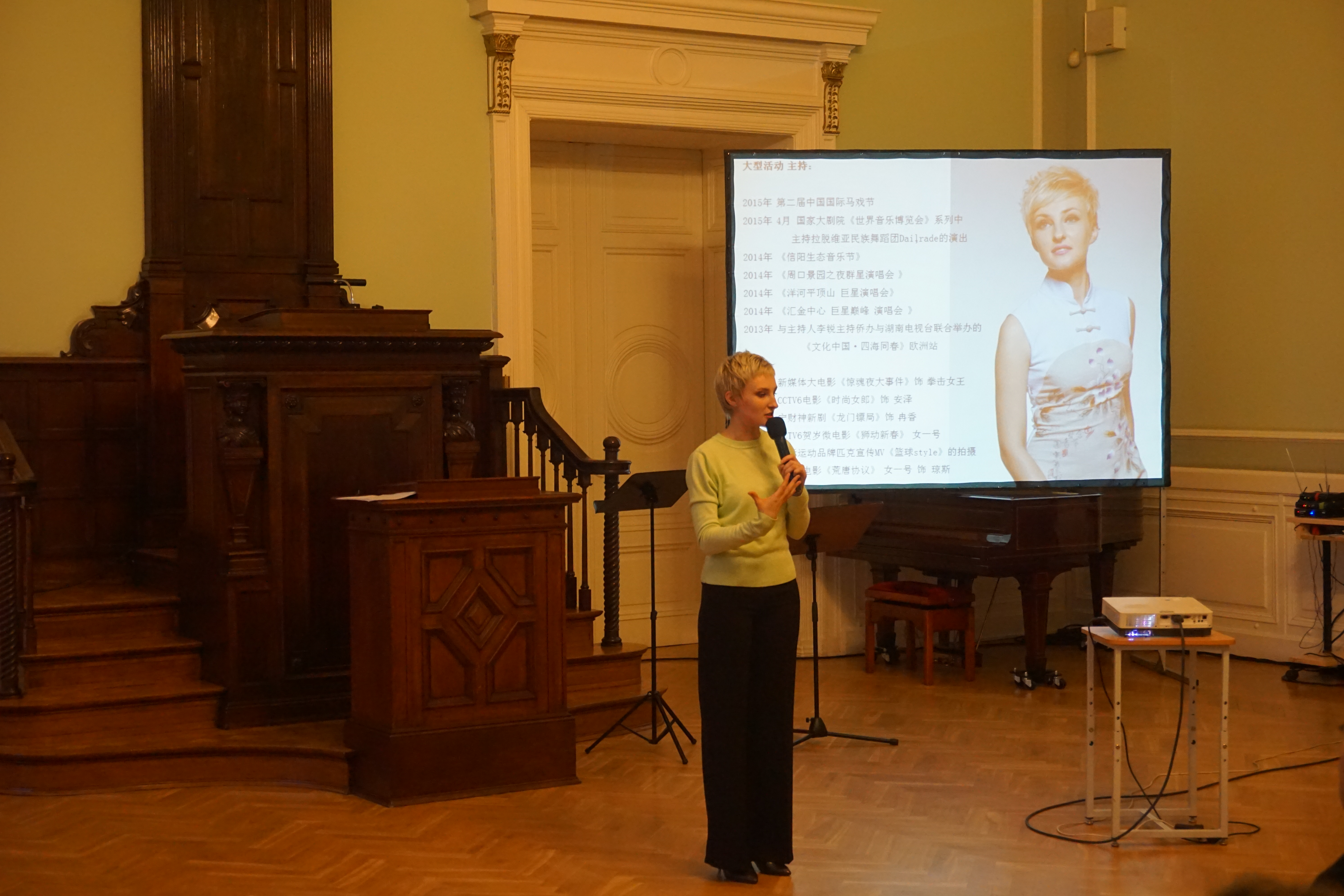 讲座的主讲人安泽是来自拉脱维亚的东北媳妇儿,她与汉语结缘已十年有余,从好奇到热爱,再到融入其中,汉语已成为安泽生命中不可割舍的一部分。《我与中国的故事》,开始于著名的汉语比赛——汉语桥,它成为了安泽人生的重要转折点,为她开启了一扇新世界的大门。讲座伊始,安泽详细介绍了她参加汉语桥的过程,为大家总结出了比赛的小窍门,并鼓励在场孔子学院的学生们积极参与这一有趣又充满挑战的赛事。准备参加汉语桥比赛的学生向安泽提出了不少问题,安泽都耐心地一一解答。接下来,安泽与大家分享了她在中国的所见所闻,还播放了2015年她参加天津卫视春晚的小视频,换来了在场来宾的一片欢声笑语。最后,安泽用一曲动人的中国音乐为本次讲座画上了圆满的句号。