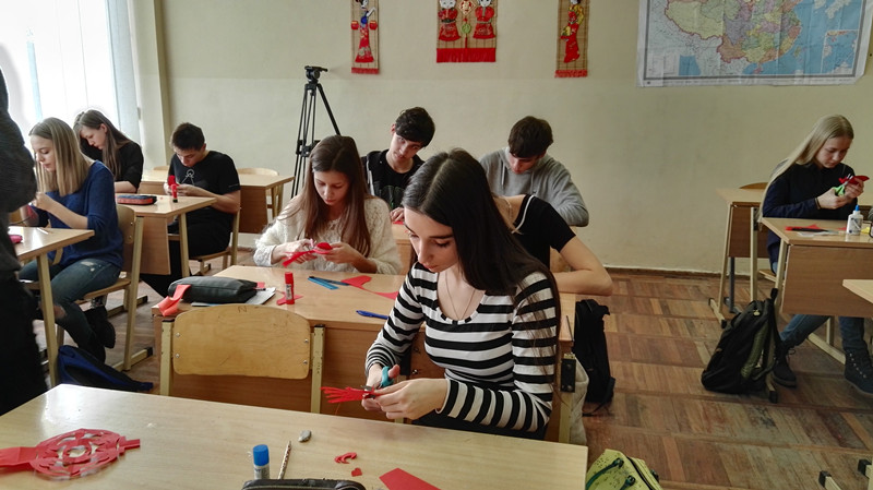 活动在拉脱维亚汉语老师艾薇塔对元宵节习俗的介绍下拉开了帷幕。艾薇塔老师用拉语为学生生动又详细地介绍了元宵节的时间、意义以及各式欢乐的庆祝活动;学生们听得津津有味。元宵节怎么能少了火红的灯笼呢?接下来,汉语教师志愿者和大家一起动手制作了传统喜庆的大灯笼,不久,教室里红红火火,热热闹闹,尽是节日的喜庆。俗话说得好,闹元宵闹元宵,当然要越热闹越好。哪里有比小游戏更能产生欢乐气氛的呢?“传元宵”这个小游戏激起了热烈的气氛,将元宵好好地“闹”了一把。活动最后,学校餐厅给大家送上了汉语志愿教师亲手制作的传统美食——元宵,为活动画上了圆满的句号。