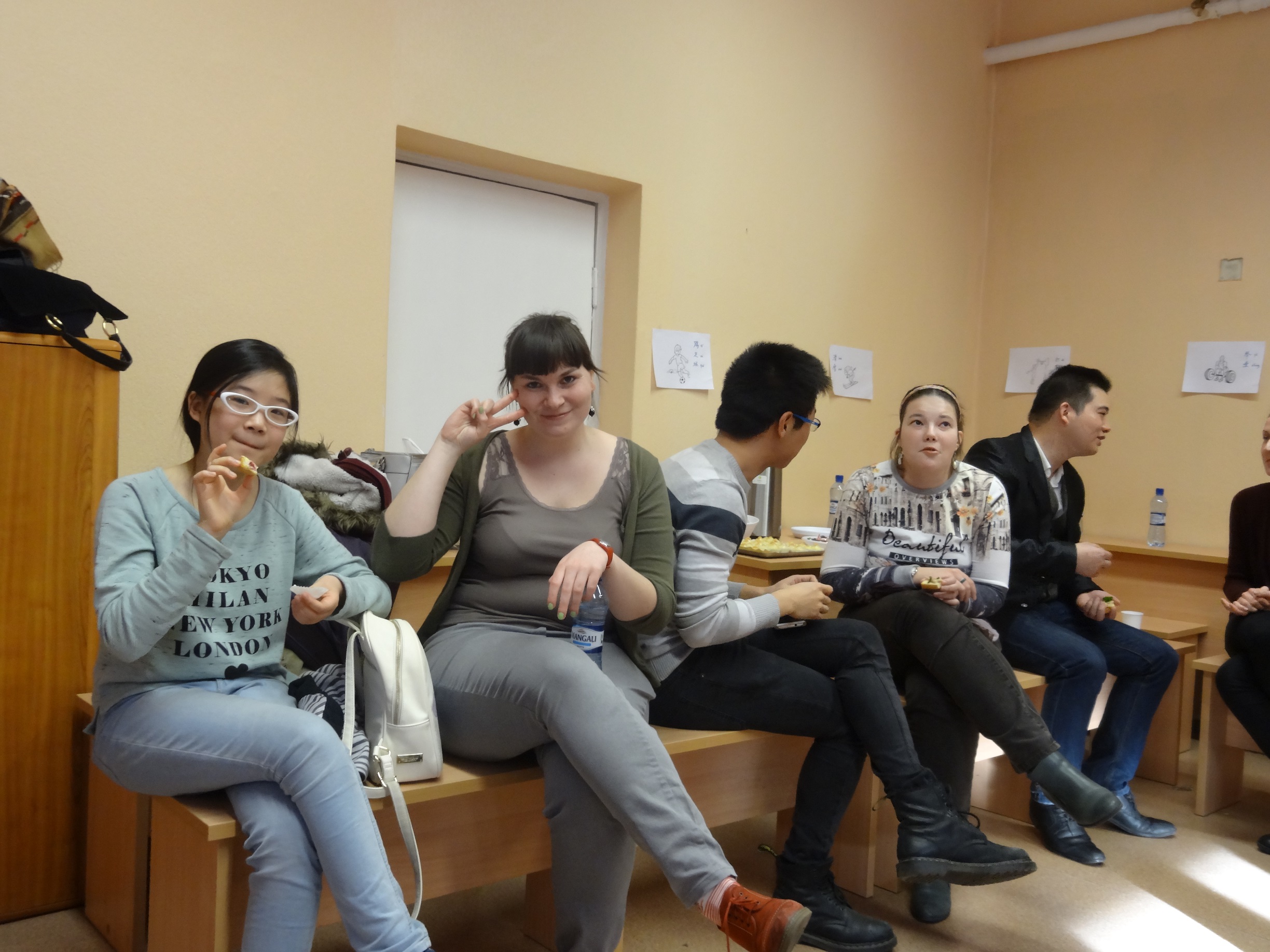 2016年4月14日当地时间下午6:00,拉脱维亚大学人文学院开展了一次汉语角活动,活动由拉脱维亚大学汉学专业教授鲍葛薇主持,汉学专业的研究生本科生还有当地华人,中国留学生,孔子学院的公办教师和志愿者教师都有踊跃参加。这次汉语角的会话主题是运动,活动会场墙面贴了十二项卡通运动图片,配上了汉字和拼音,背景音乐是华语歌手宇宙人的《一起去跑步》。活动开始的第一个环节是自我介绍,重点讲述自己的运动体会。鲍葛薇教授说她非常喜欢户外运动,夏天游泳冬天就滑雪。她还很喜欢武术,并播放了她练习棍法的视频。随后大家都纷纷发言,讲述了自己的运动爱好和一些心得体会。活动的第二个环节是当场表演一些运动姿势,现场有做瑜伽的有打拳的还有一个华人小朋友做广播体操,大家都觉得非常好玩。第三个环节是自由交谈,在场的中国人和汉学专业的学生结成搭档,大家围绕墙面黏贴的运动图片进行深入交谈。有一幅图是踢毽子,很多拉脱维亚学生对踢毽子闻所未闻,对这项运动特别有兴趣。活动进行了大约两个小时,并且有点心和饮料供应,大家都表示汉语角活动很有意义,尤其对汉学专业学生深入了解中国提高汉语实际应用水平很有帮助。