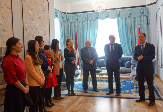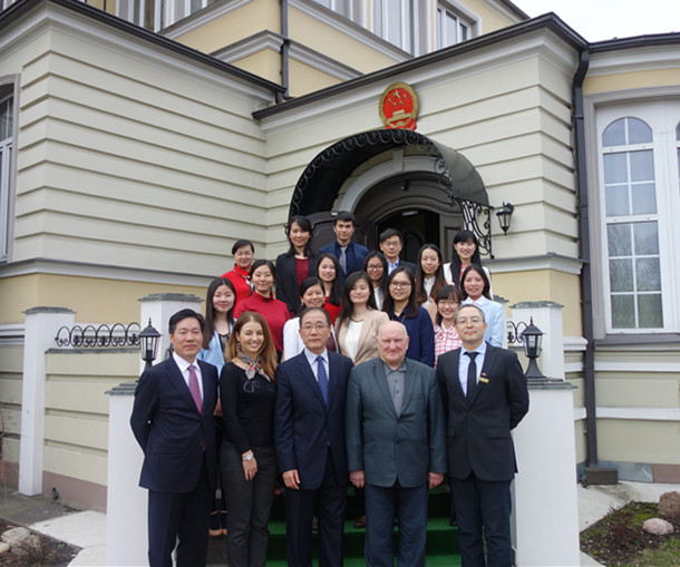 里加当地时间2016年4月16日上午12点,应中华人民共和国驻拉脱维亚共和国大使黄勇先生的邀请,在拉汉学家、孔子学院中方院长尚劝余教授、孔子学院外方院长贝德高教授、汉办公派汉语教师及汉语教师志愿者十多人齐聚中国驻拉脱维亚大使馆,举行第十三届“汉语桥”总结大会。
