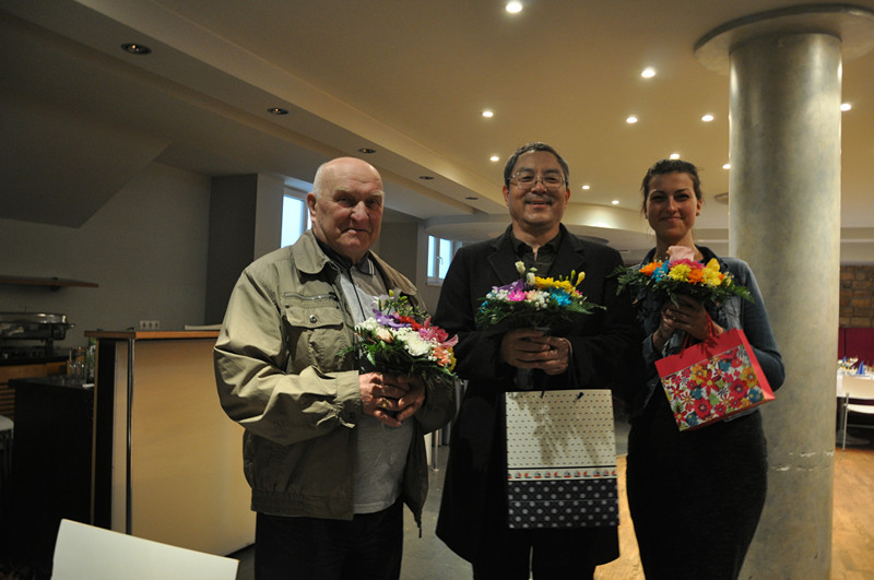 会议开始前,拉脱维亚大学孔子学院中外方院长均对本年度的工作情况做了简单总结,高度评价和肯定了汉语教师、汉语教师志愿者一年以来对拉脱维亚汉语教学发展所做出的贡献和努力。贝德高教授强调,是汉语教师和志愿者的到来,推动了拉脱维亚基层汉语工作的发展,带来了语言学习氛围和环境,他对汉语教师和汉语志愿者们充满热情的工作态度和大力推广普及标准汉语发音的工作方式深表感谢。接下来,汉语教师和教师志愿者们分别介绍了本教学点的基本教学情况,对一年来的教学工作内容、活动开展情况进行了详细介绍,并在发言的最后对各教学未来的工作发展前景做了展望,提出了许多宝贵意见。在会议的最后,全体汉语教师及教师志愿者纷纷送上给两位院长及秘书劳拉的礼物,以此表达对中外方院长和劳拉的深切感谢,感谢他们一年以来的照顾和帮助,会议在一片热烈和友好的氛围中圆满结束。