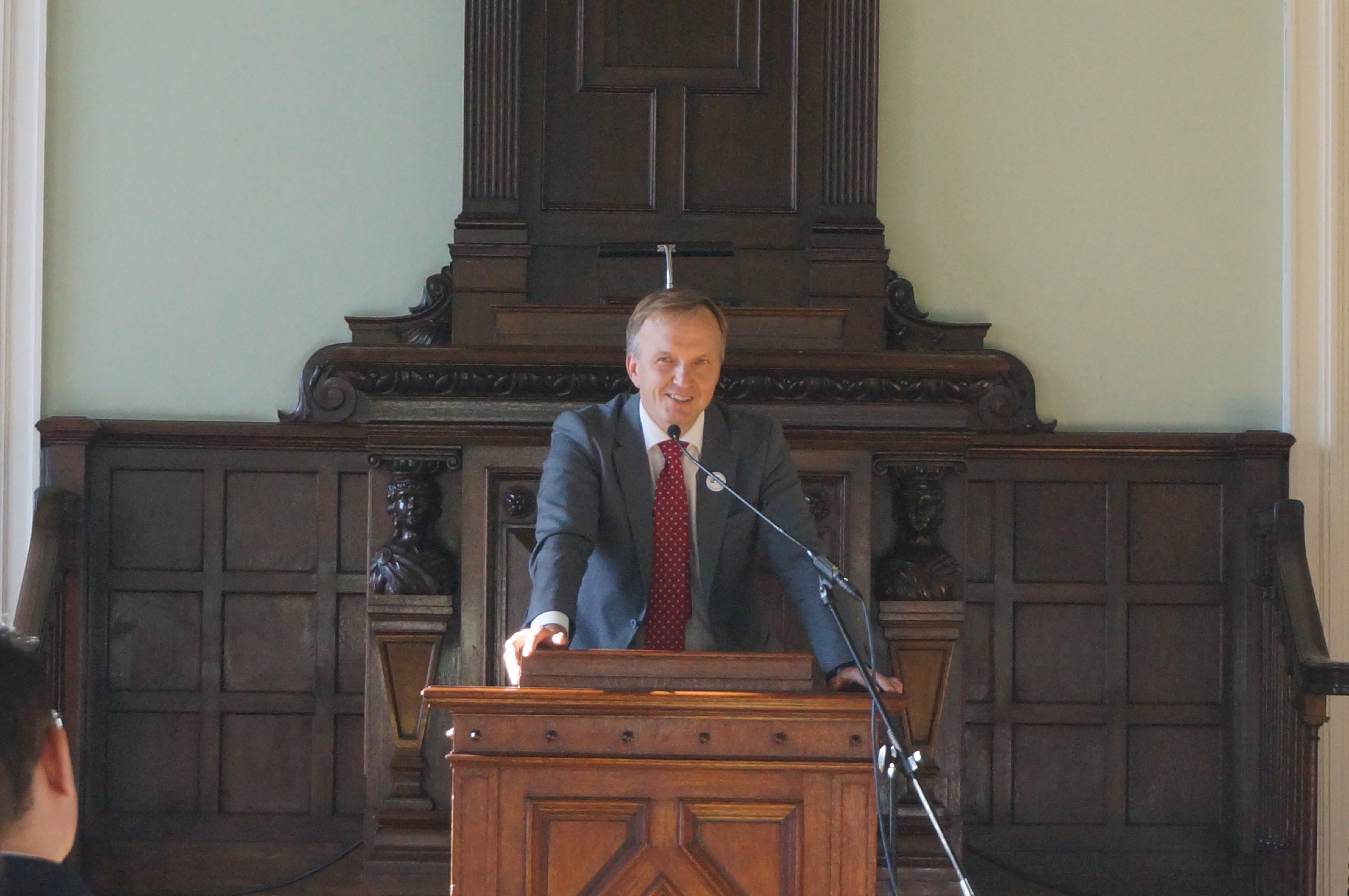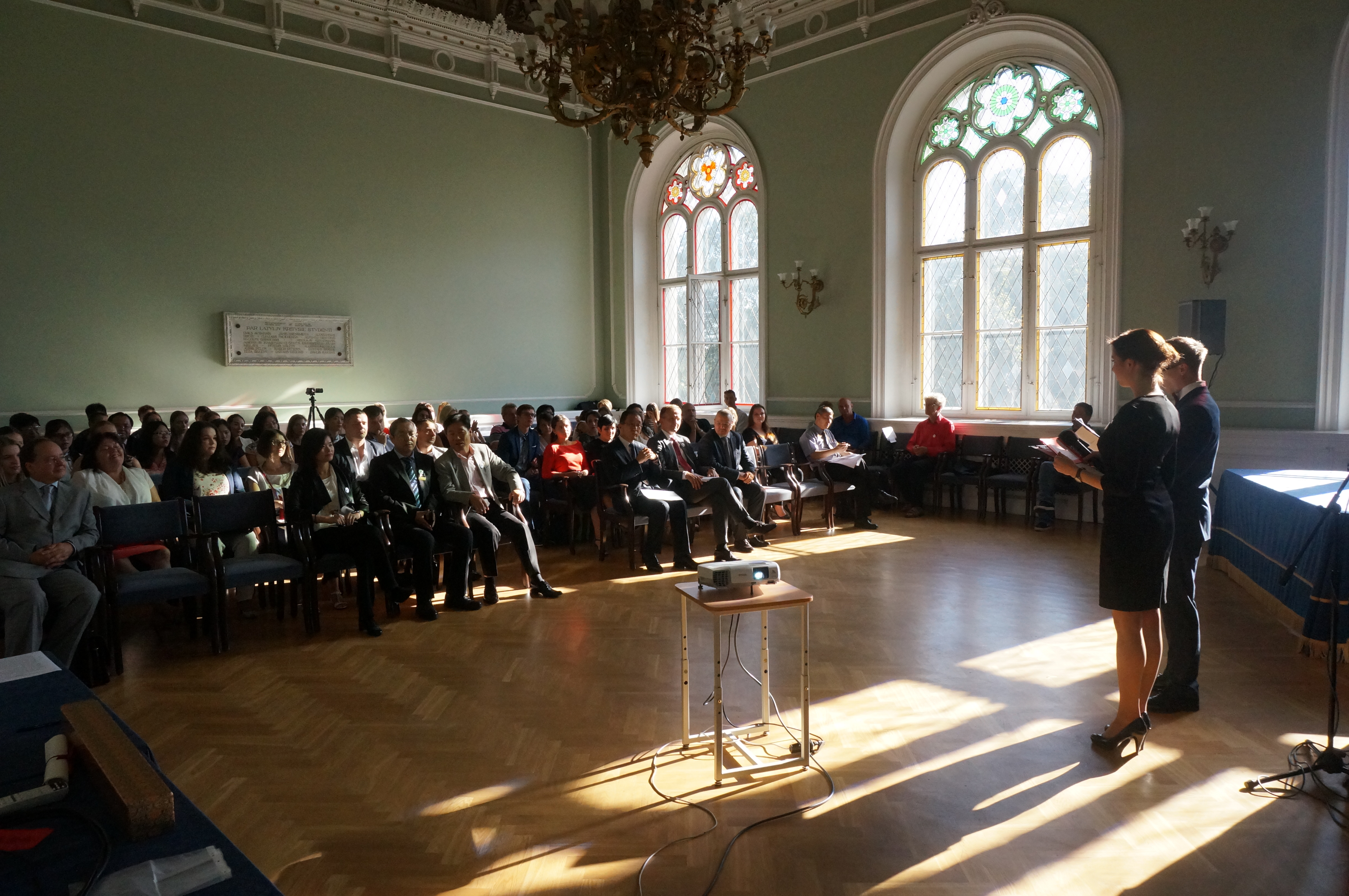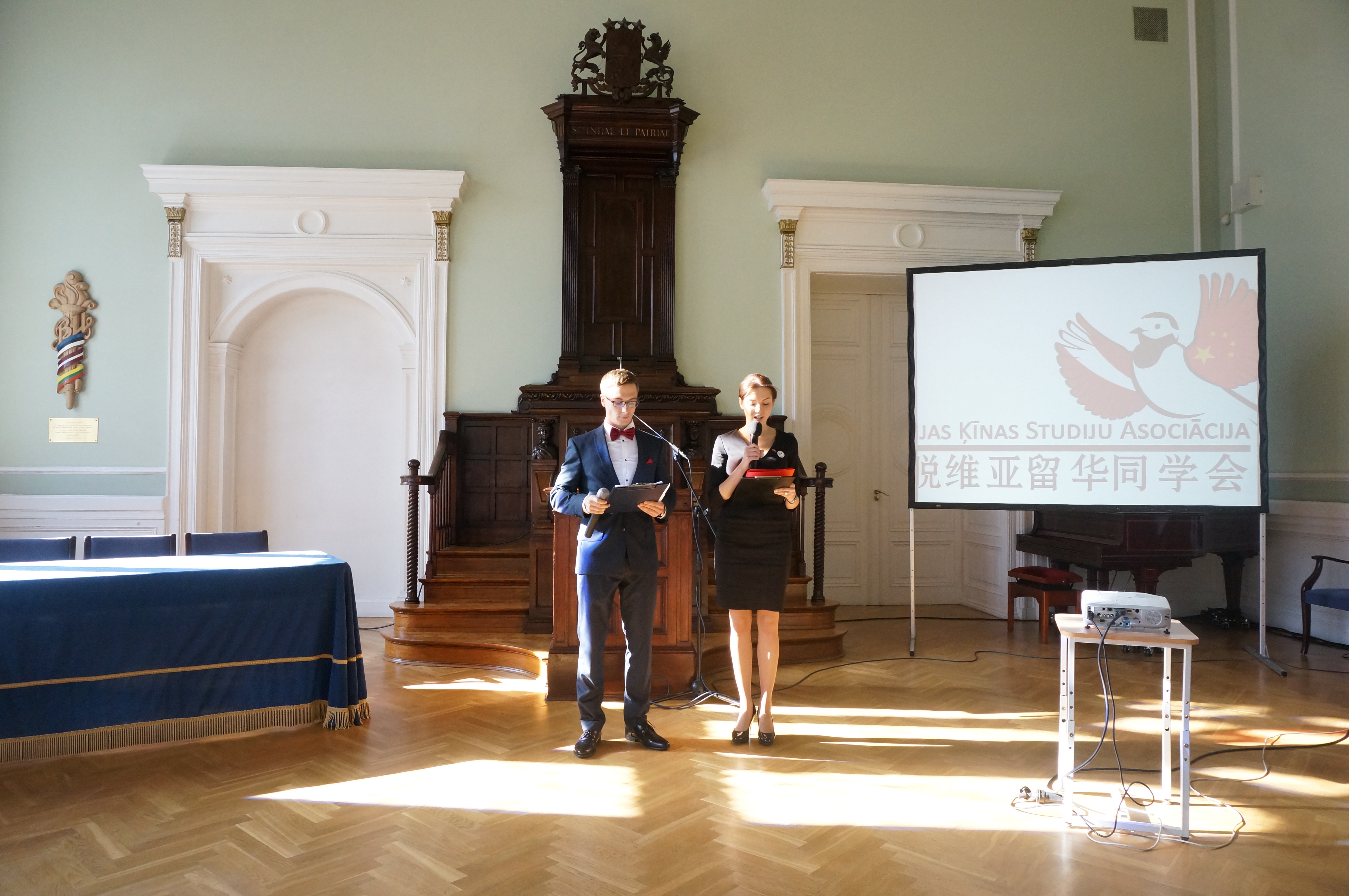 8月24日下午,拉脱维亚留华同学会成立仪式在拉脱维亚大学主楼小礼堂举行。参加仪式的有中国驻拉脱维亚大使黄勇、拉脱维亚国务秘书贝德高、拉脱维亚外交部亚洲司司长张放、中国驻拉脱维亚大使馆李涛参赞、中国驻拉脱维亚大使馆曾伏华领事、拉脱维亚大学亚洲学系教授普利德、拉脱维亚大学孔子学院中方院长尚劝余教授、拉脱维亚留华同学会会长卡琳娜、拉脱维亚留华同学会副会长莫丽雅、拉脱维亚留华同学会秘书叶春萌、往届赴华留学学生、即将赴华的留学的学生、里加市华人华侨代表,以及孔子学院教学秘书及志愿者。