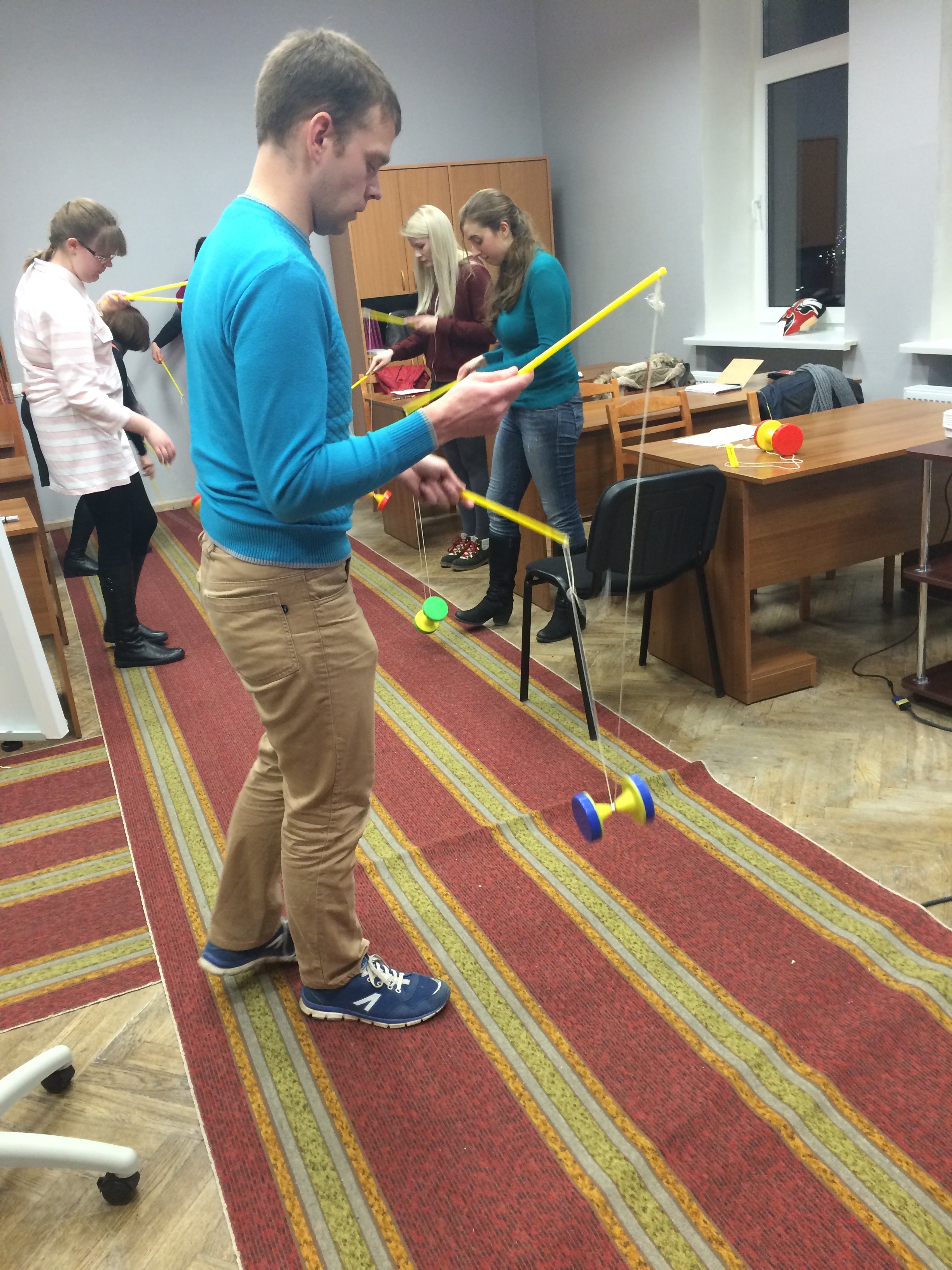2016年12月20日,道加瓦皮尔斯大学孔子课堂举行了一场与众不同的文化体验活动。志愿者老师孙霄带领同学们走入了中国民间传统游戏的世界,体验了来自古老东方的神奇游戏—抖空竹。作为一项竞技运动,它不仅十分有趣同时也能起到锻炼身体强健体魄的作用,深受人民群众的喜爱。
