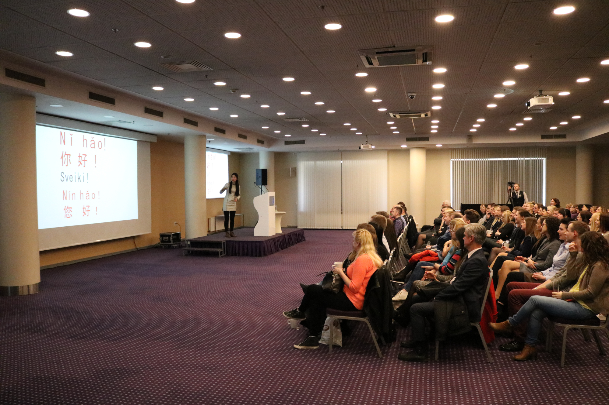 当地时间4月4日下午3点,在中国驻拉脱维亚大使馆商务处关怀和牵线搭桥下,拉脱维亚大学孔子学院受Radisson Blu酒店邀请,在Radisson Blu Latvija Conference & SPA Hotel的Alpha会议厅,为拉脱维亚四间Radisson Blu酒店的一百余名员工举办了一场主题为“你好中国”的大型中国文化讲座。