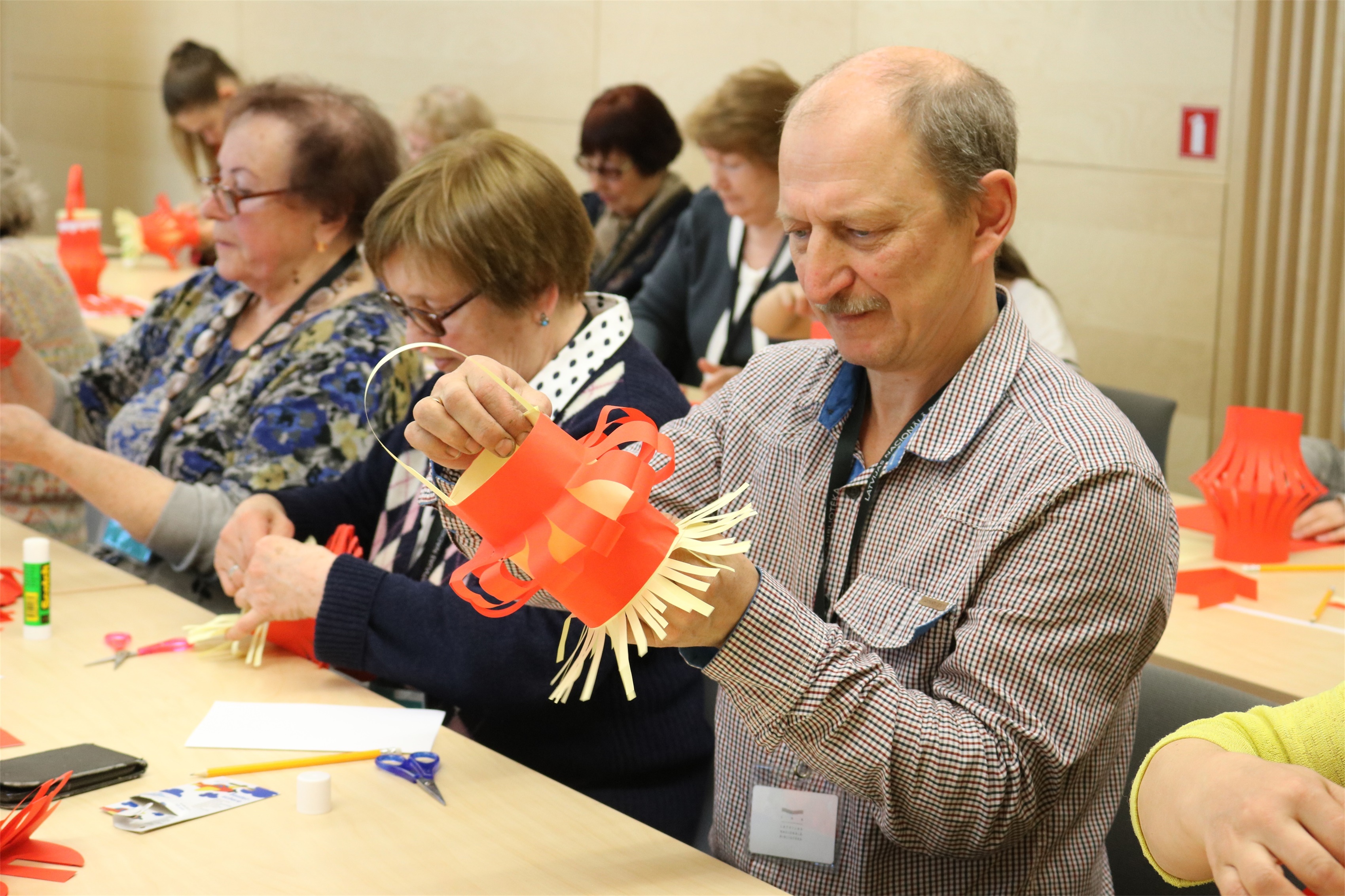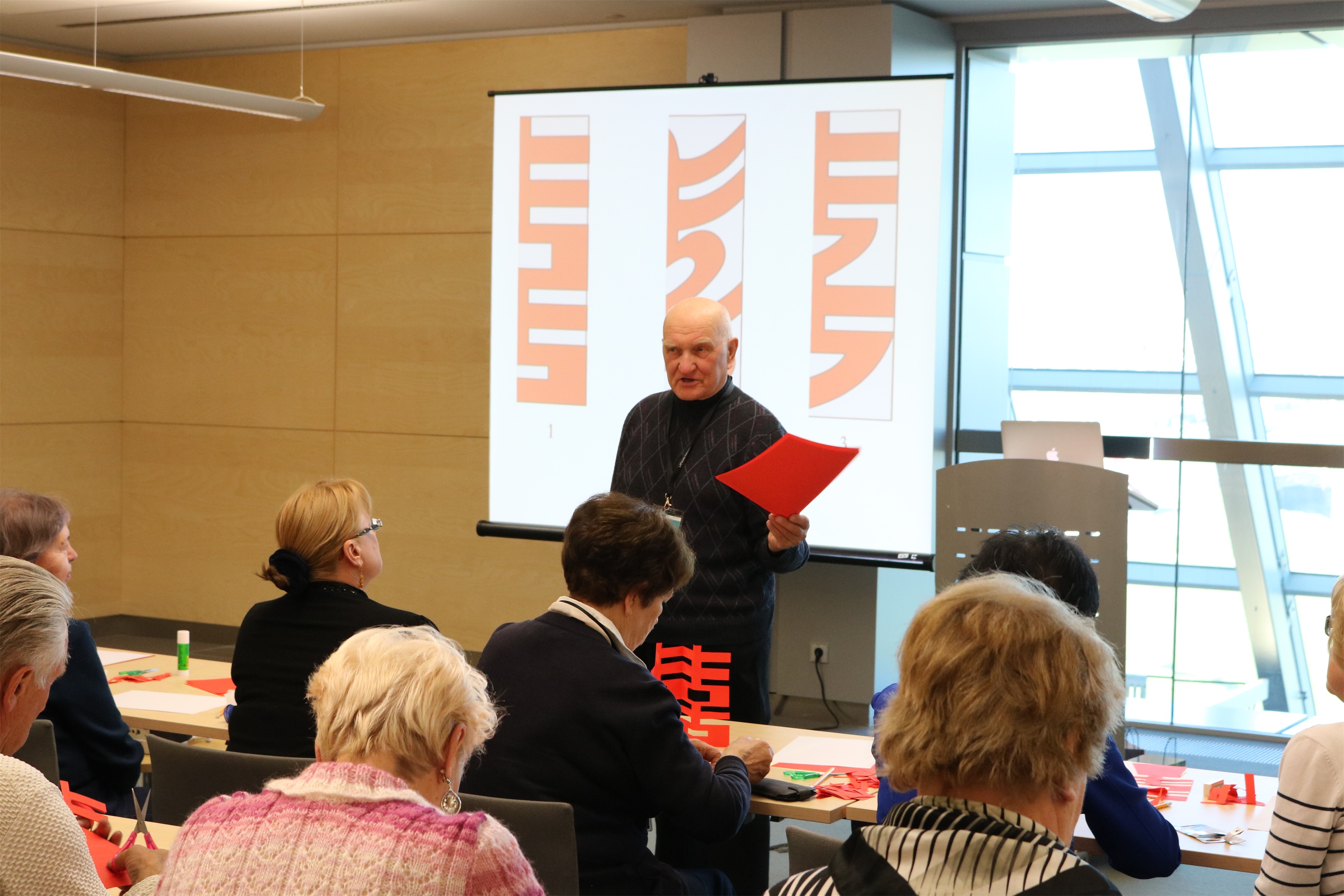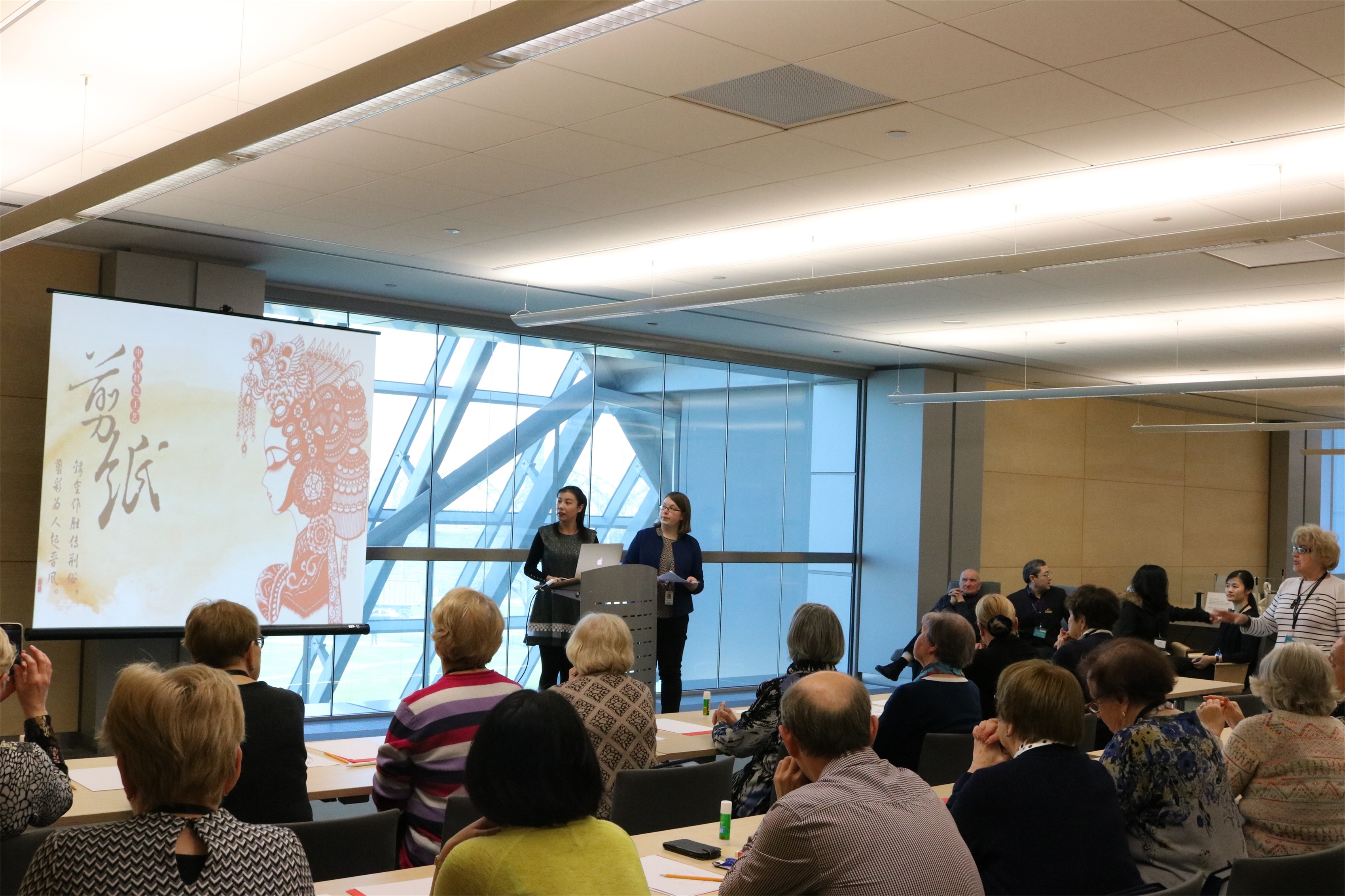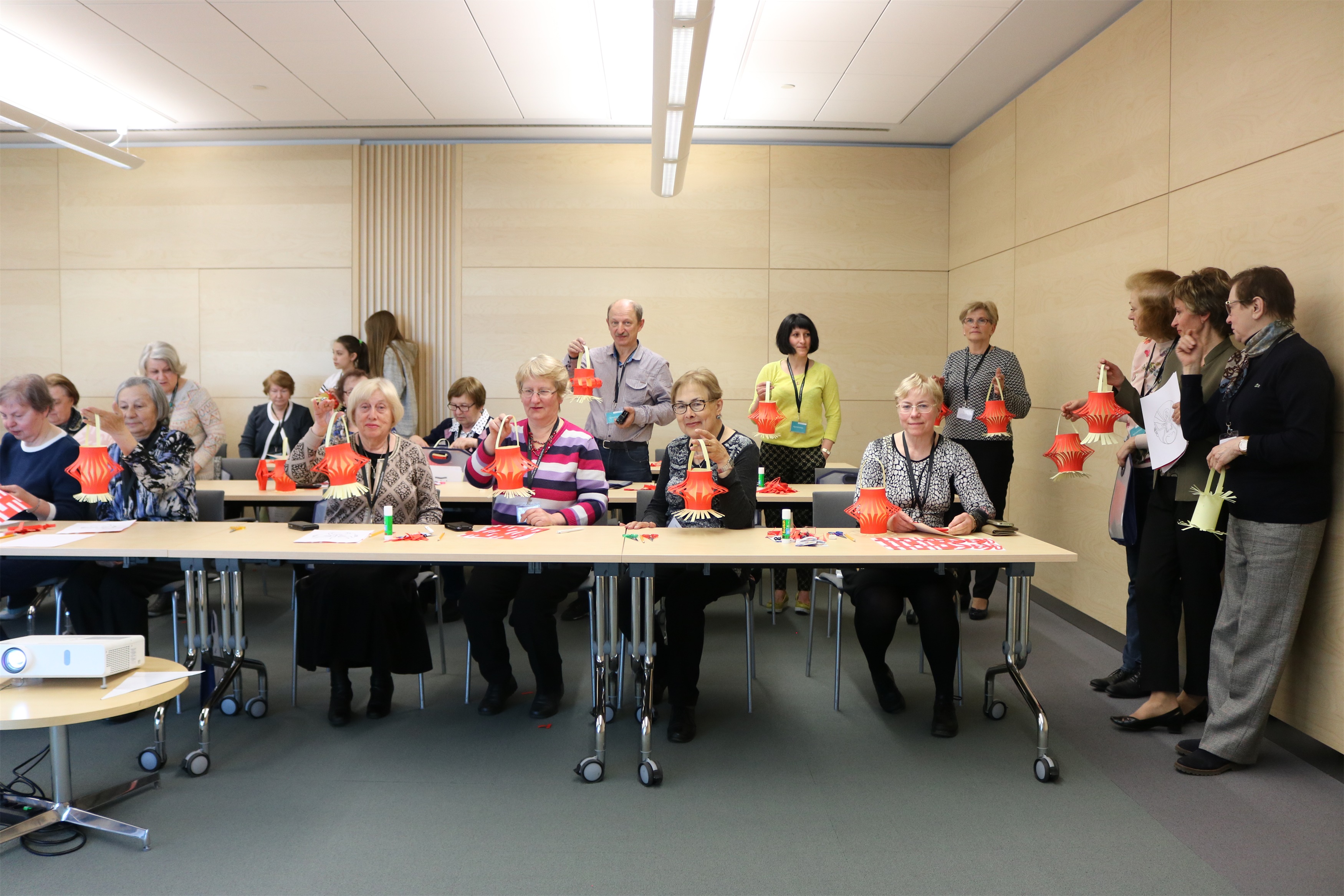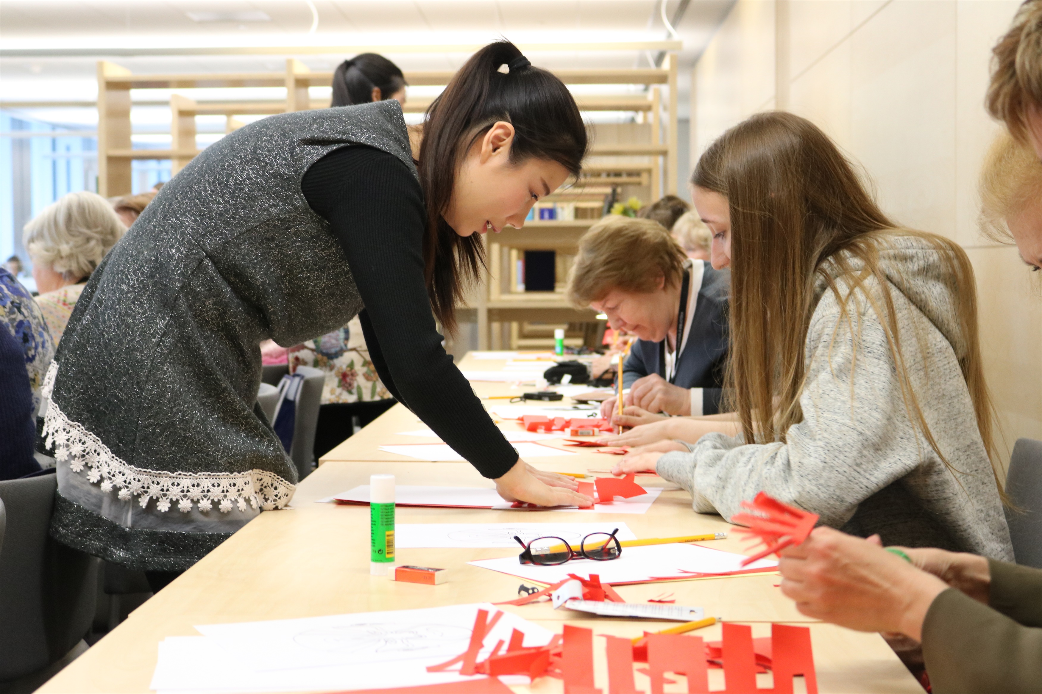 本次活动的亮点在于参与者多是有着丰富阅历的老年朋友们。面对古老神秘的东方文化,他们满怀期待,跃跃欲试,期待获得不同的文化生活体验。此次活动由“剪纸”、“制作灯笼”、“绘制京剧脸谱”三个部分组成。在正式体验前,汉语教师向学员们分别介绍了中国剪纸、灯笼、京剧脸谱的历史和文化寓意。在了解物品背后的人文含义后,学员们迫不及待地拿起手边的工具和材料,制作属于自己的中国物件。栩栩如生的京剧脸谱,东方神韵的灯笼,美轮美奂的剪纸,一幅幅作品诉说着老人们充实而愉快的业余文化生活。