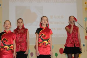 Before the opening ceremony, we gathered in the big hall to watch theatrical performances. A cheerful “little world” opened the prelude to the show. Subsequently, Ms. Natalia Rogaleva, Riga No.34 Secondary School’s Director, delivered a speech. She mentioned the purpose of the Confucius Classroom. “The opening of the Confucius Classroom is a very important activity for our school, because we want to introduce Chinese culture to young people, to stimulate their interest in Chinese culture and language, so that they want to know more about this beautiful country. ”