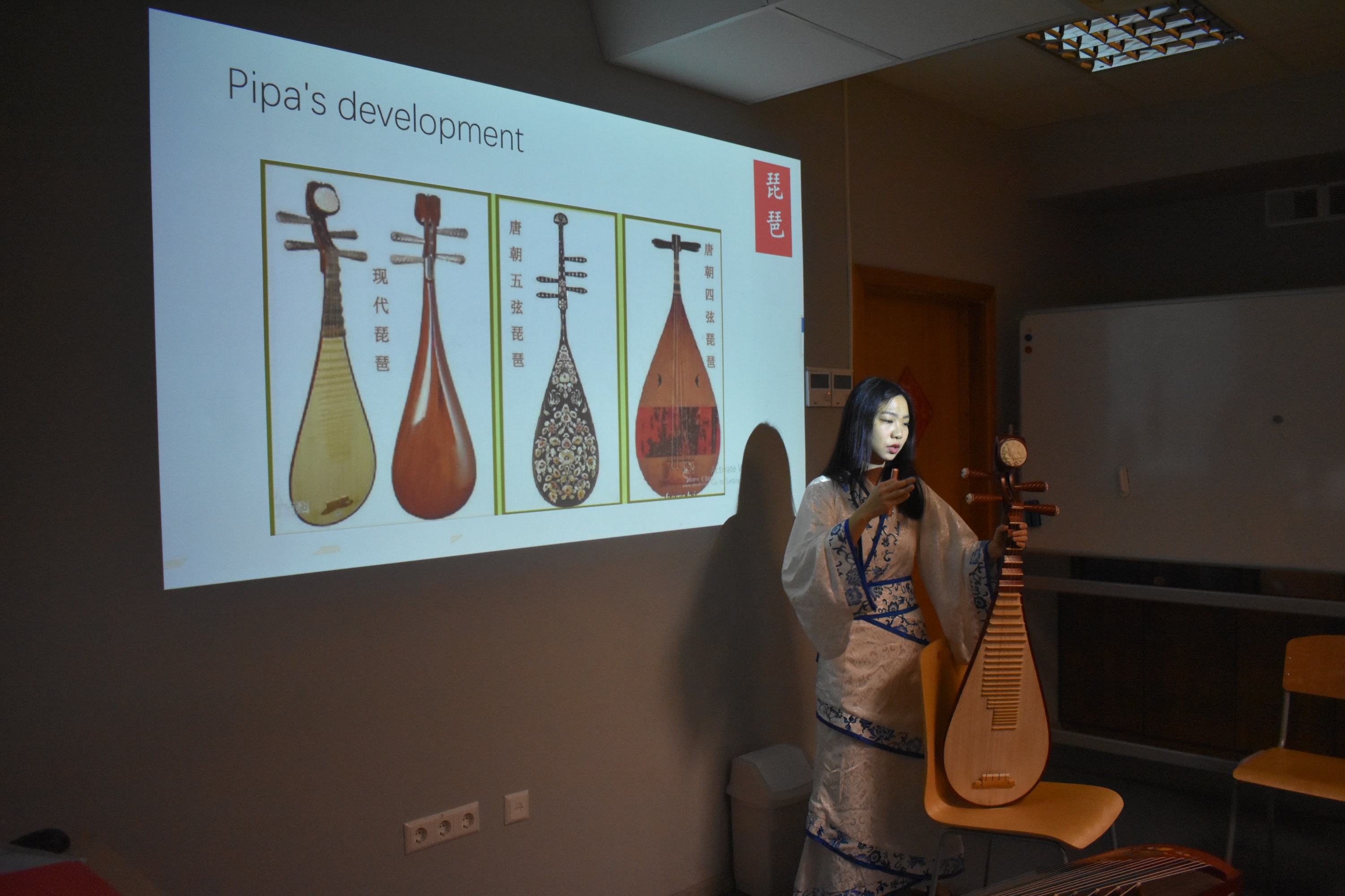 本次汉语角活动旨在让学生们了解中国古典音乐和乐器。活动包括乐器文化及分类、志愿者现场演奏、现场教学及互动等环节。