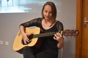 晚上18:30,汉语角活动正式拉开序幕。主持人滕飞对学生们的到来表示了热烈欢迎。随后,志愿者教师曾庆君以“八音”分类,向学生介绍了每一种“音”的代表乐器,并介绍了中国古典十大名曲,使留学生们对中国传统的音乐有了初步的认识和了解。